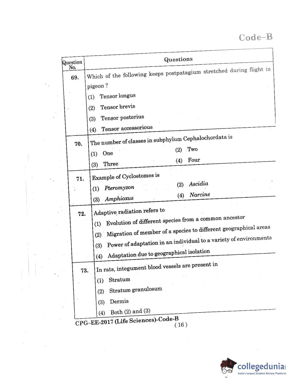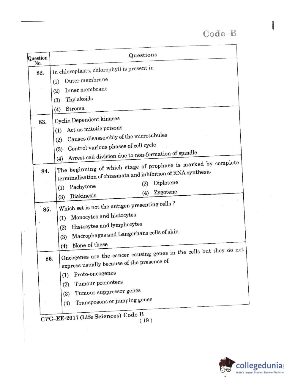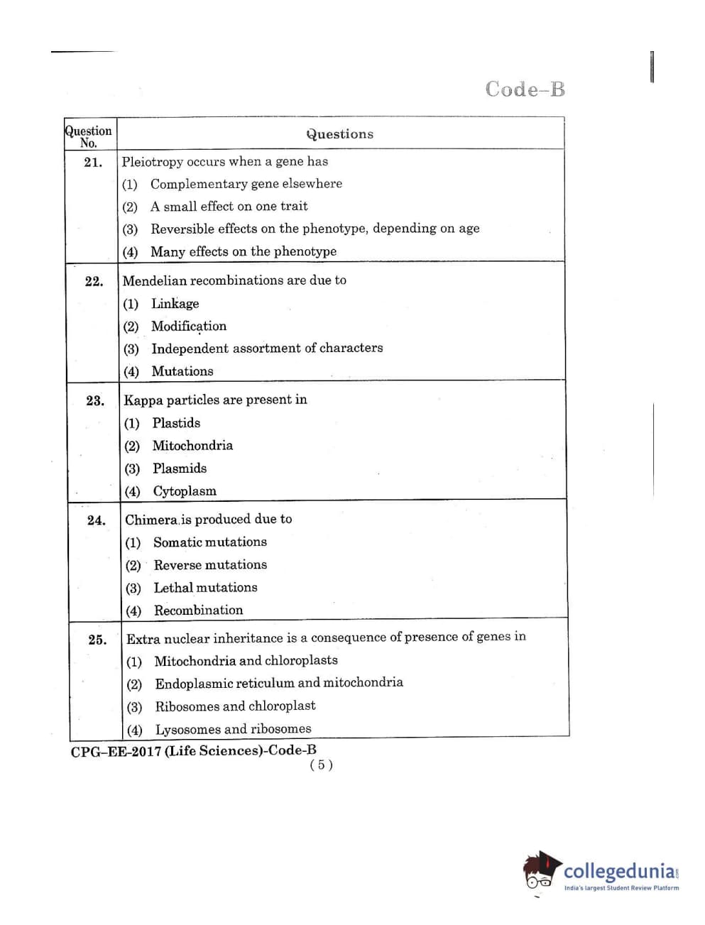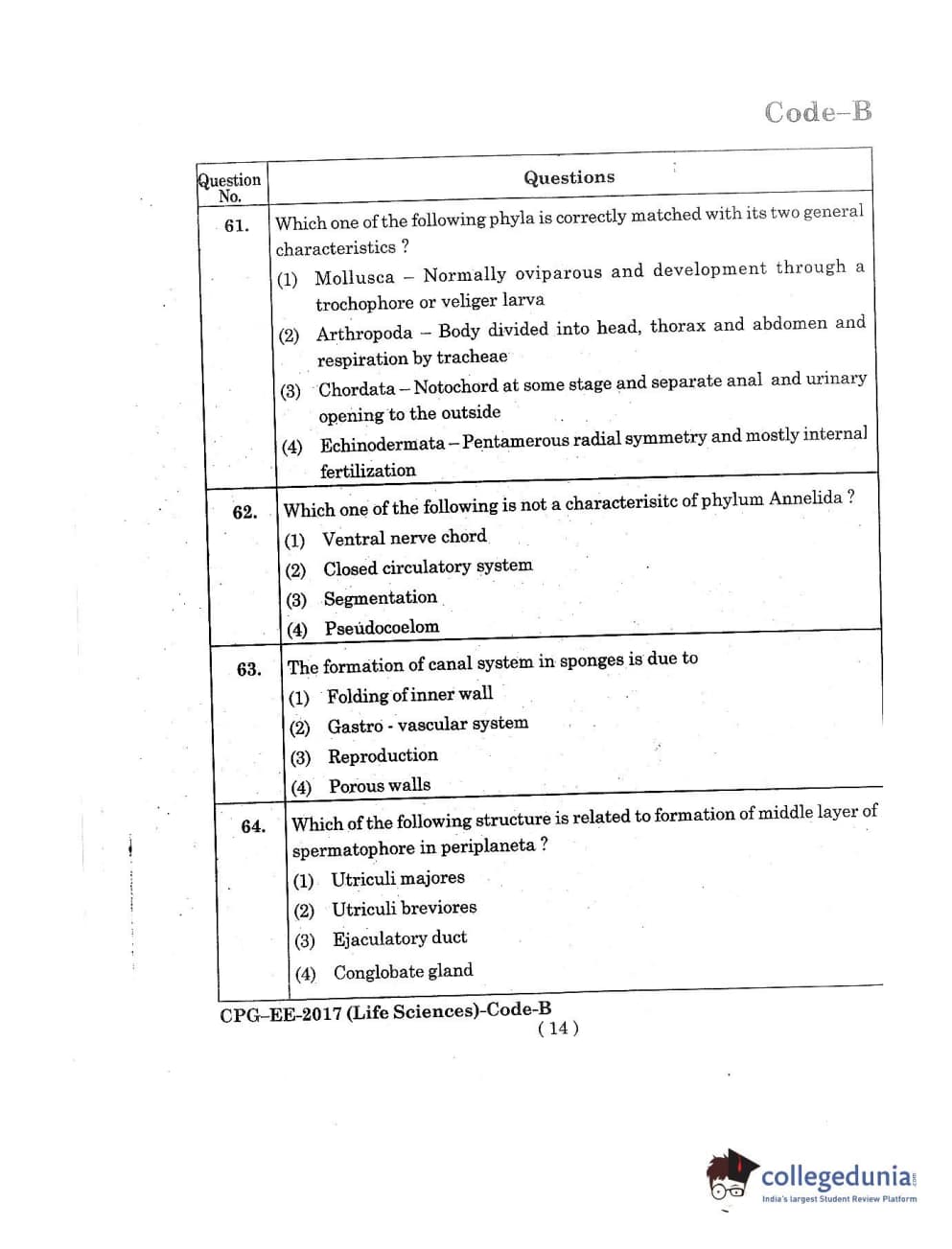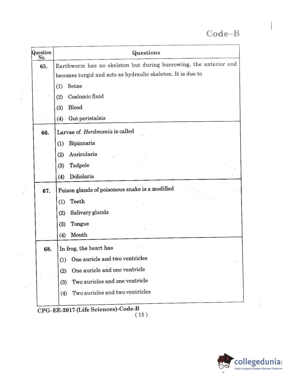 MDUCEE 2017 Life Sciences Set B Question Paper with Answer Key PDFs