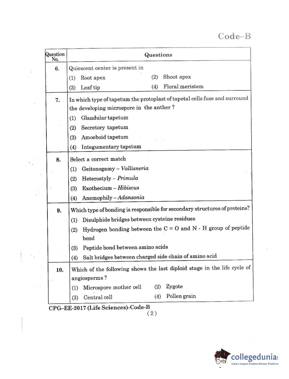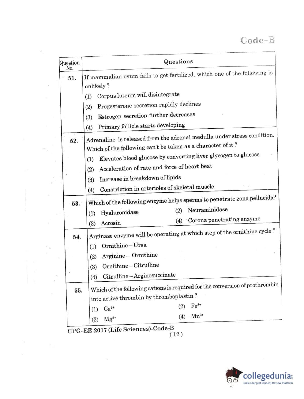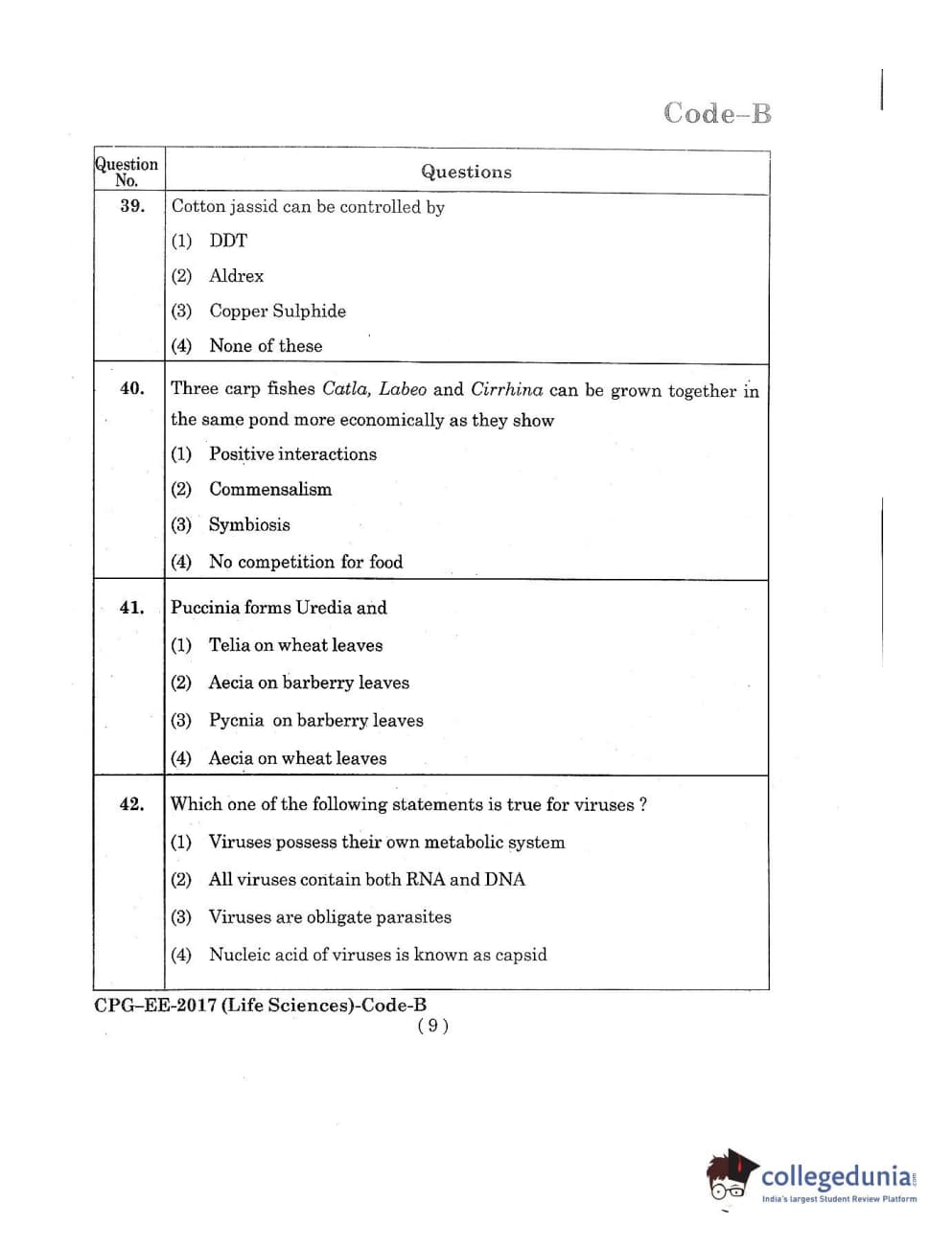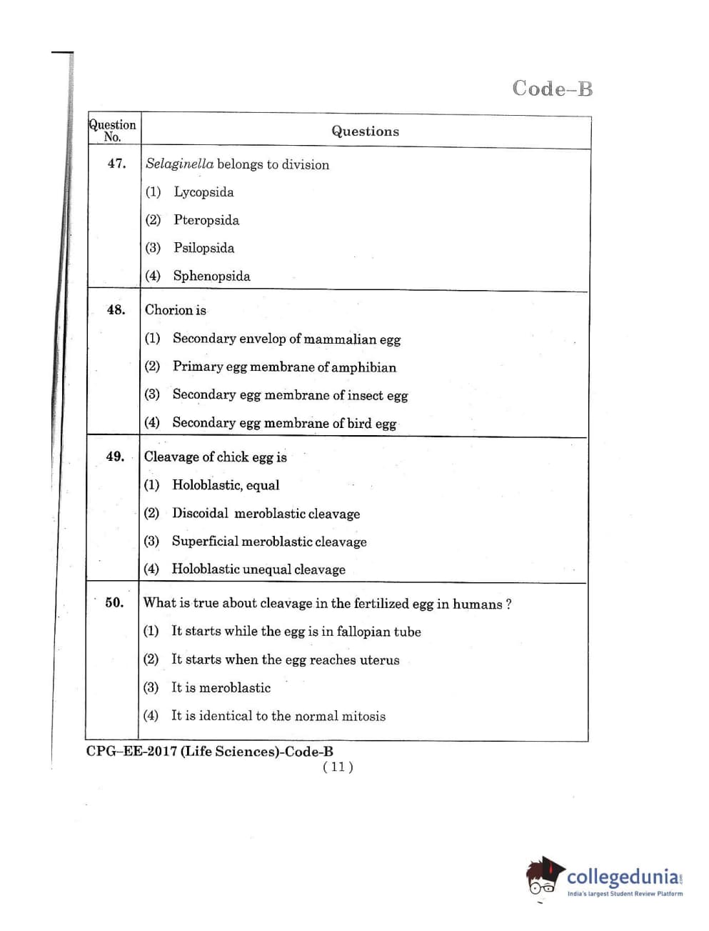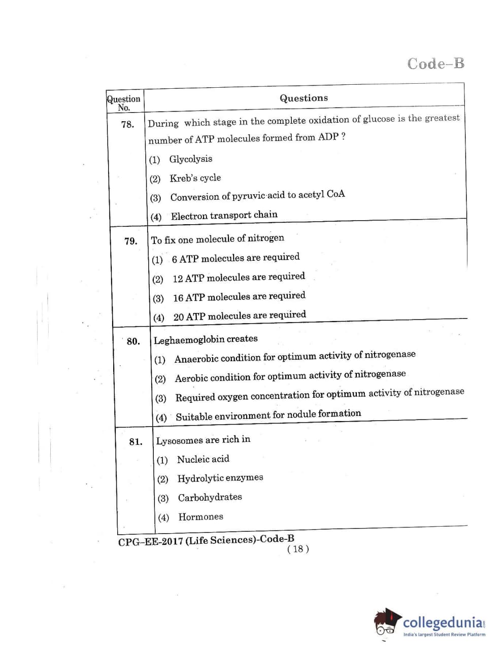 MDUCEE 2017 Life Sciences Set B Question Paper with Answer Key PDFs