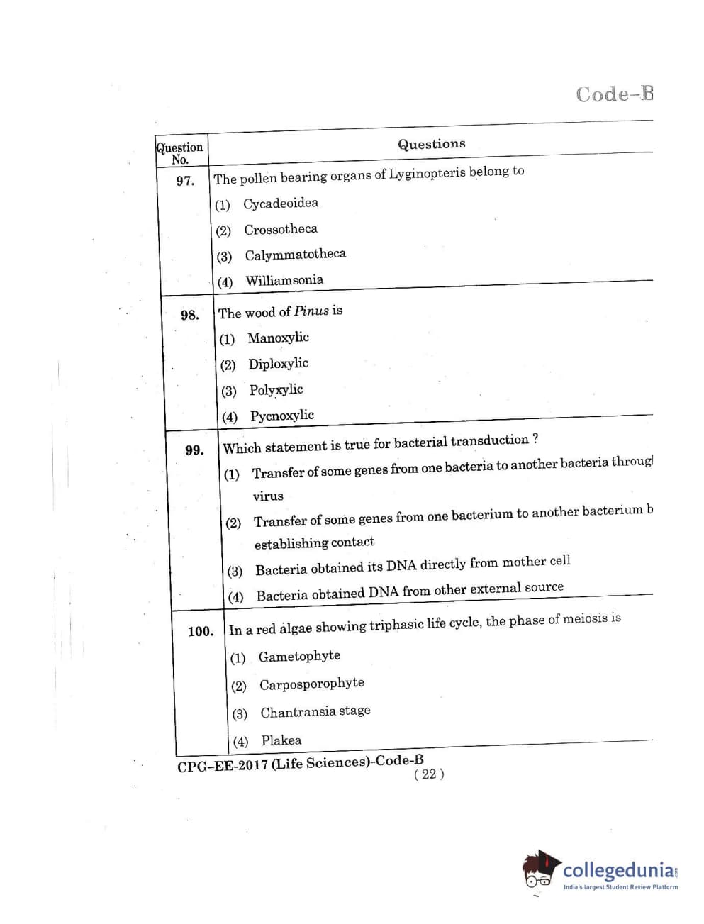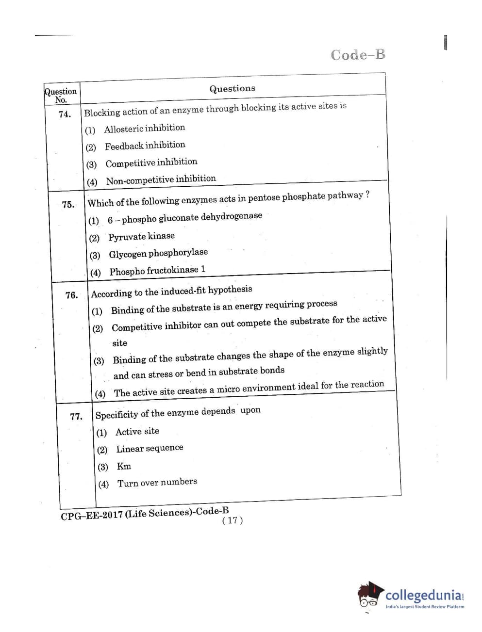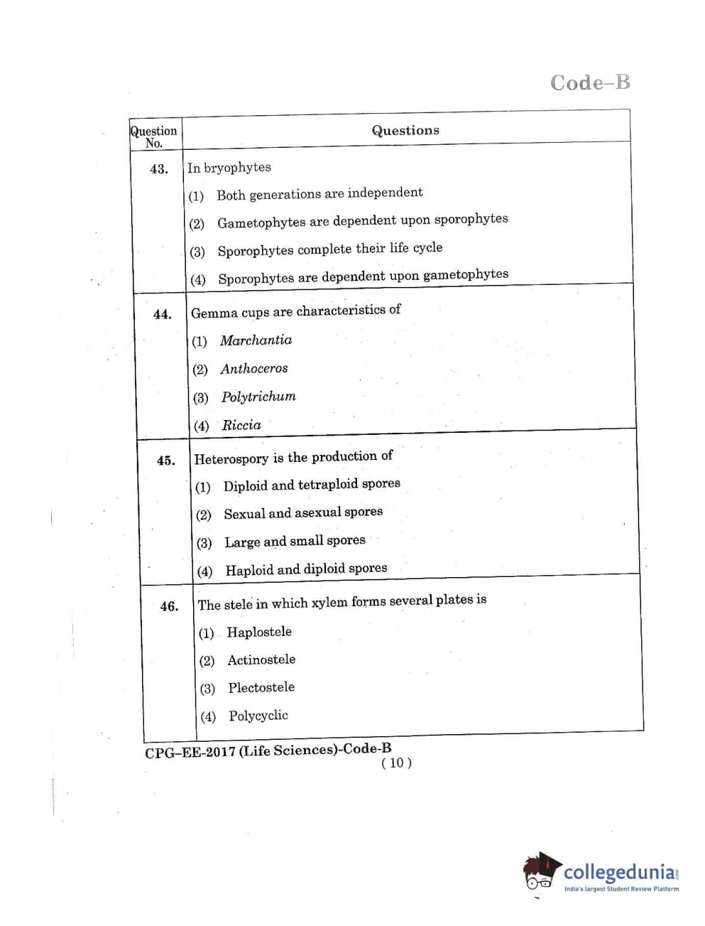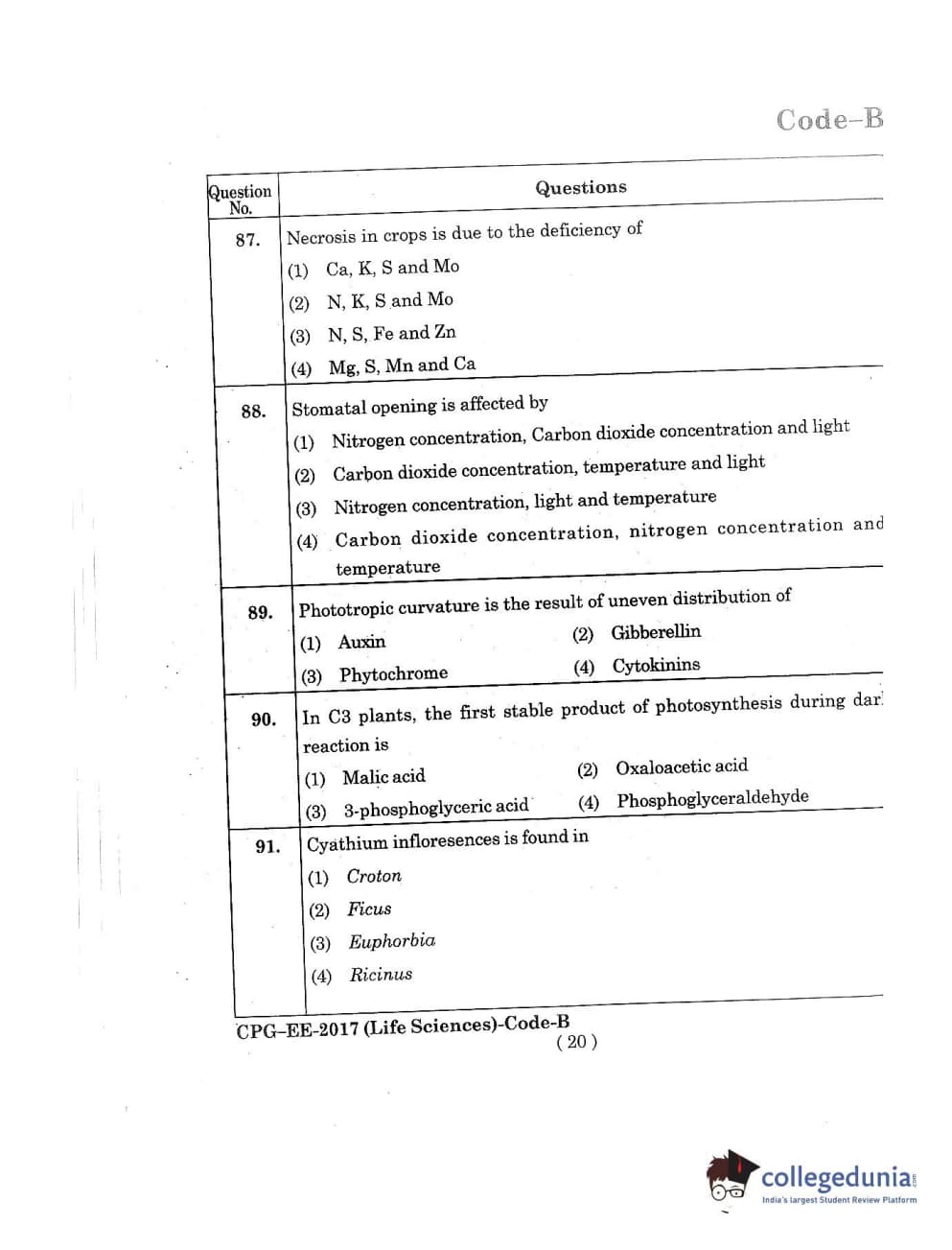 MDUCEE 2017 Life Sciences Set B Question Paper with Answer Key PDFs