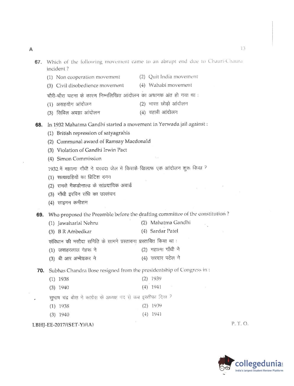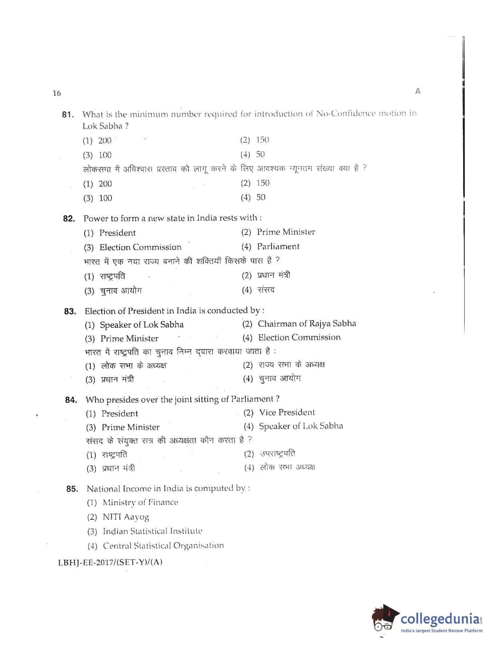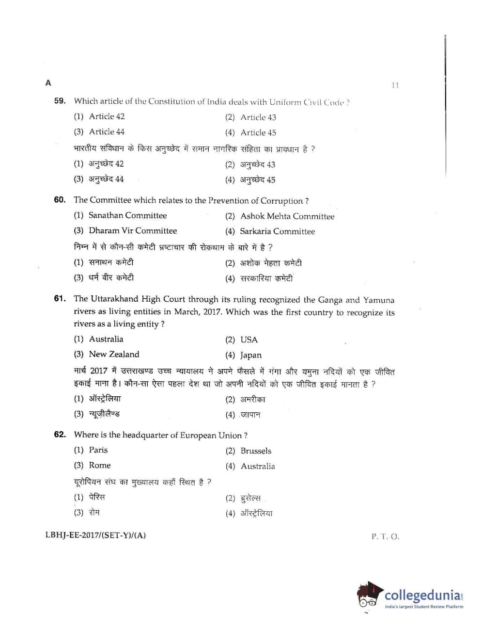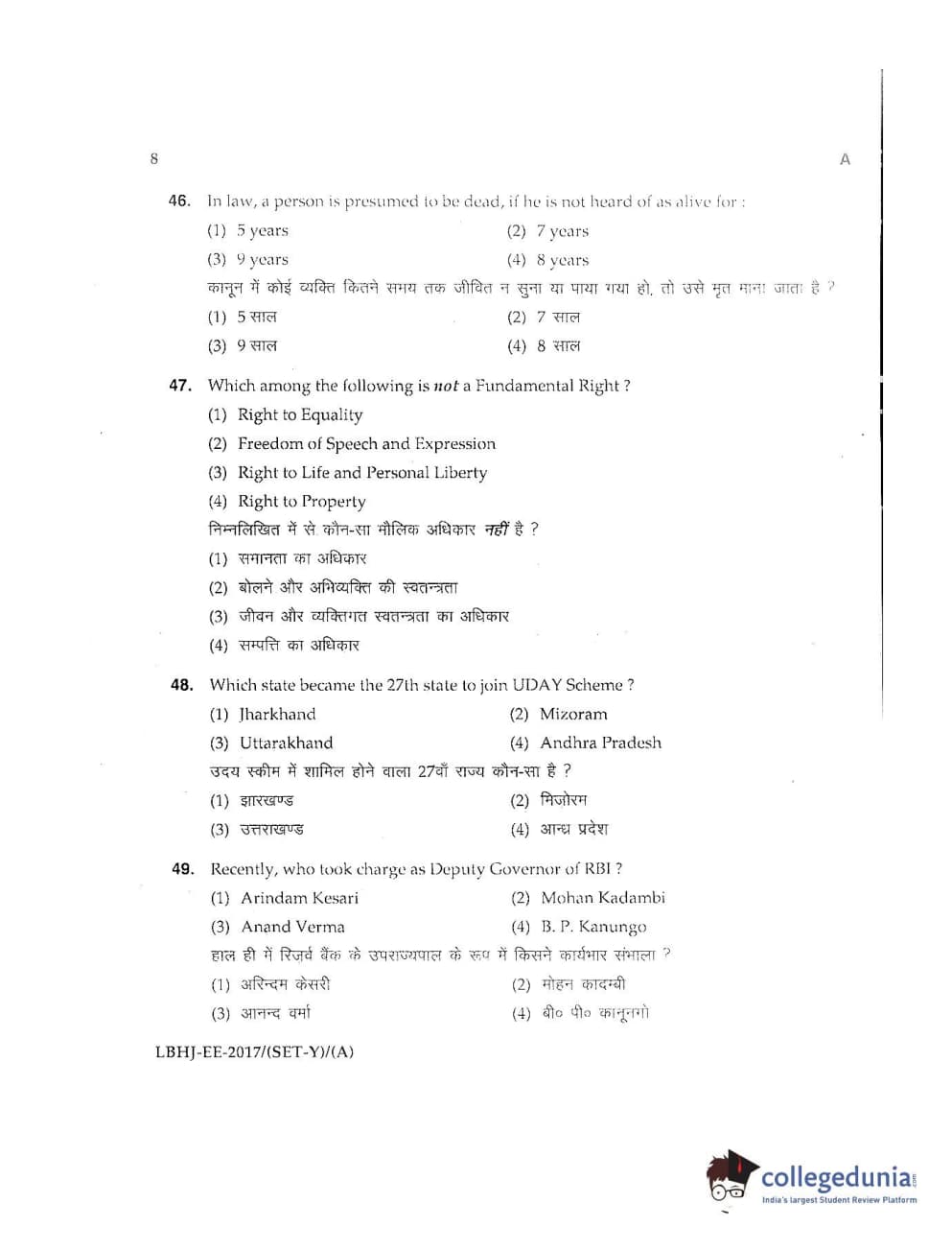 MDUCEE 2017 LL.B-3 Years Set A Question Paper with Answer Key PDFs