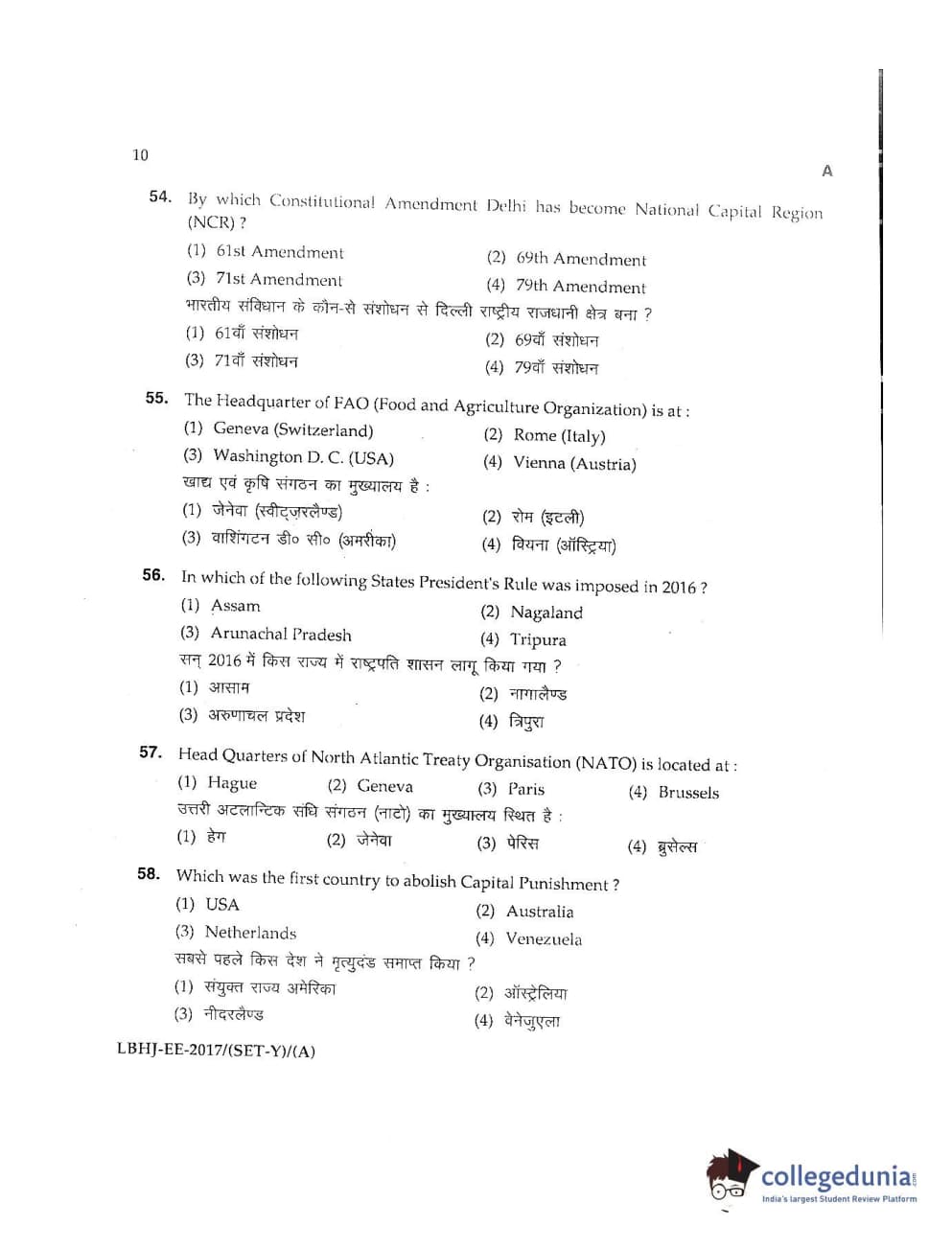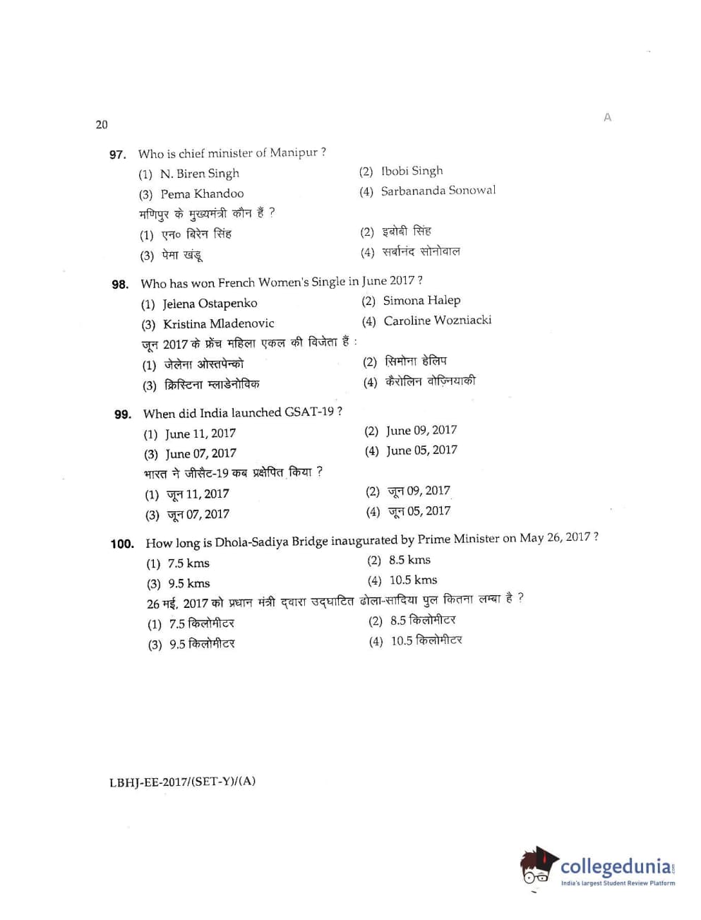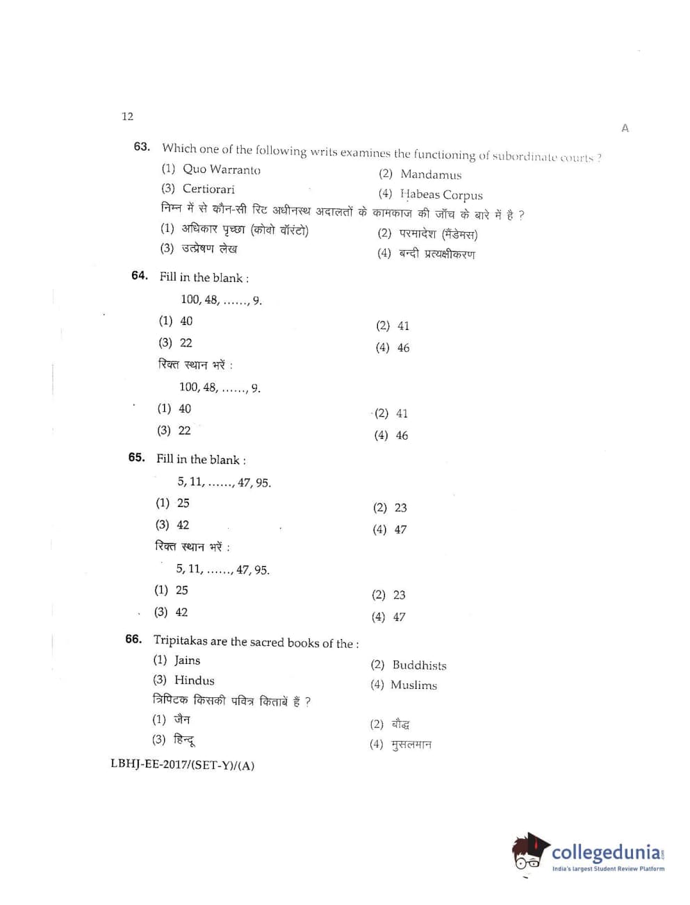 MDUCEE 2017 LL.B-3 Years Set A Question Paper with Answer Key PDFs