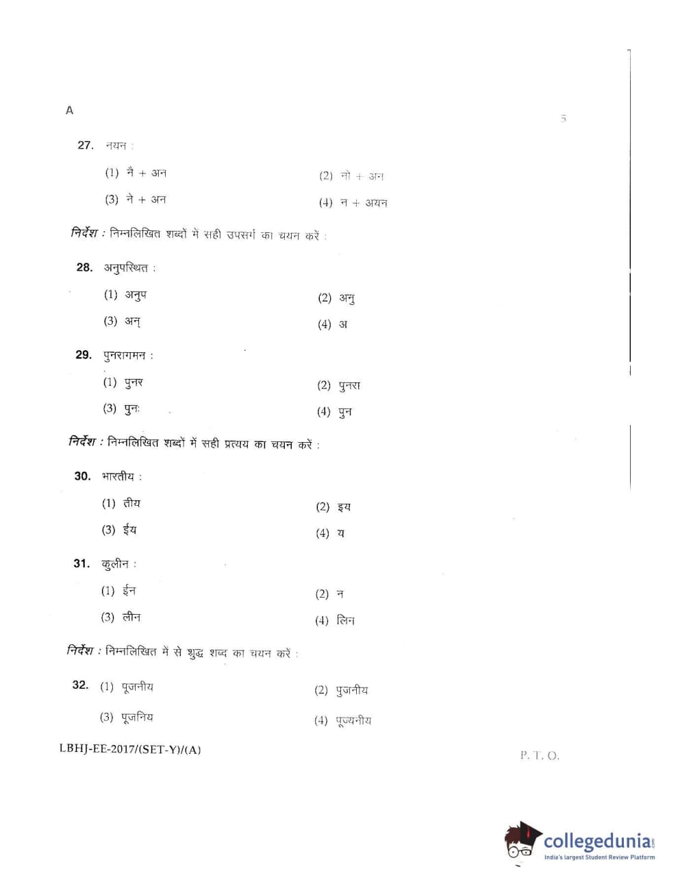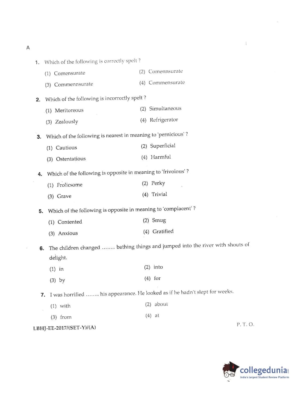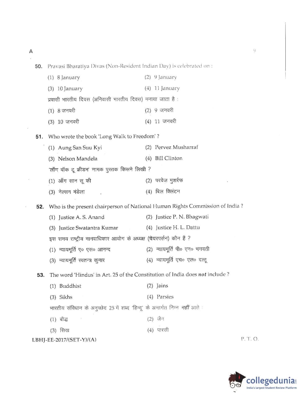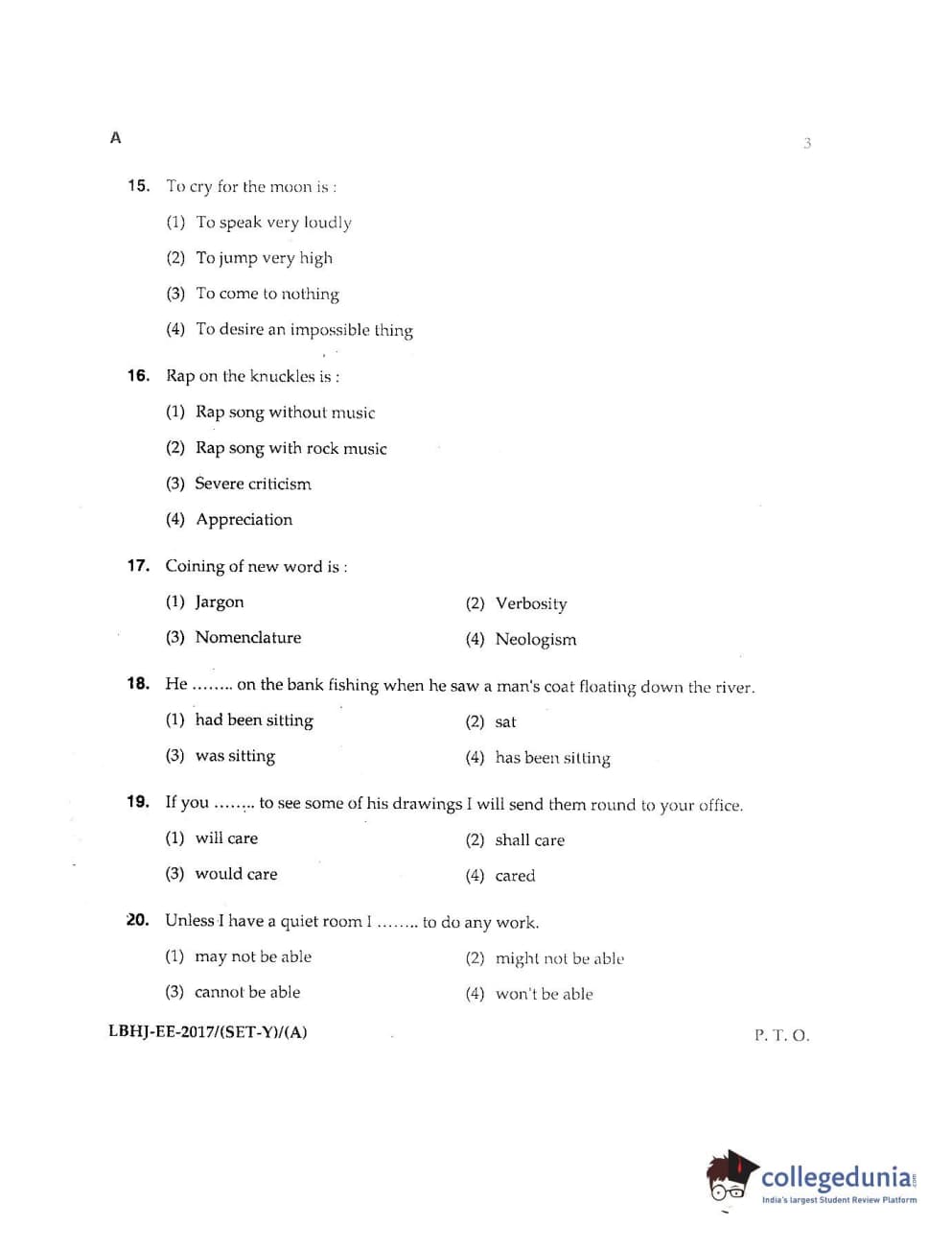 MDUCEE 2017 LL.B-3 Years Set A Question Paper with Answer Key PDFs