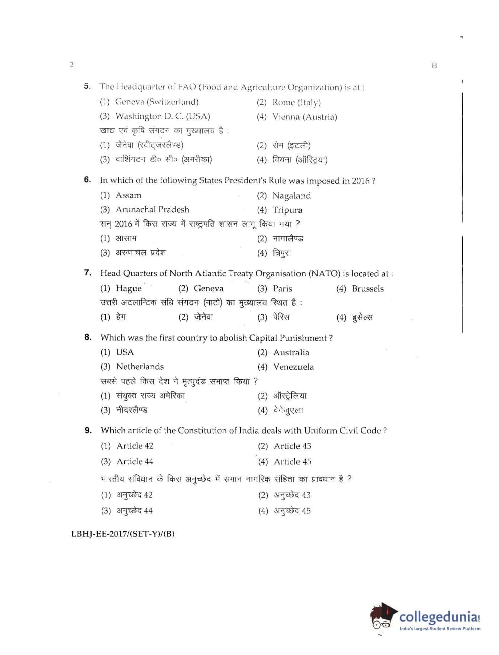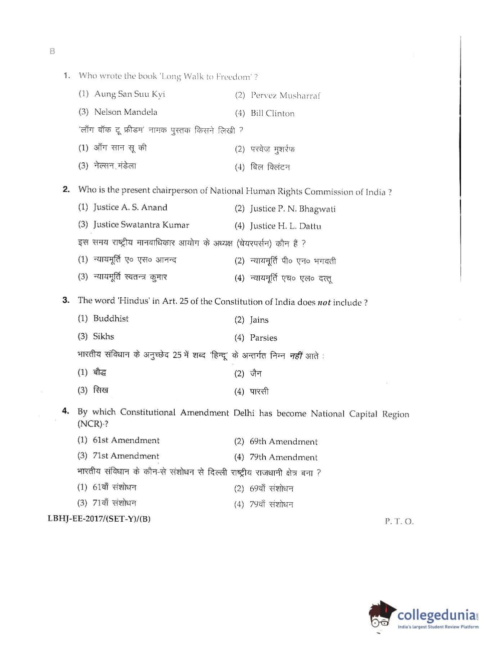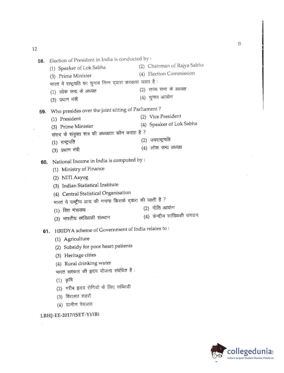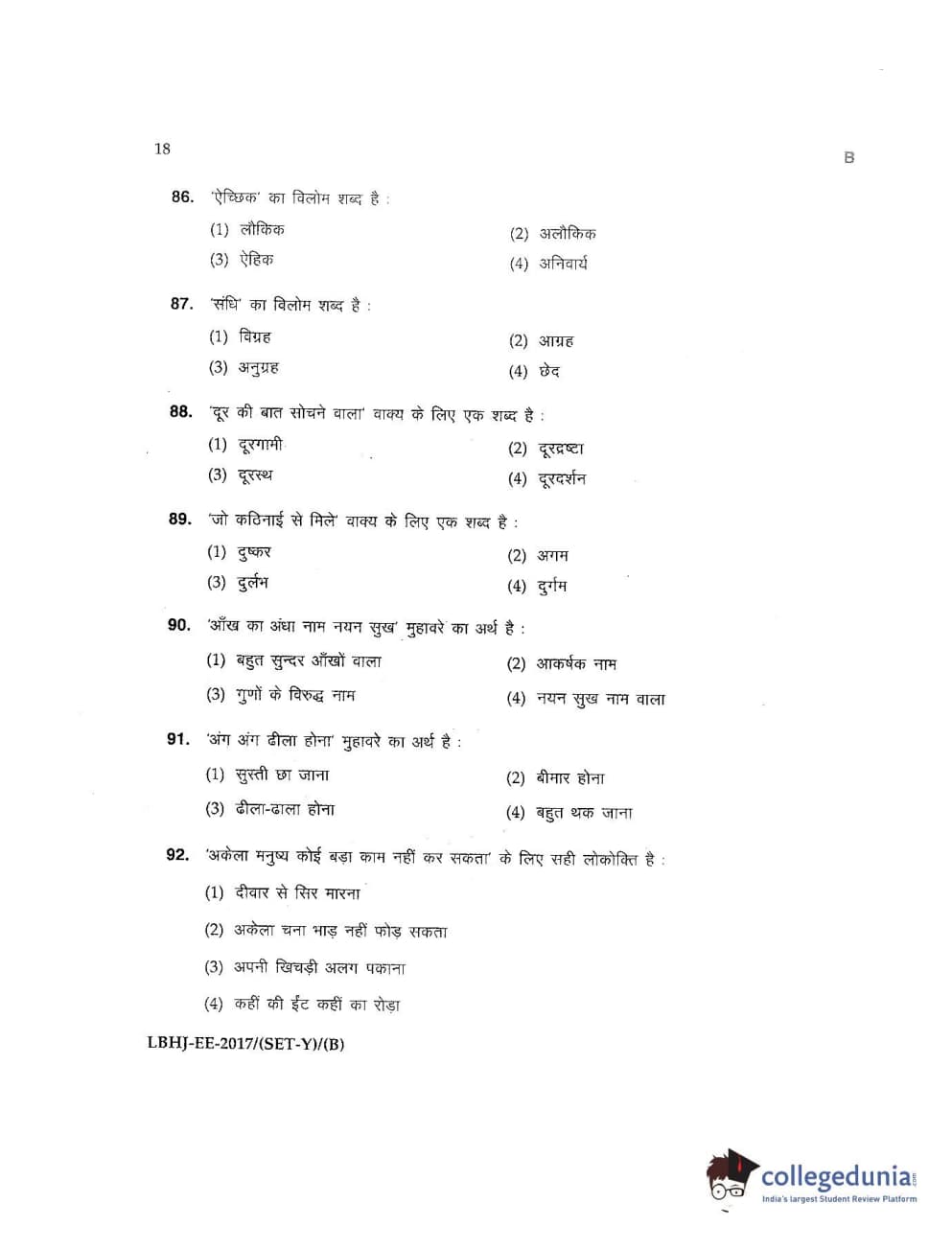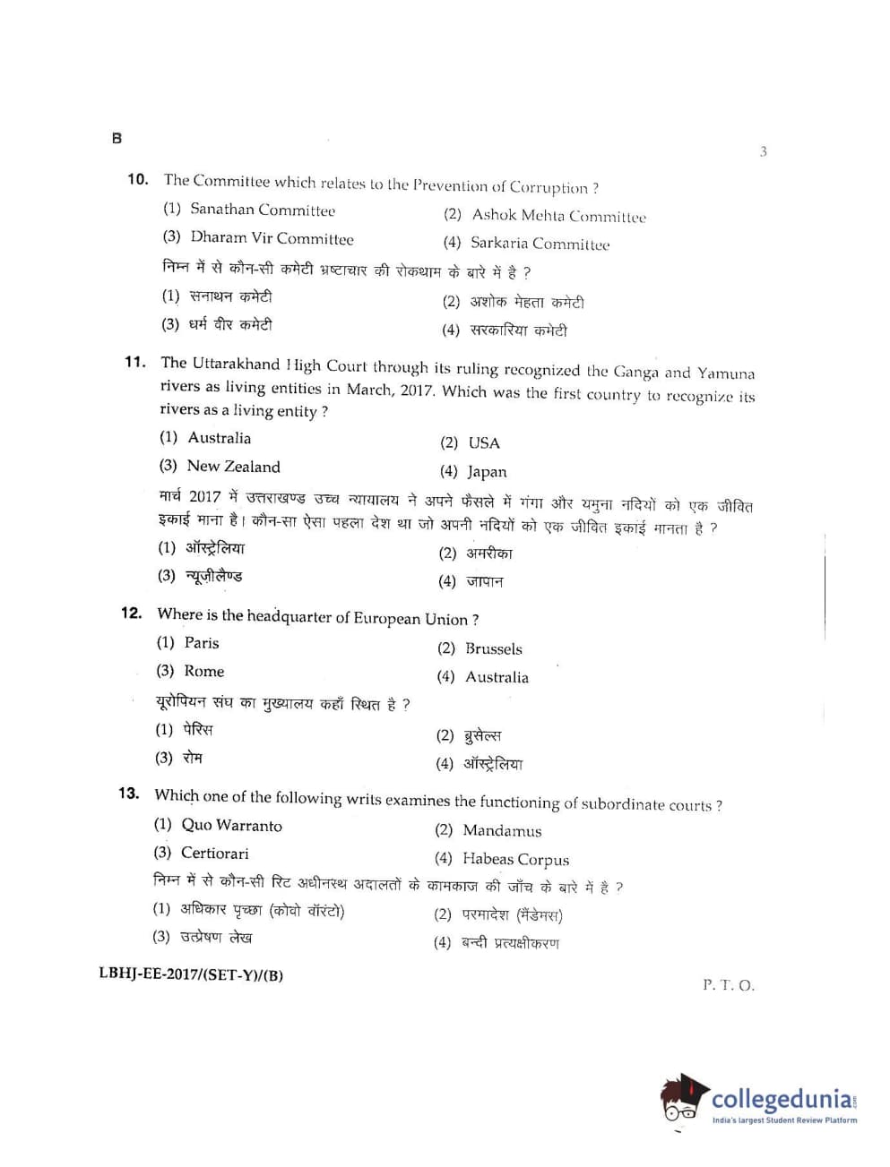 MDUCEE 2017 LL.B-3 Years Set B Question Paper with Answer Key PDFs