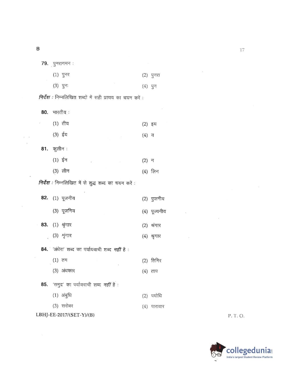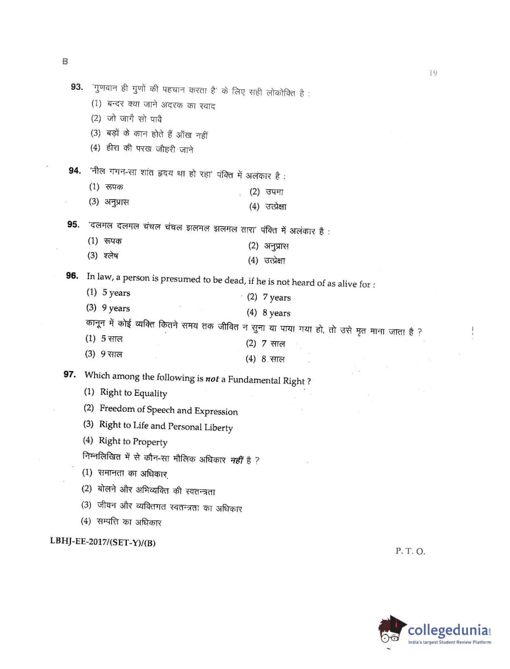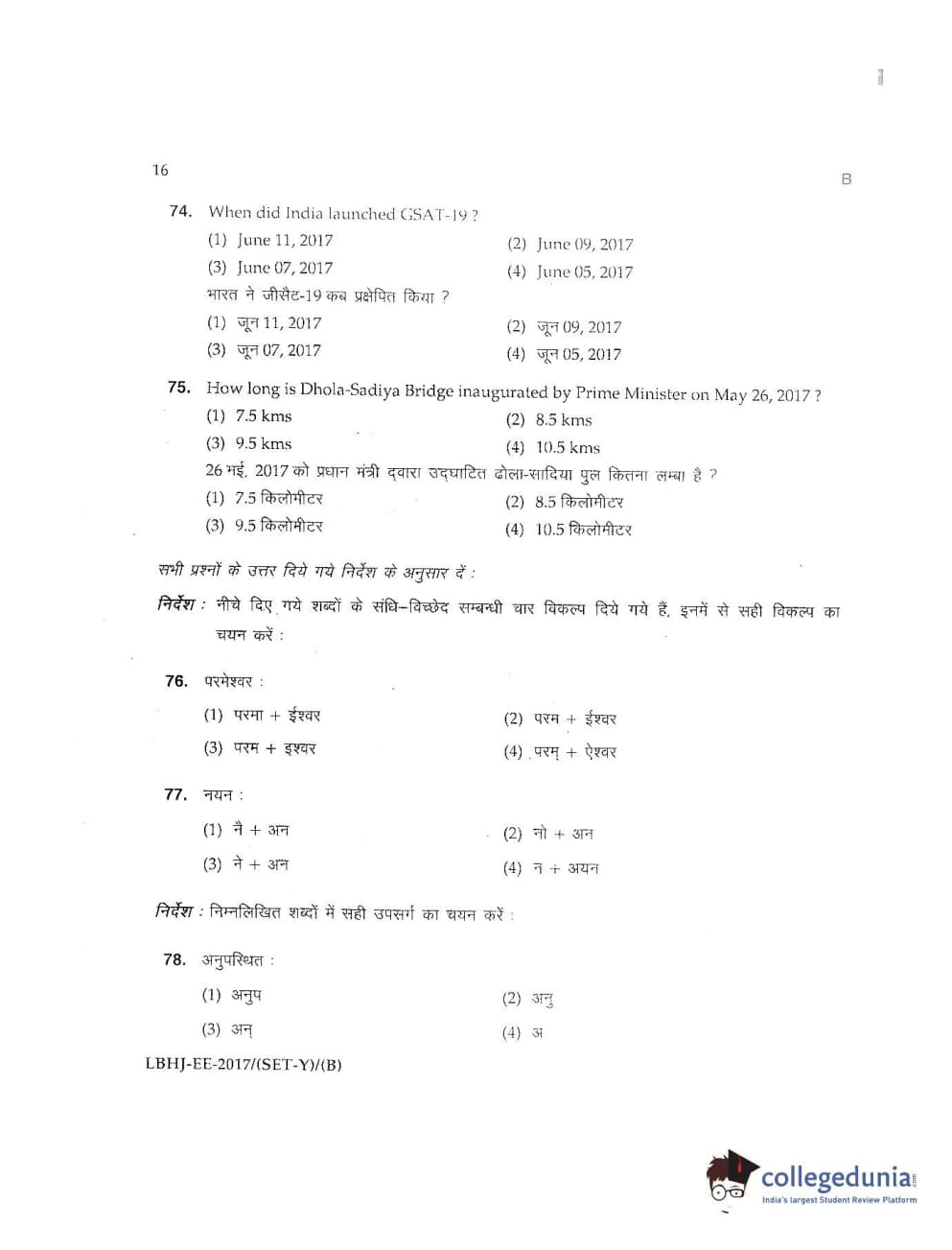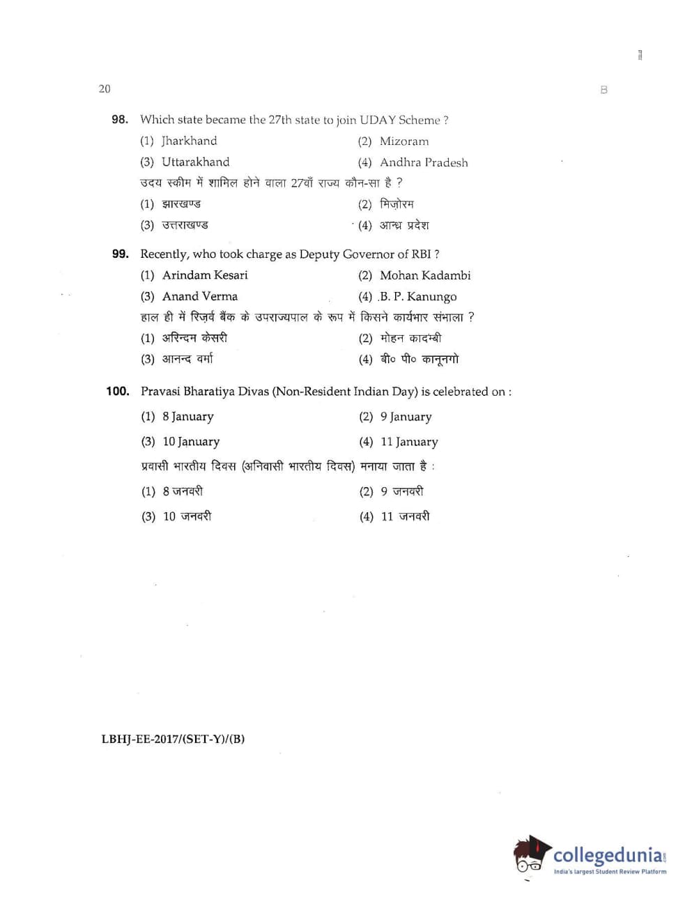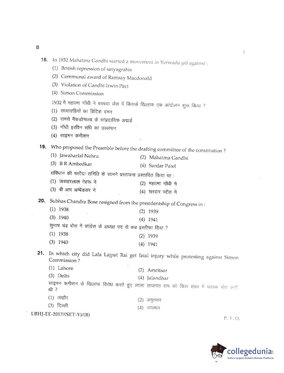 MDUCEE 2017 LL.B-3 Years Set B Question Paper with Answer Key PDFs