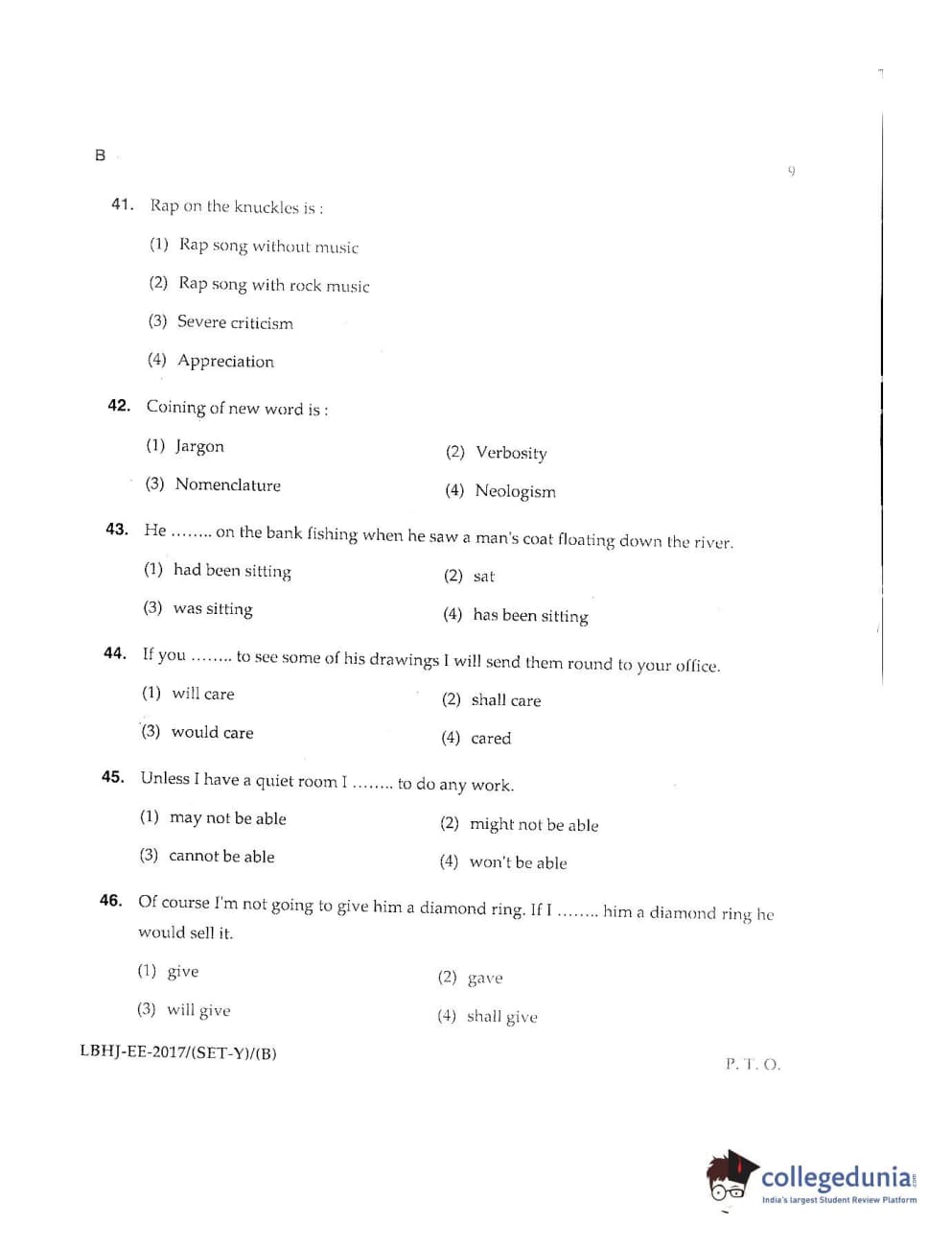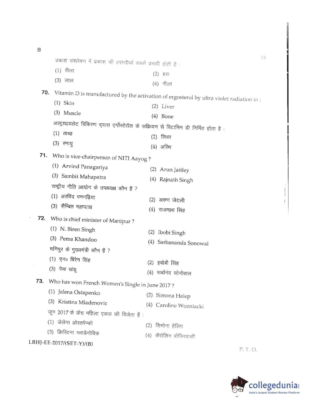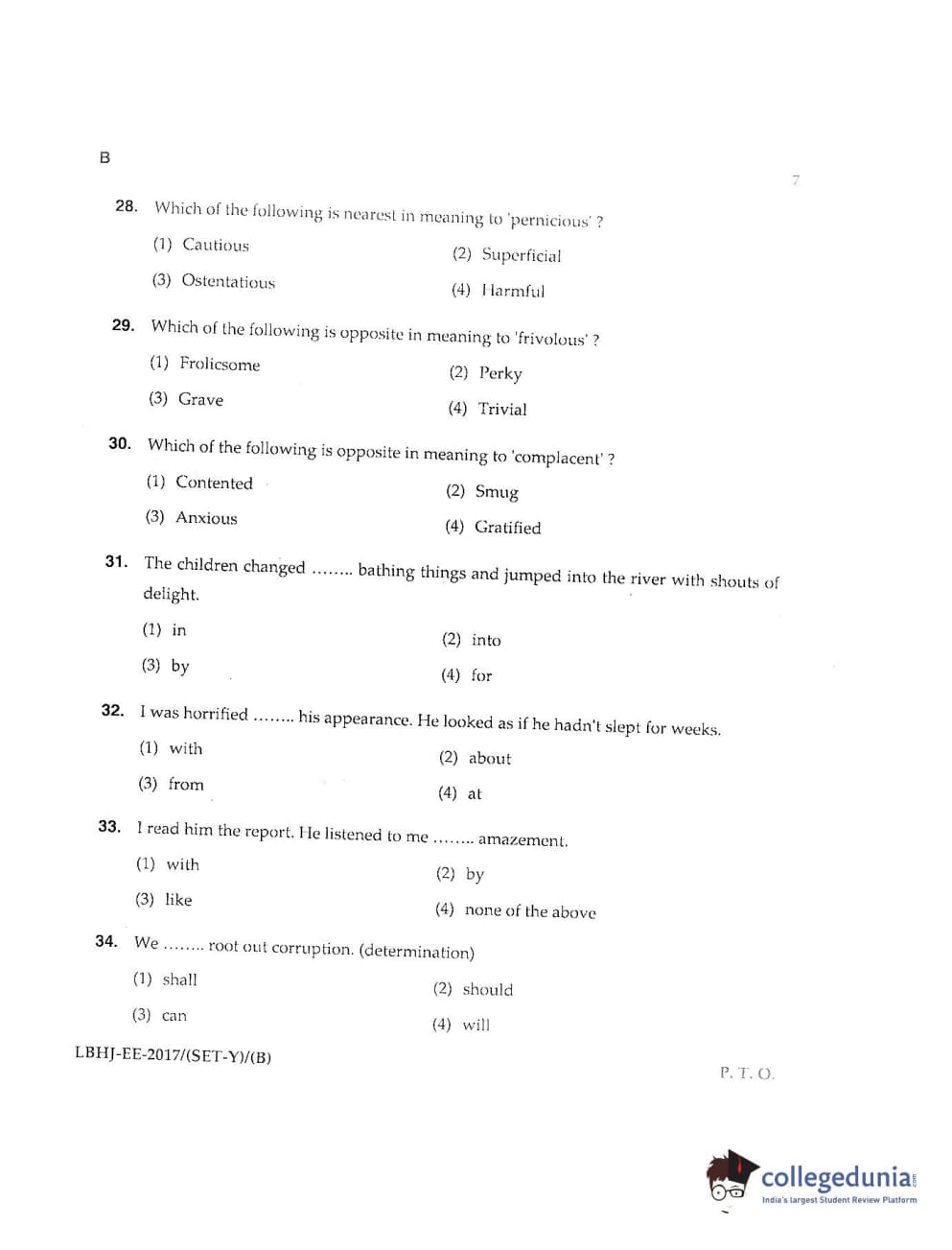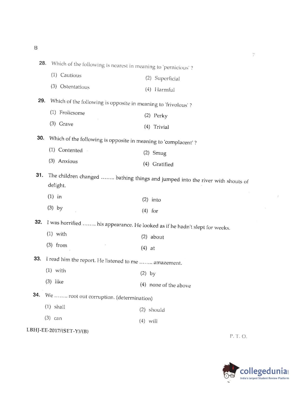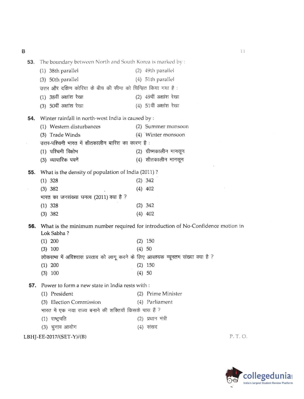 MDUCEE 2017 LL.B-3 Years Set B Question Paper with Answer Key PDFs