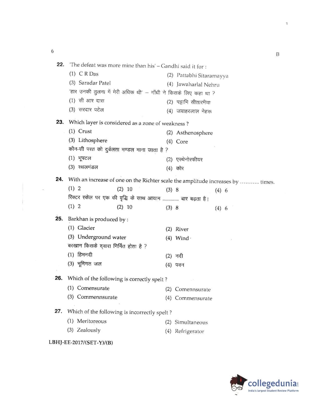 | MDUCEE 2017 LL.B-3 Years Set B Question Paper PDF | MDUCEE 2017 LL.B-3 Years Set B Answer Key PDF |