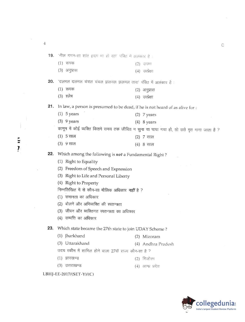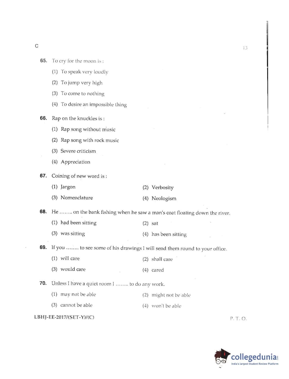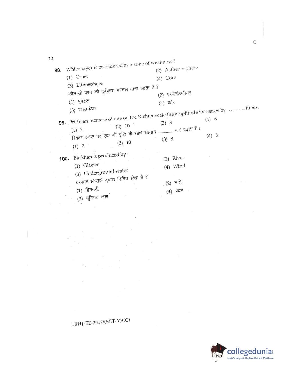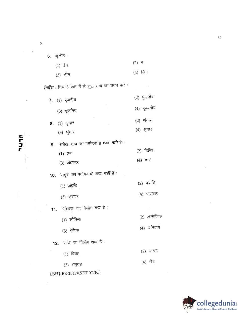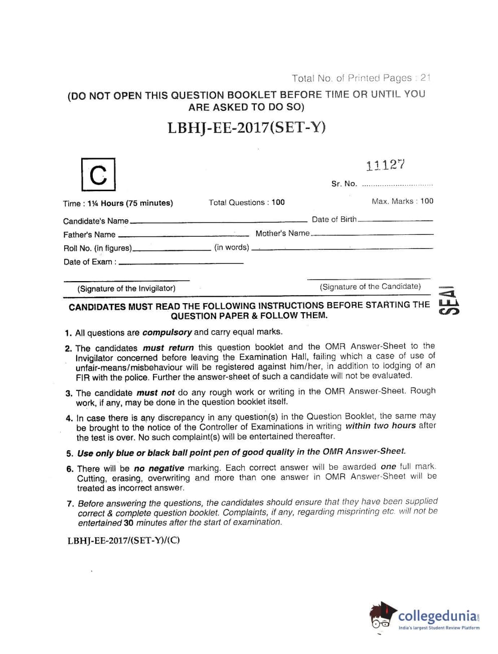 MDUCEE 2017 LL.B-3 Years Set C Question paper with answer key pdf is available for download. The exam was successfully organized by Maharishi Dayanand University. The question paper comprised a total of 100 questions.