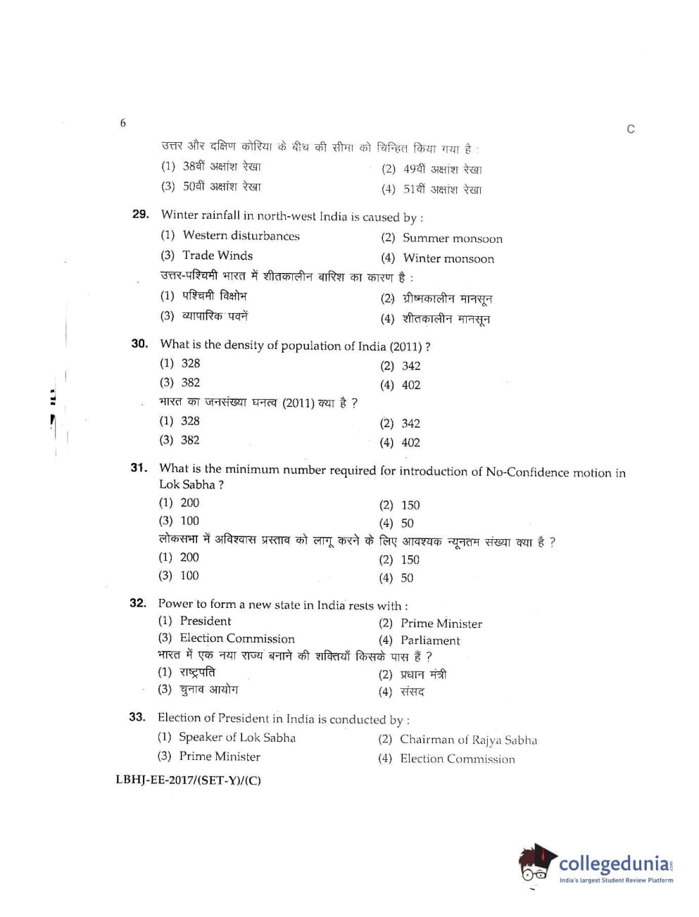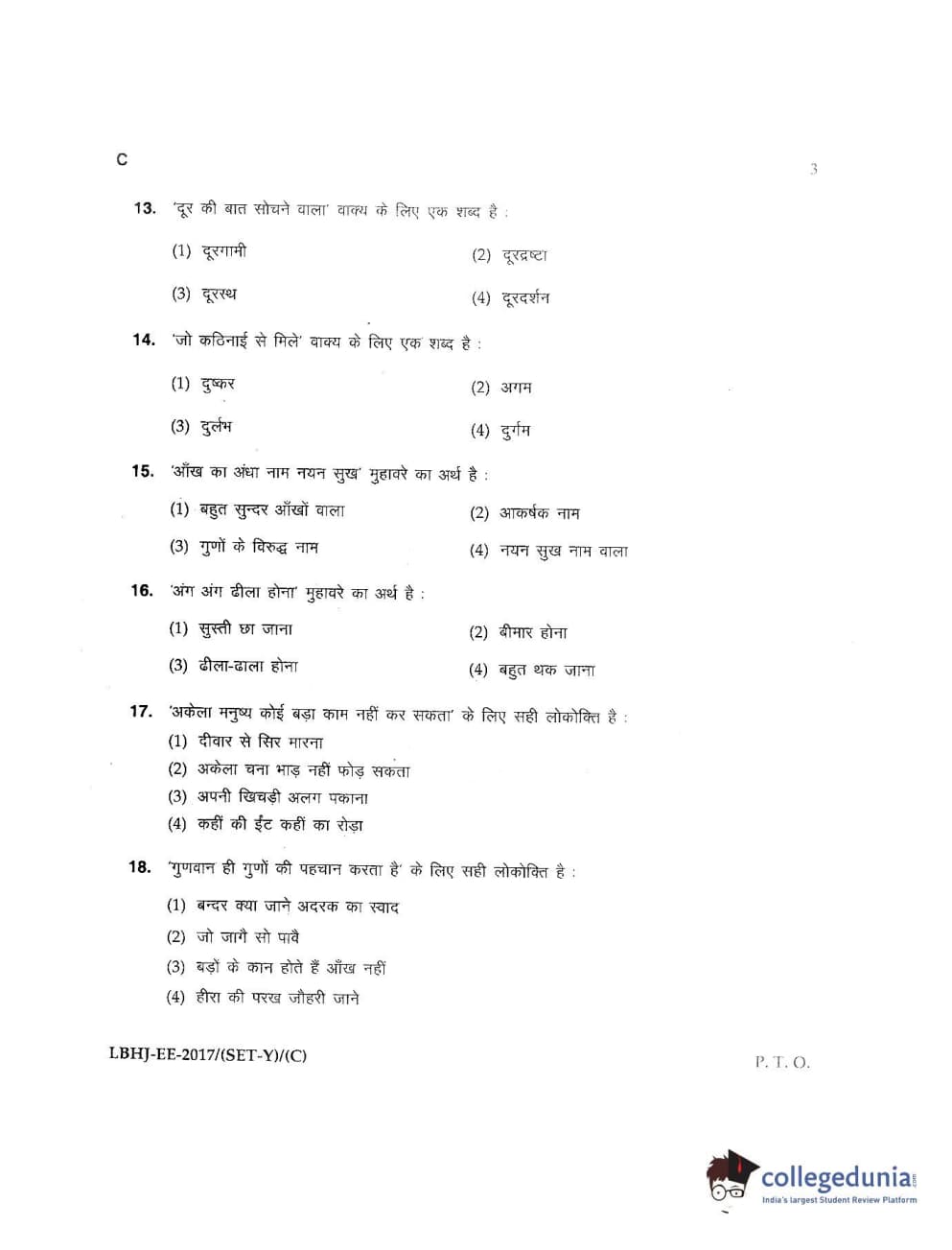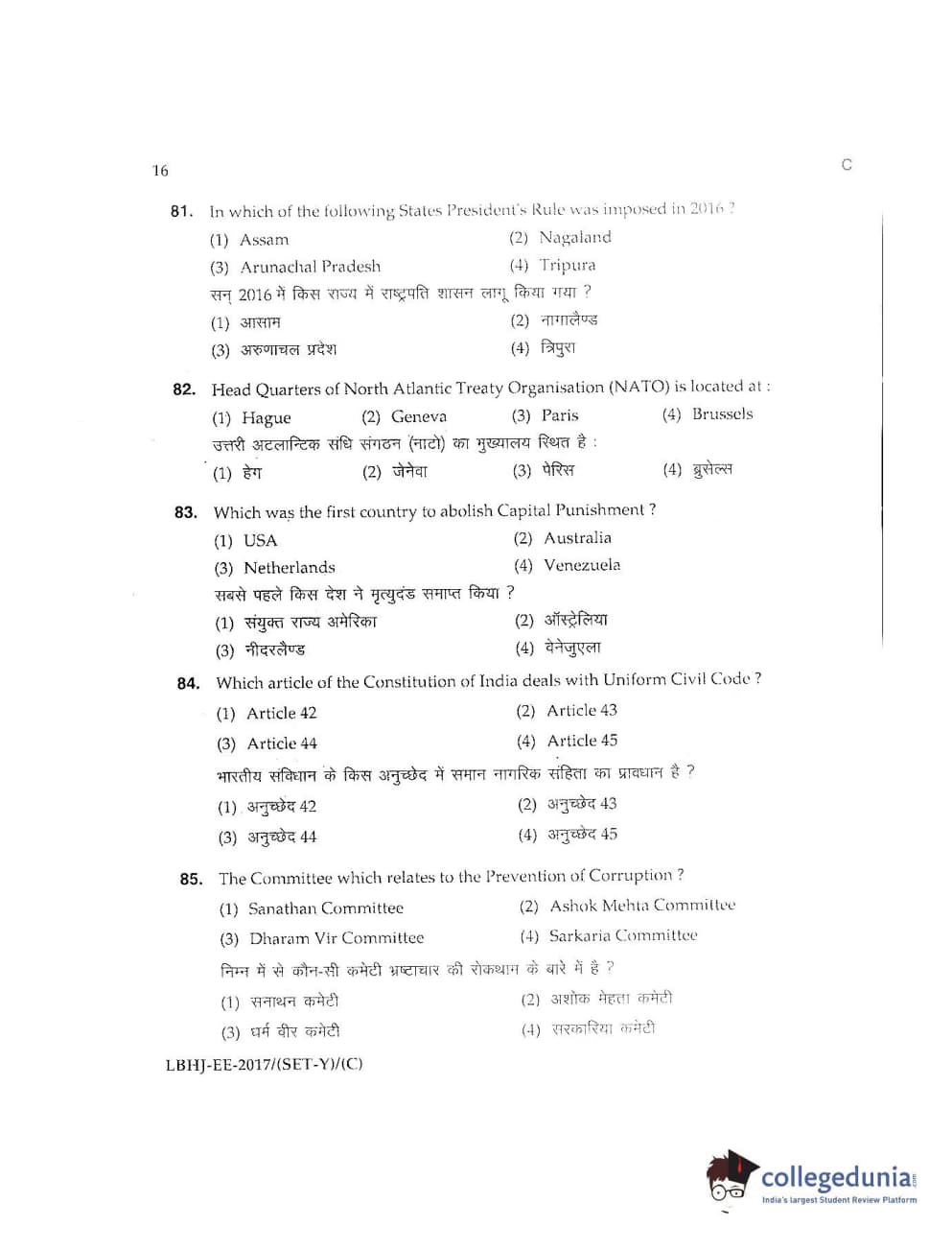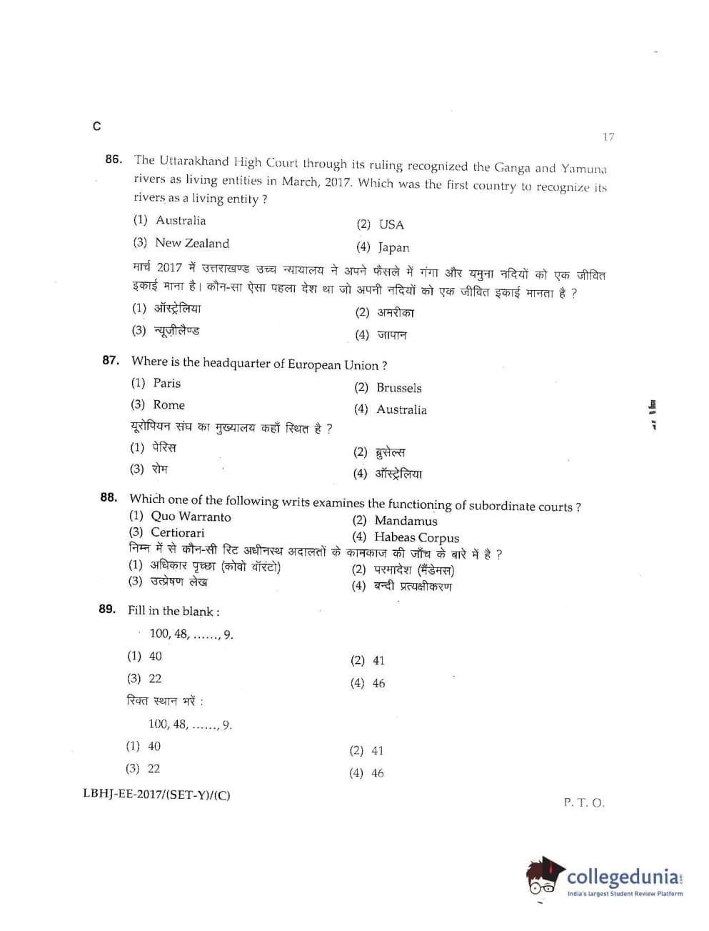 MDUCEE 2017 LL.B-3 Years Set C Question Paper with Answer Key PDFs