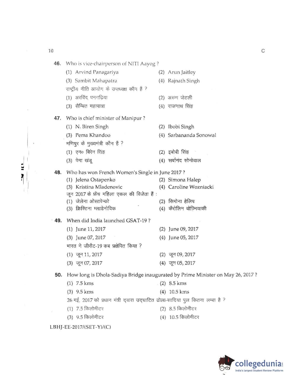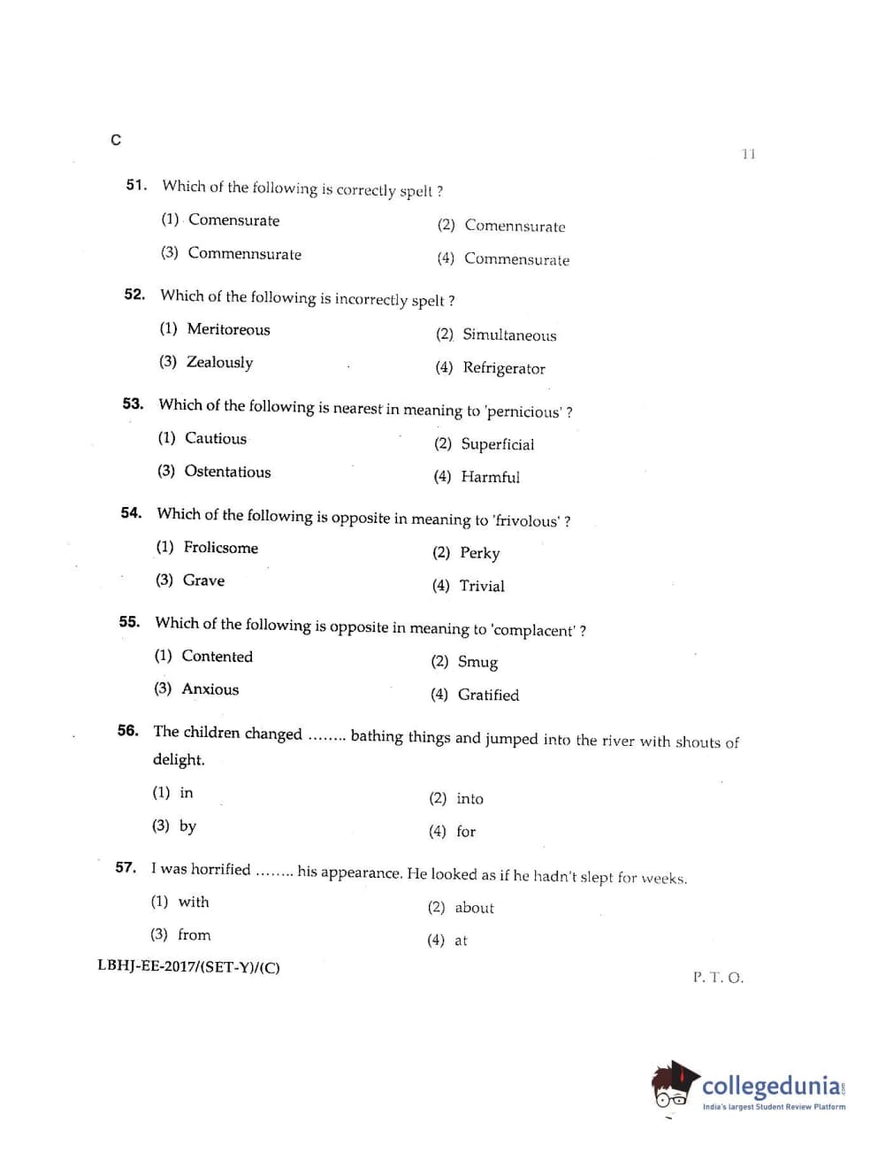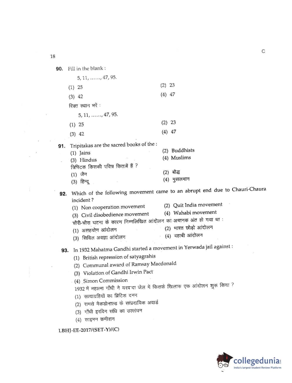 MDUCEE 2017 LL.B-3 Years Set C Question Paper with Answer Key PDFs