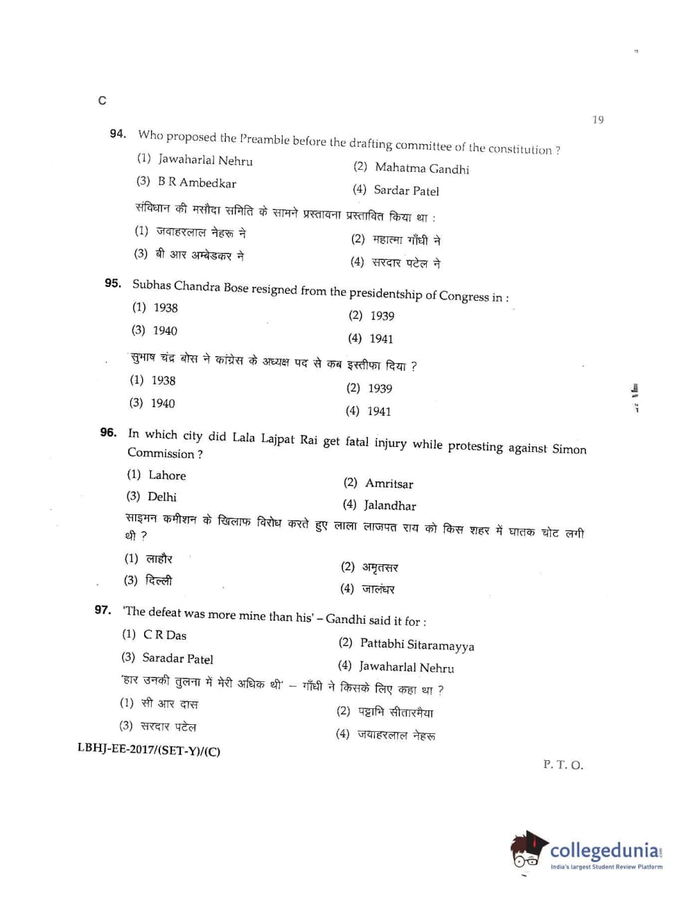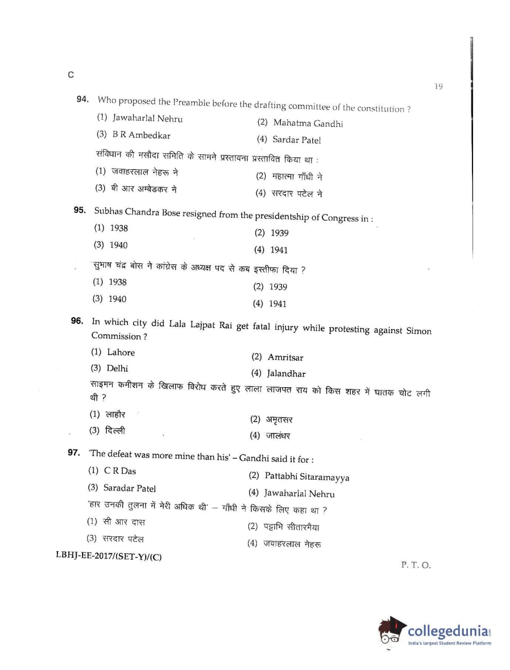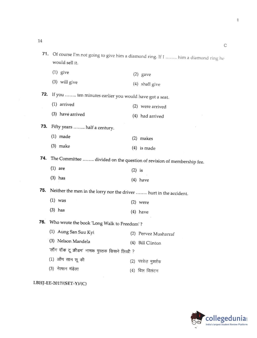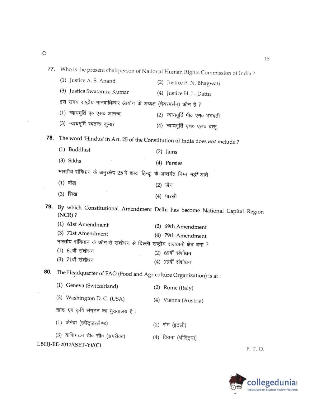 MDUCEE 2017 LL.B-3 Years Set C Question Paper with Answer Key PDFs