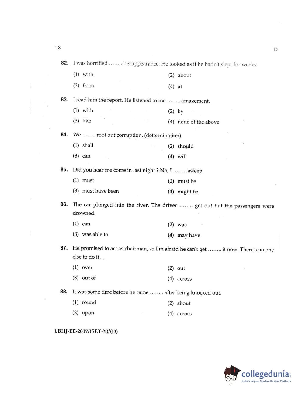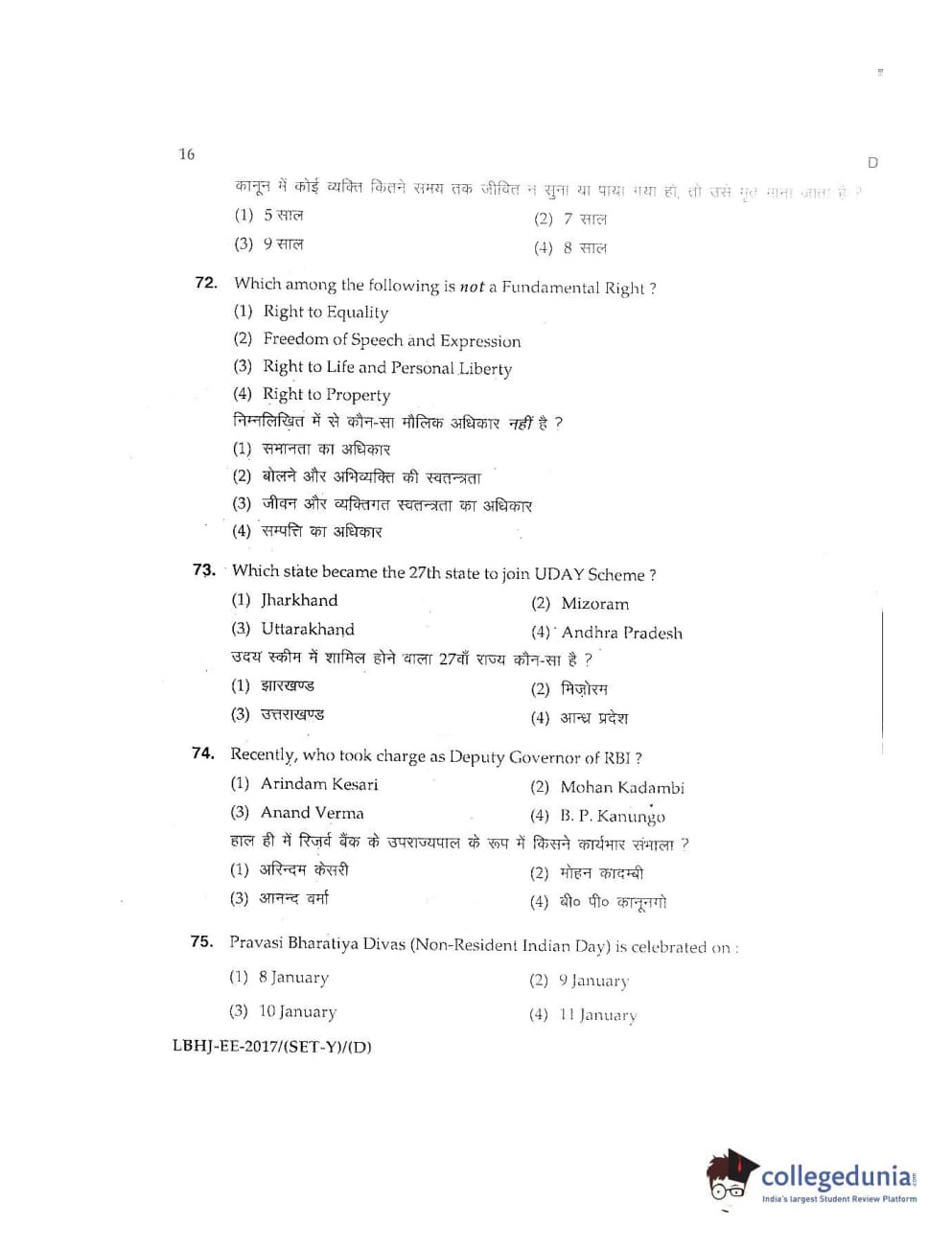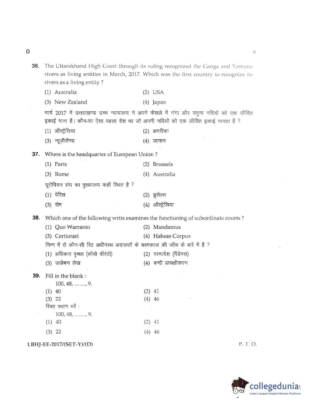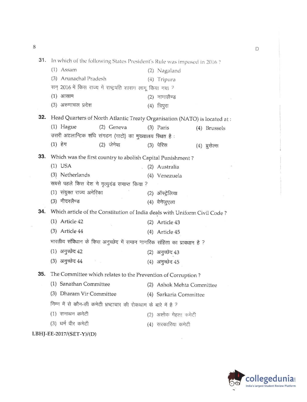 MDUCEE 2017 LL.B-3 Years Set D Question Paper with Answer Key PDFs
