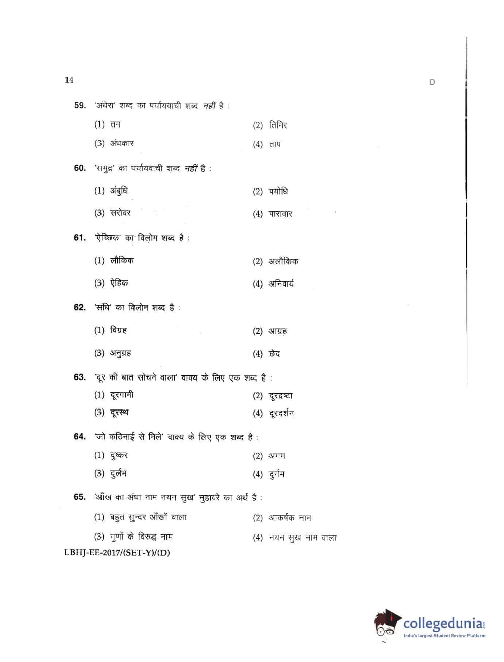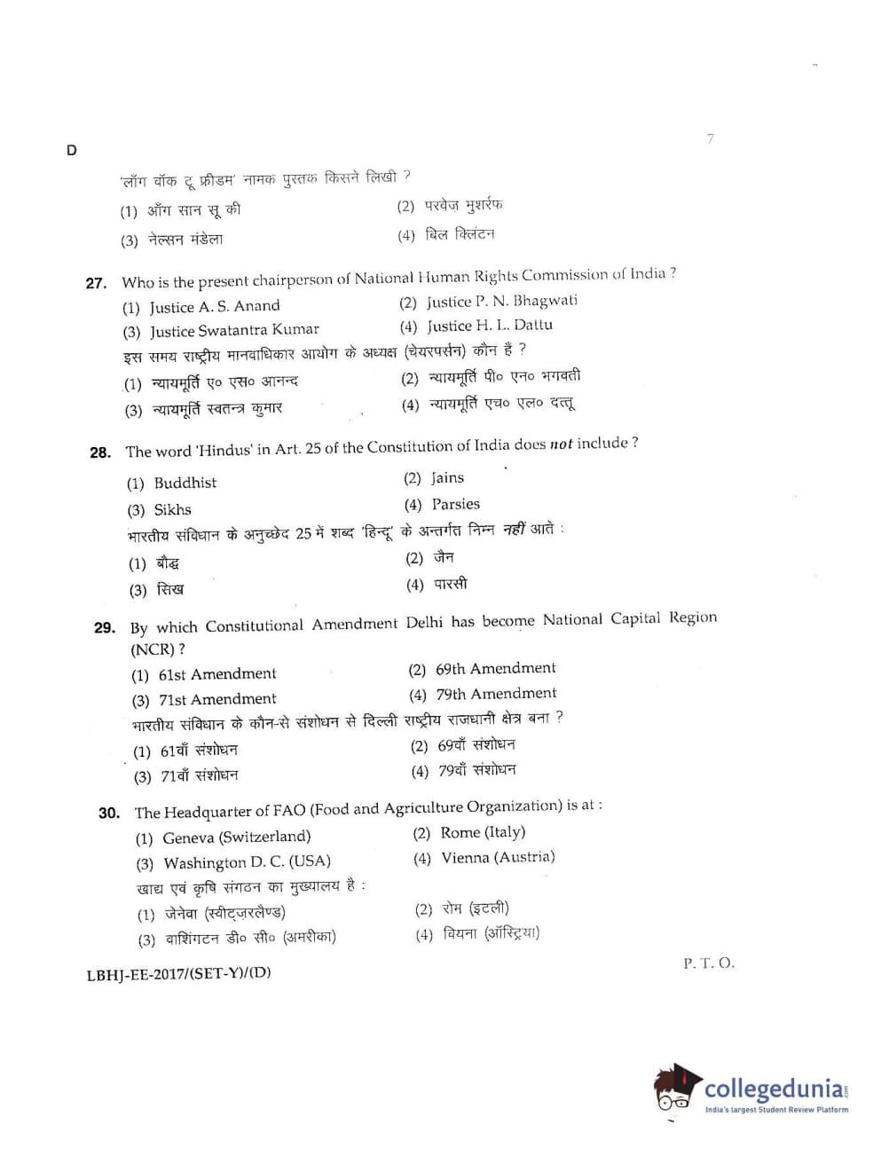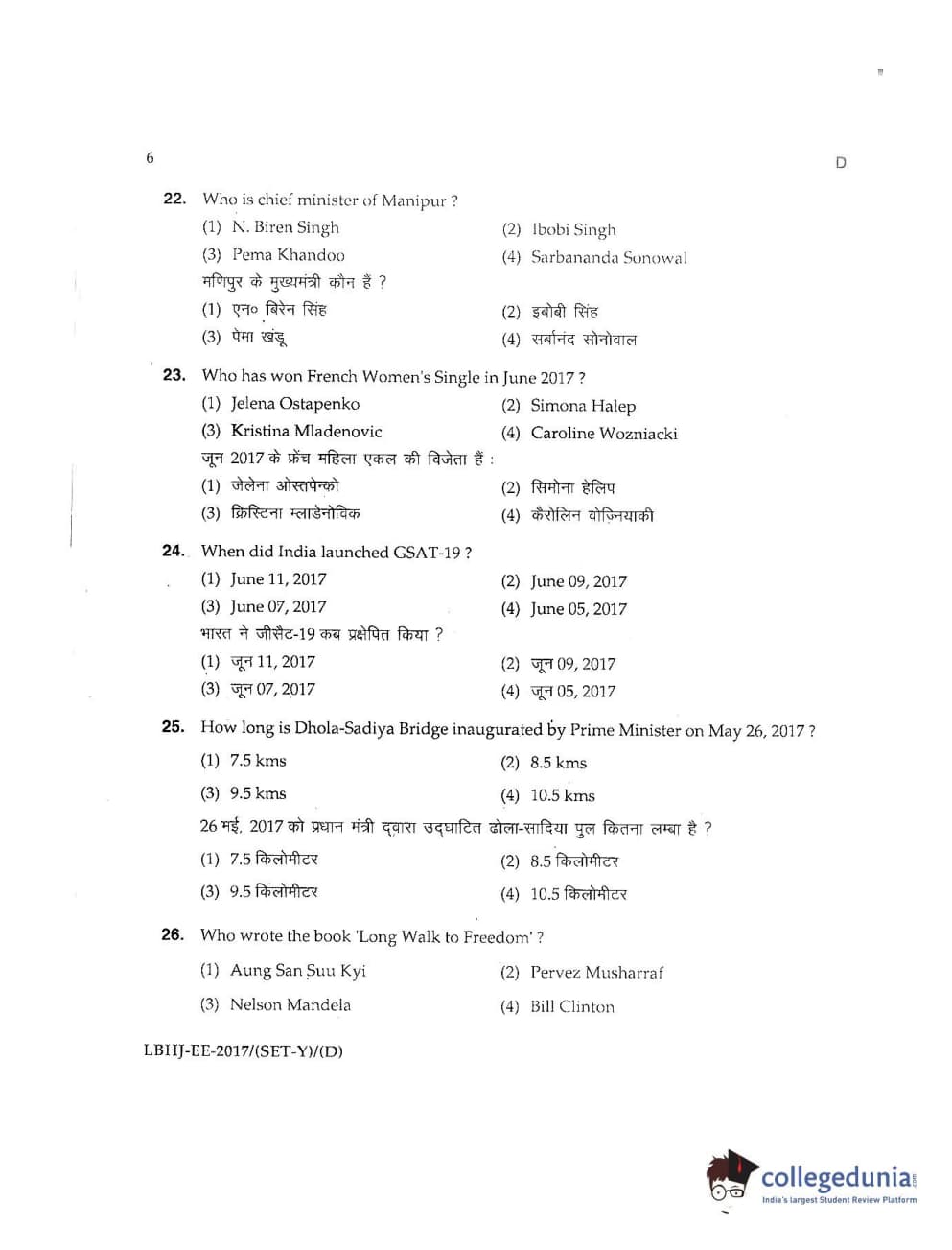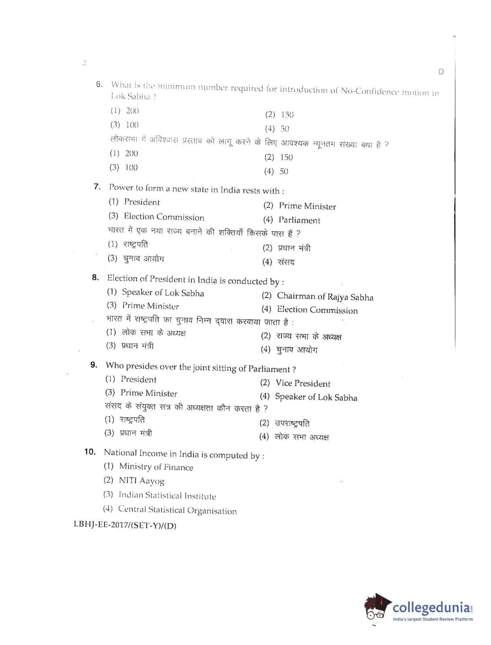 MDUCEE 2017 LL.B-3 Years Set D Question Paper with Answer Key PDFs