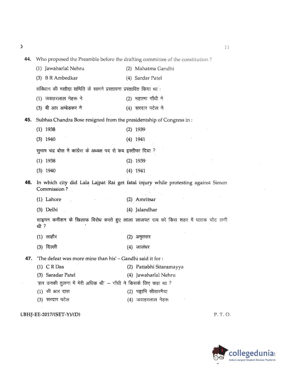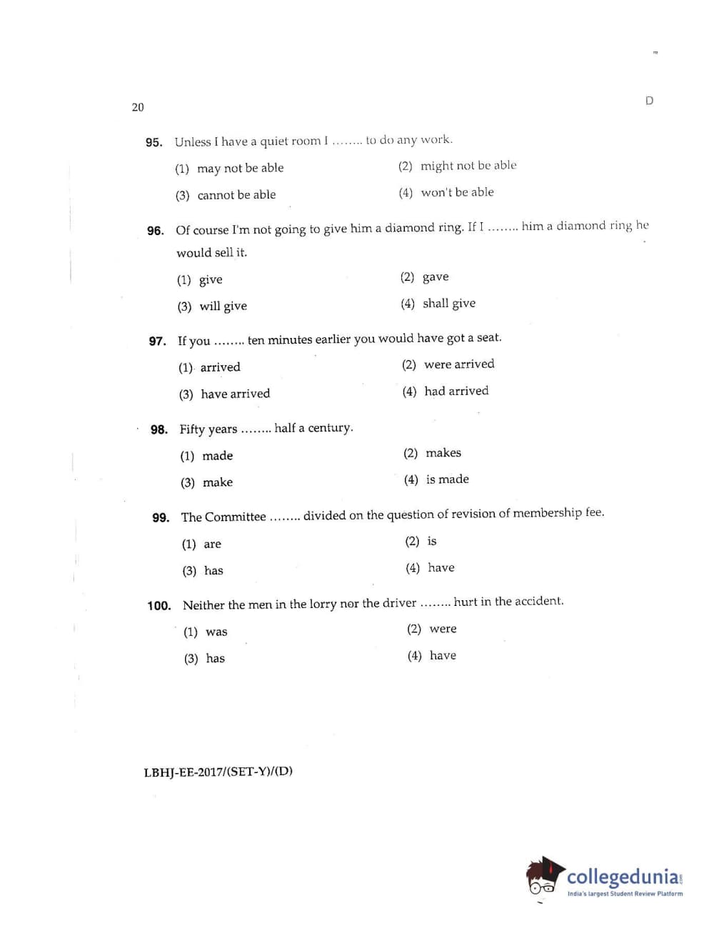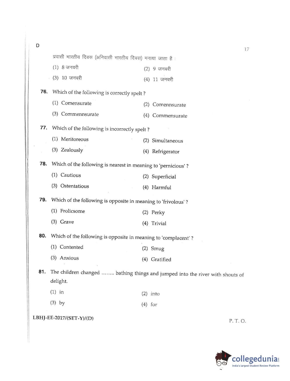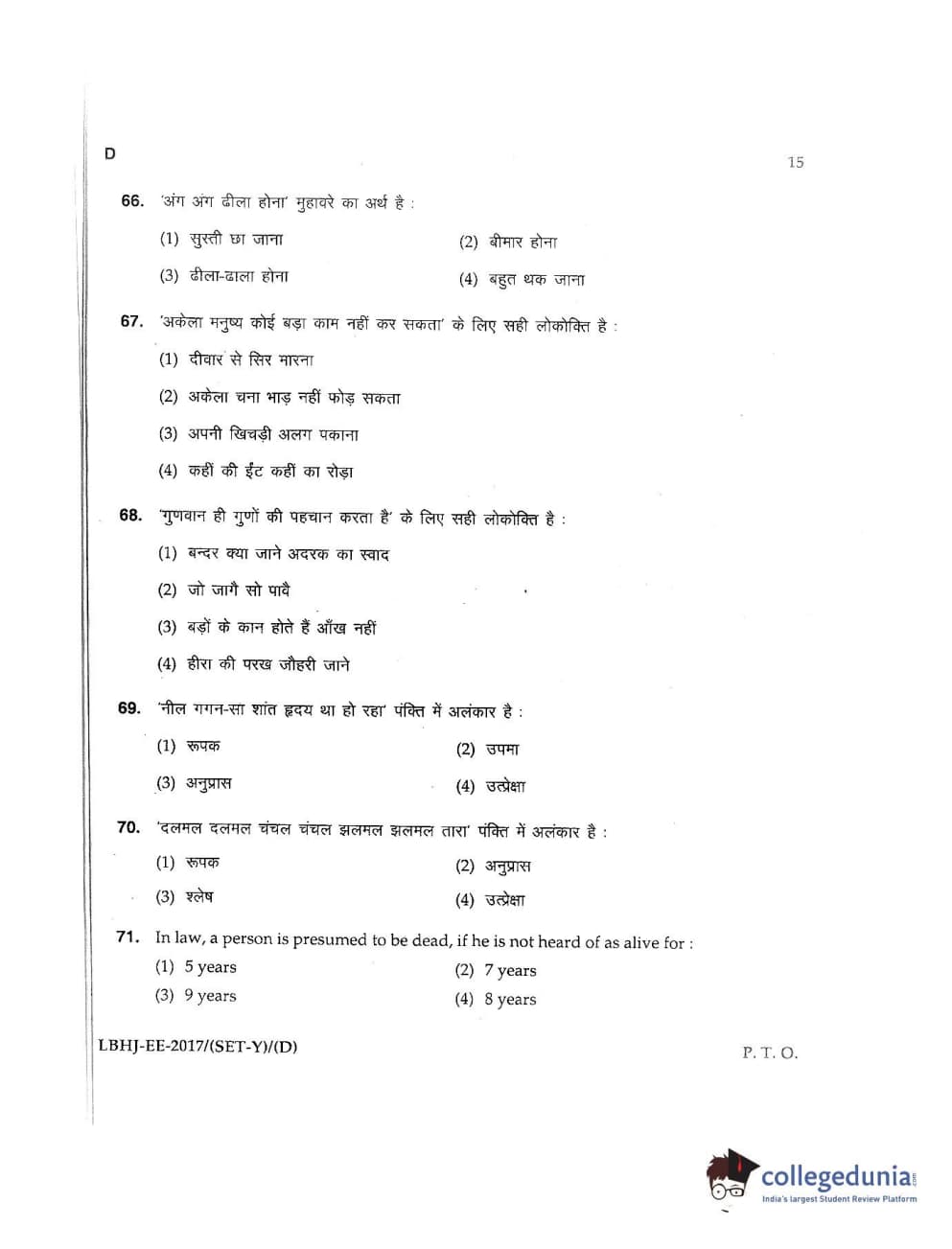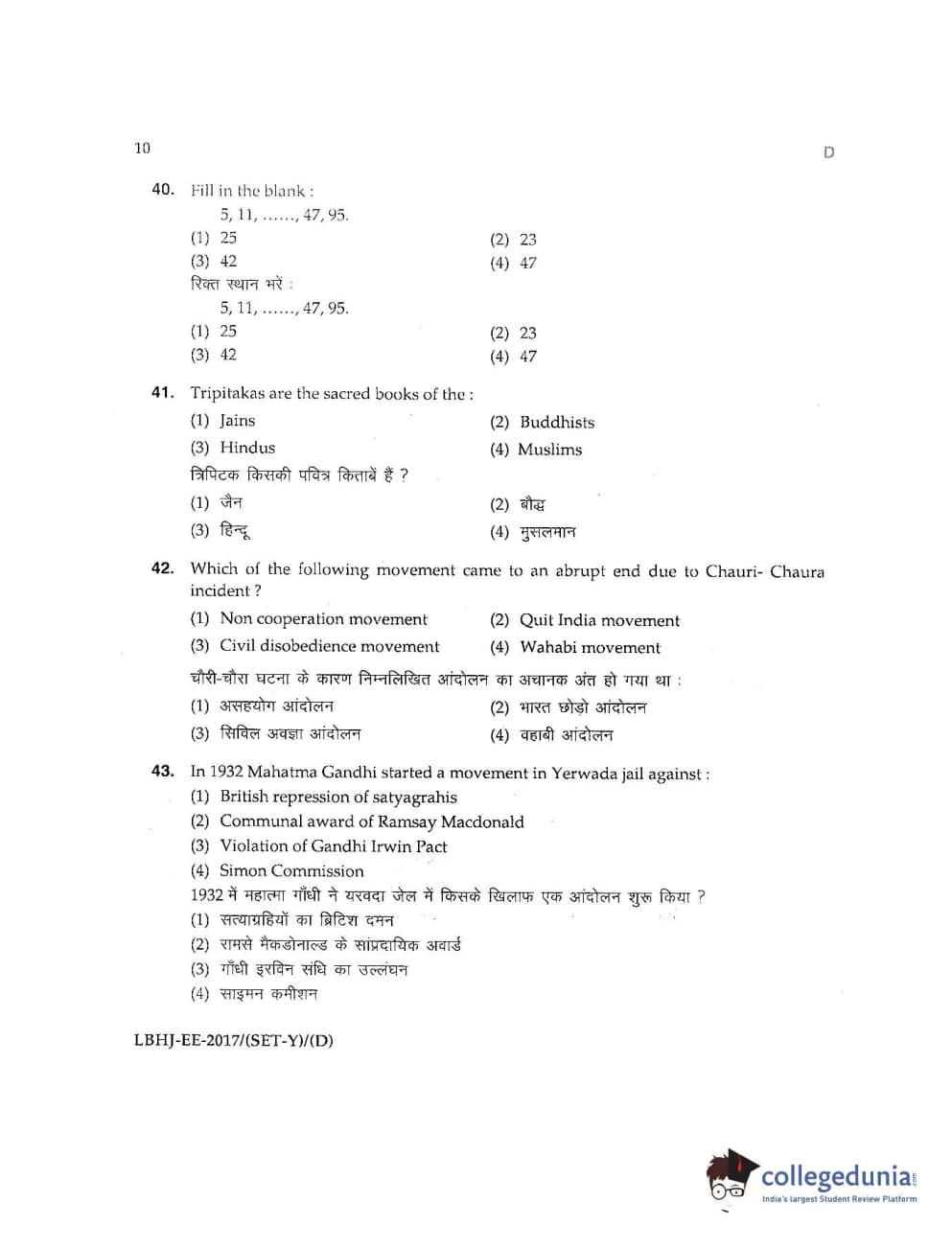 MDUCEE 2017 LL.B-3 Years Set D Question Paper with Answer Key PDFs