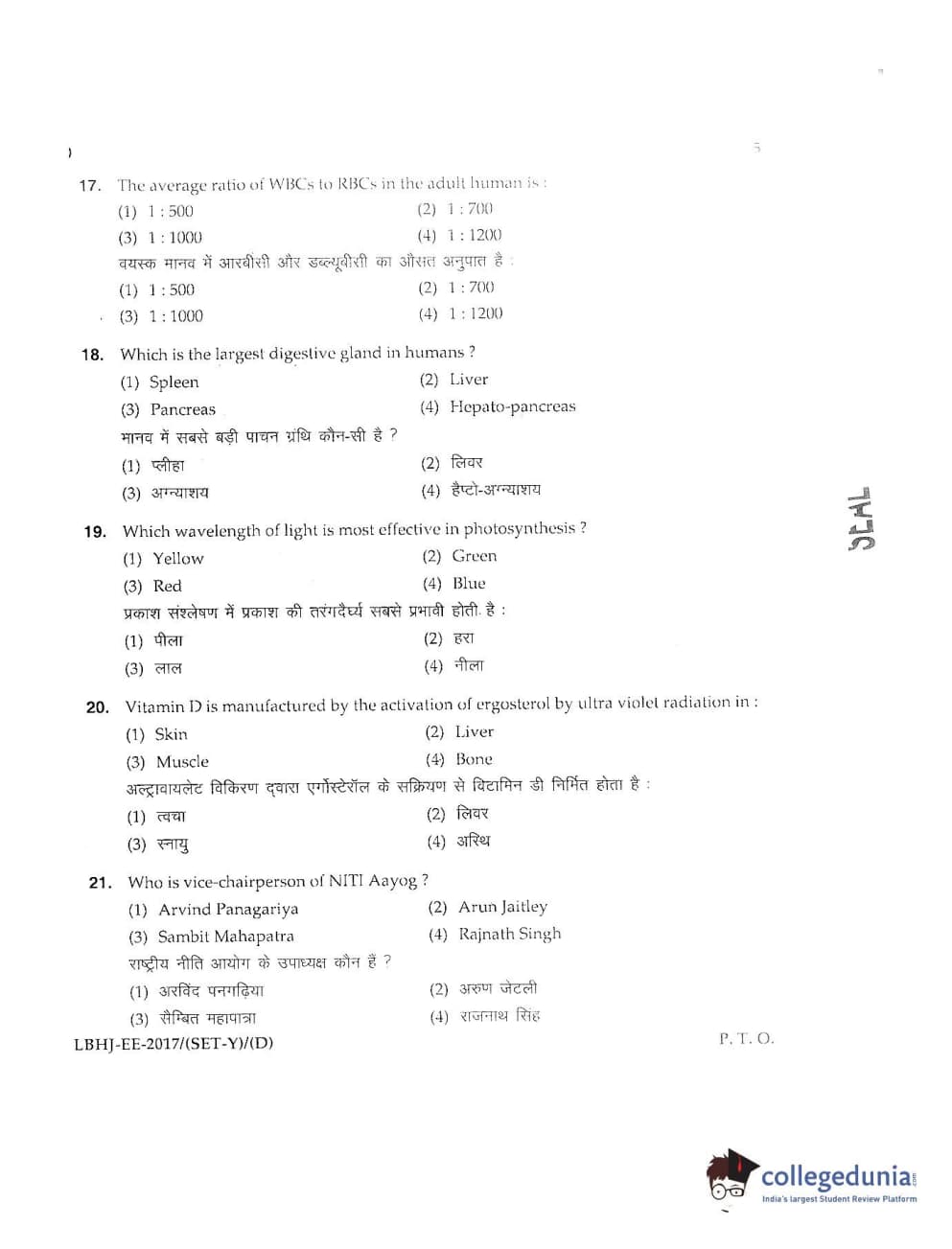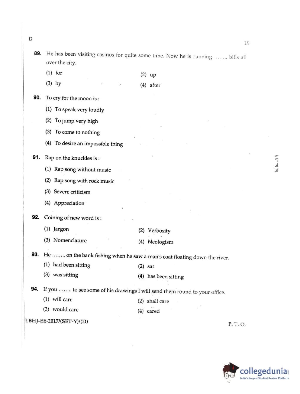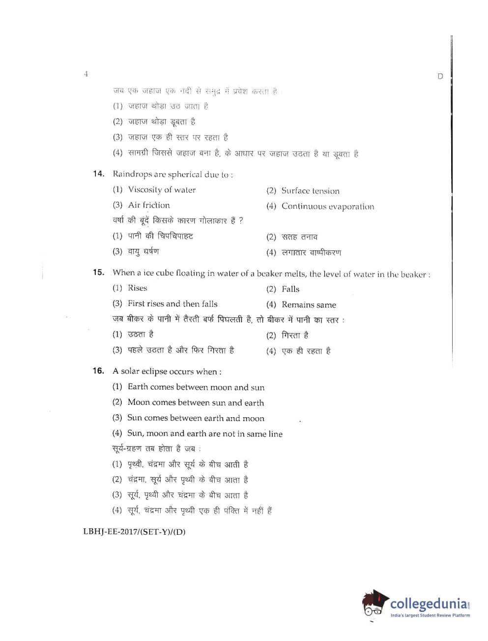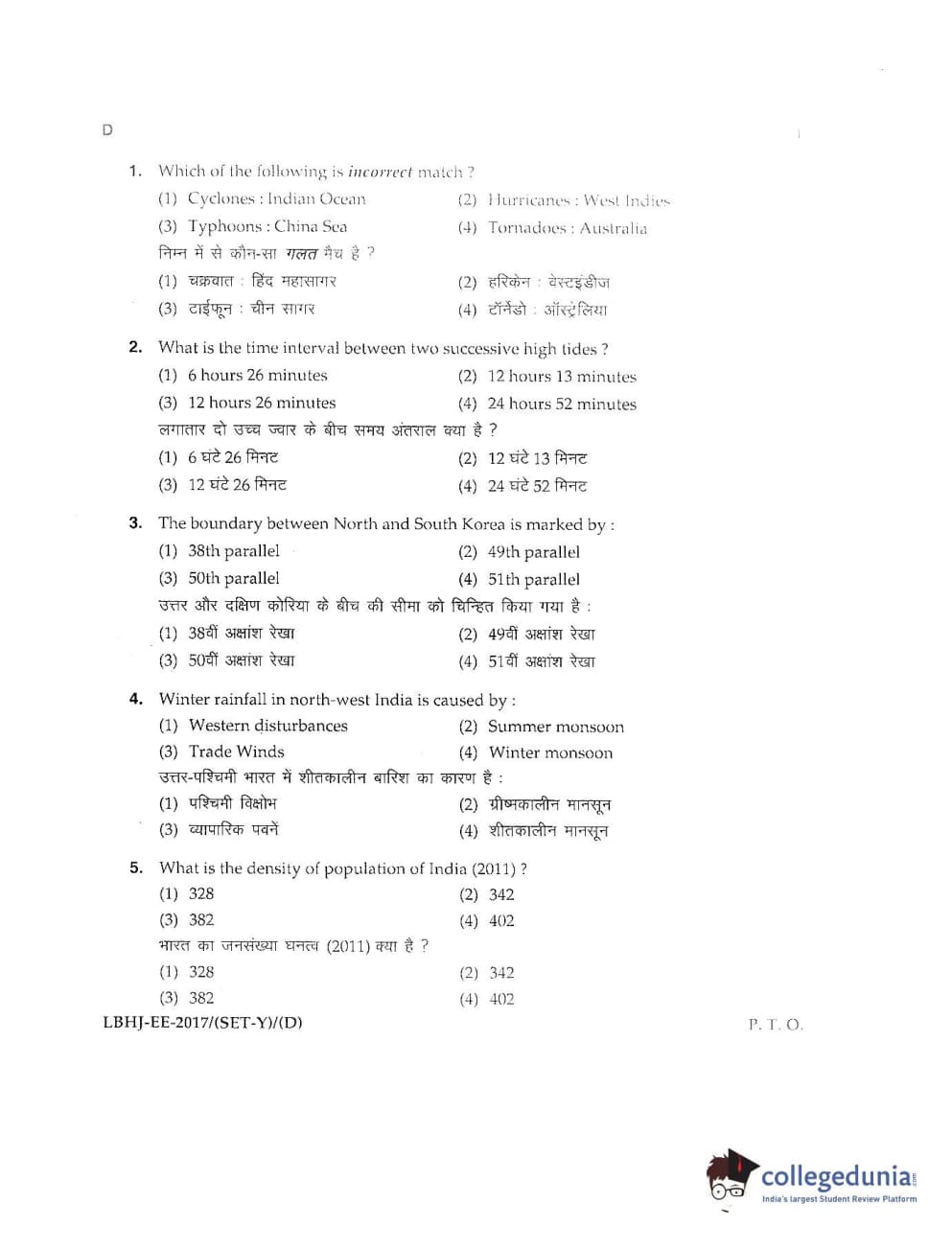 MDUCEE 2017 LL.B-3 Years Set D Question Paper with Answer Key PDFs