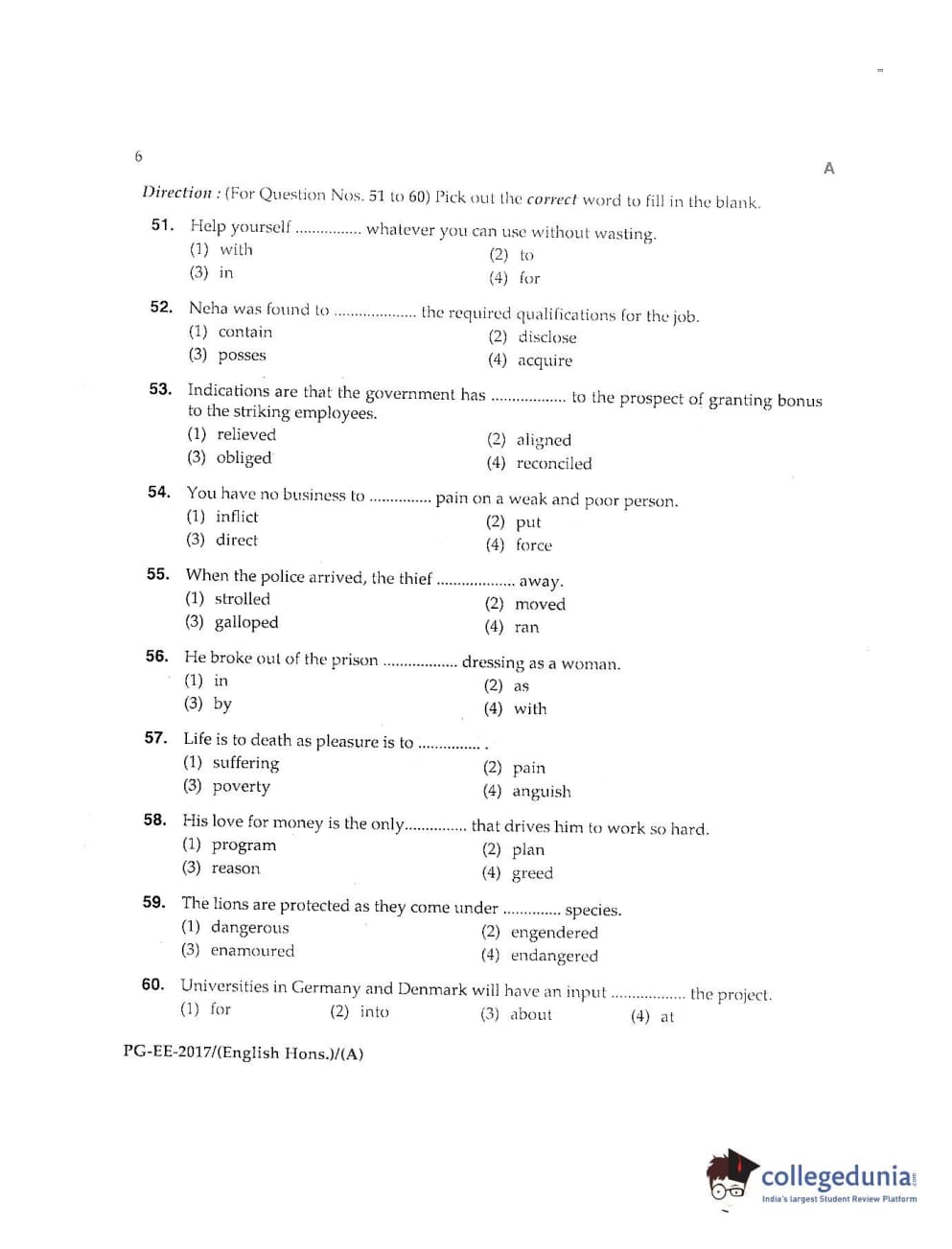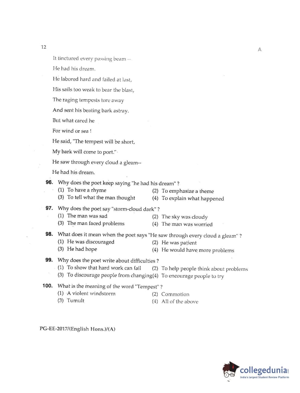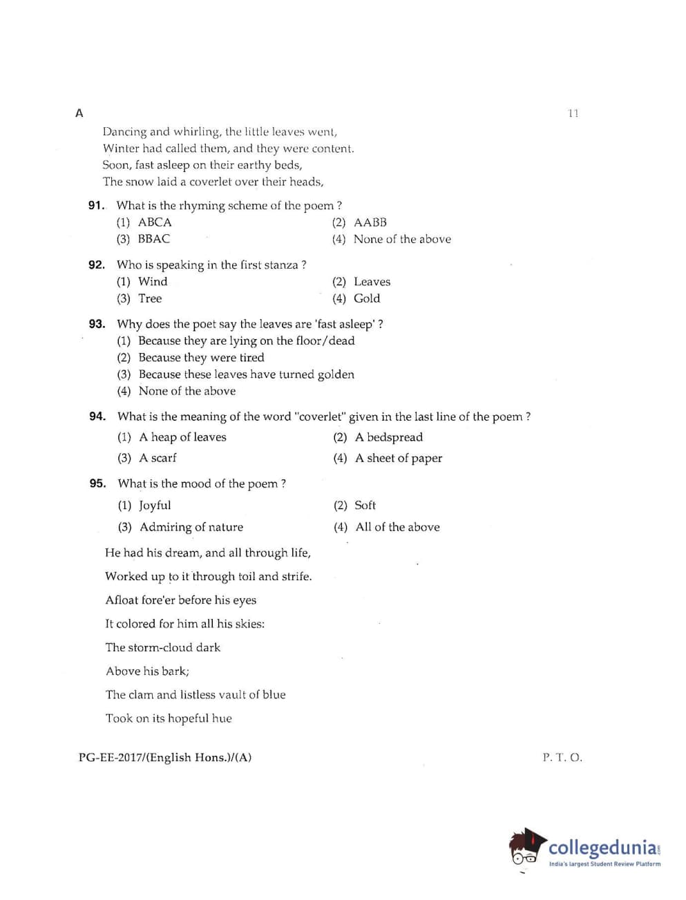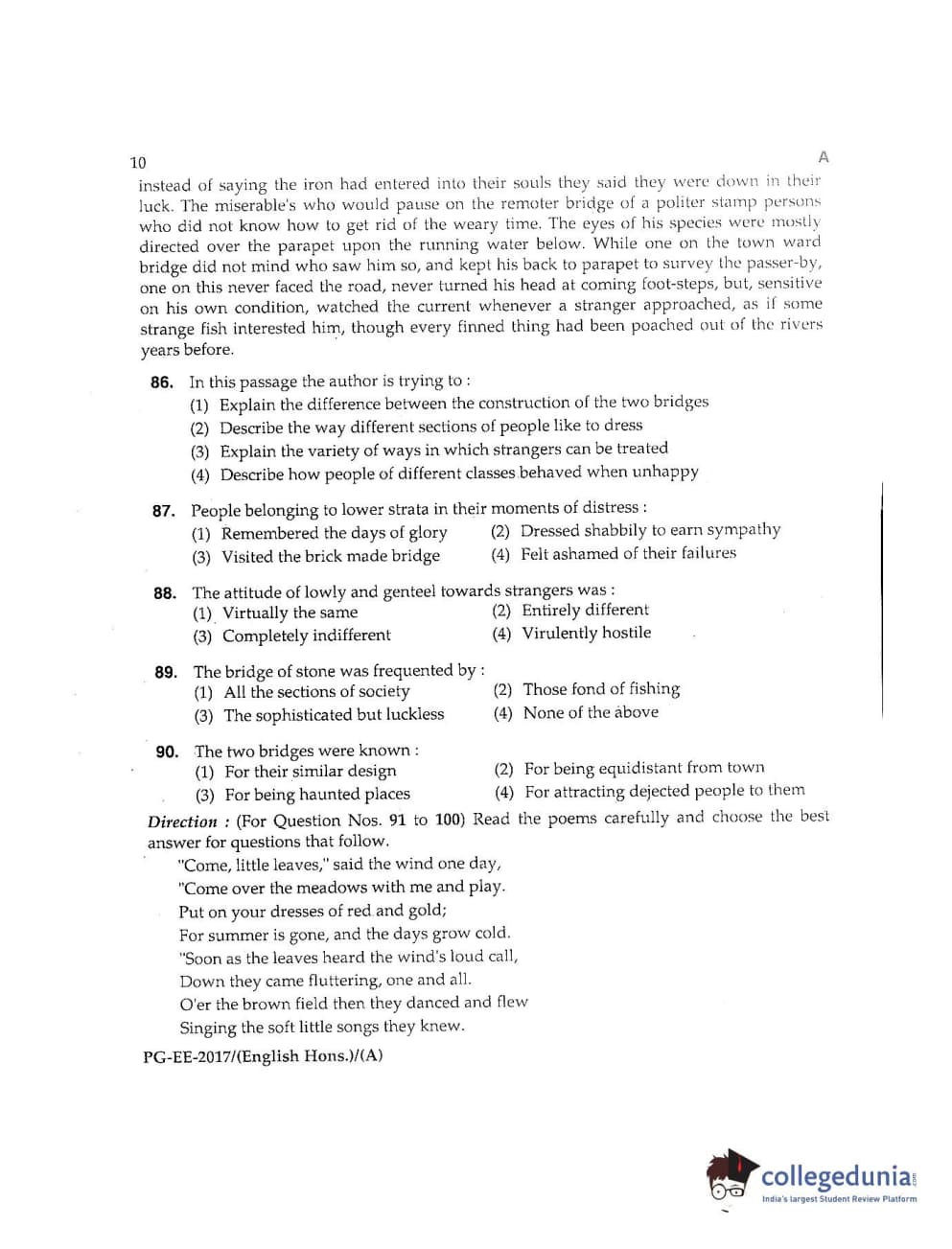 MDUCEE 2017 M.A. (Hons) English 5 Years Integrated Set A Question Paper with Answer Key PDFs