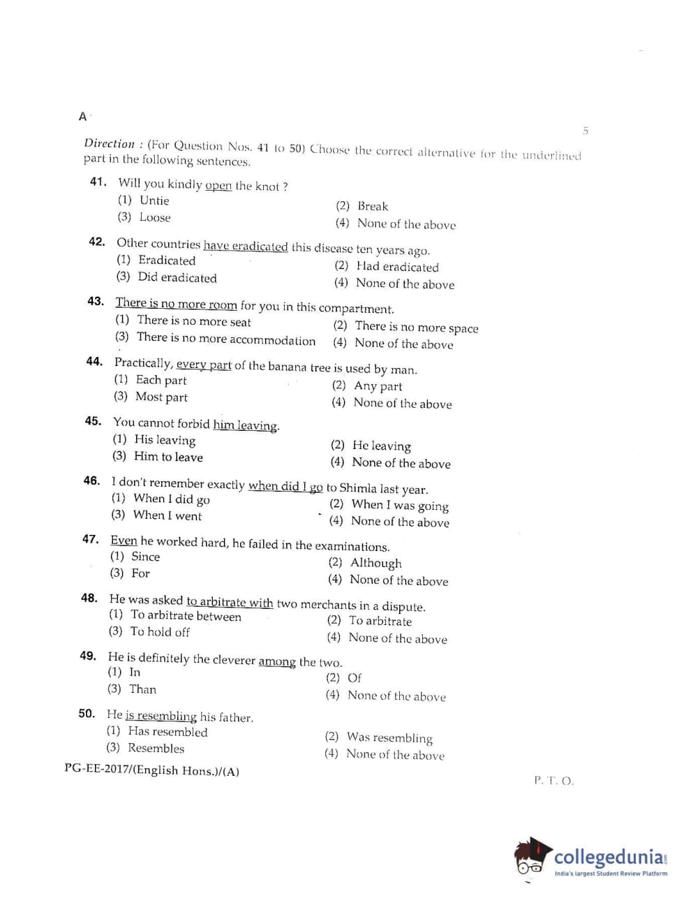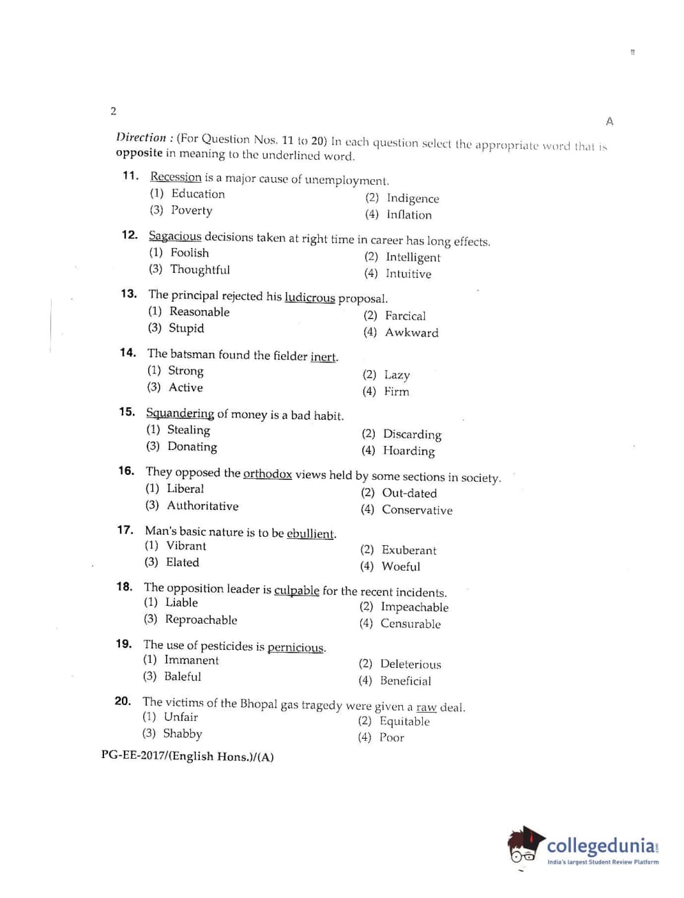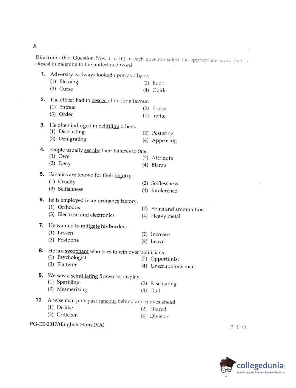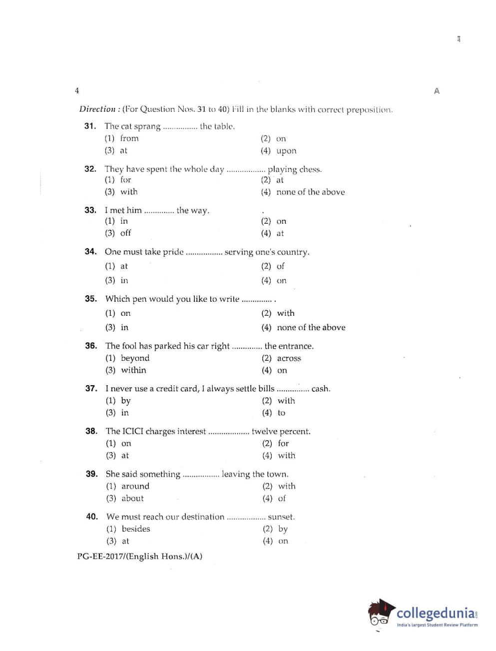 MDUCEE 2017 M.A. (Hons) English 5 Years Integrated Set A Question Paper with Answer Key PDFs