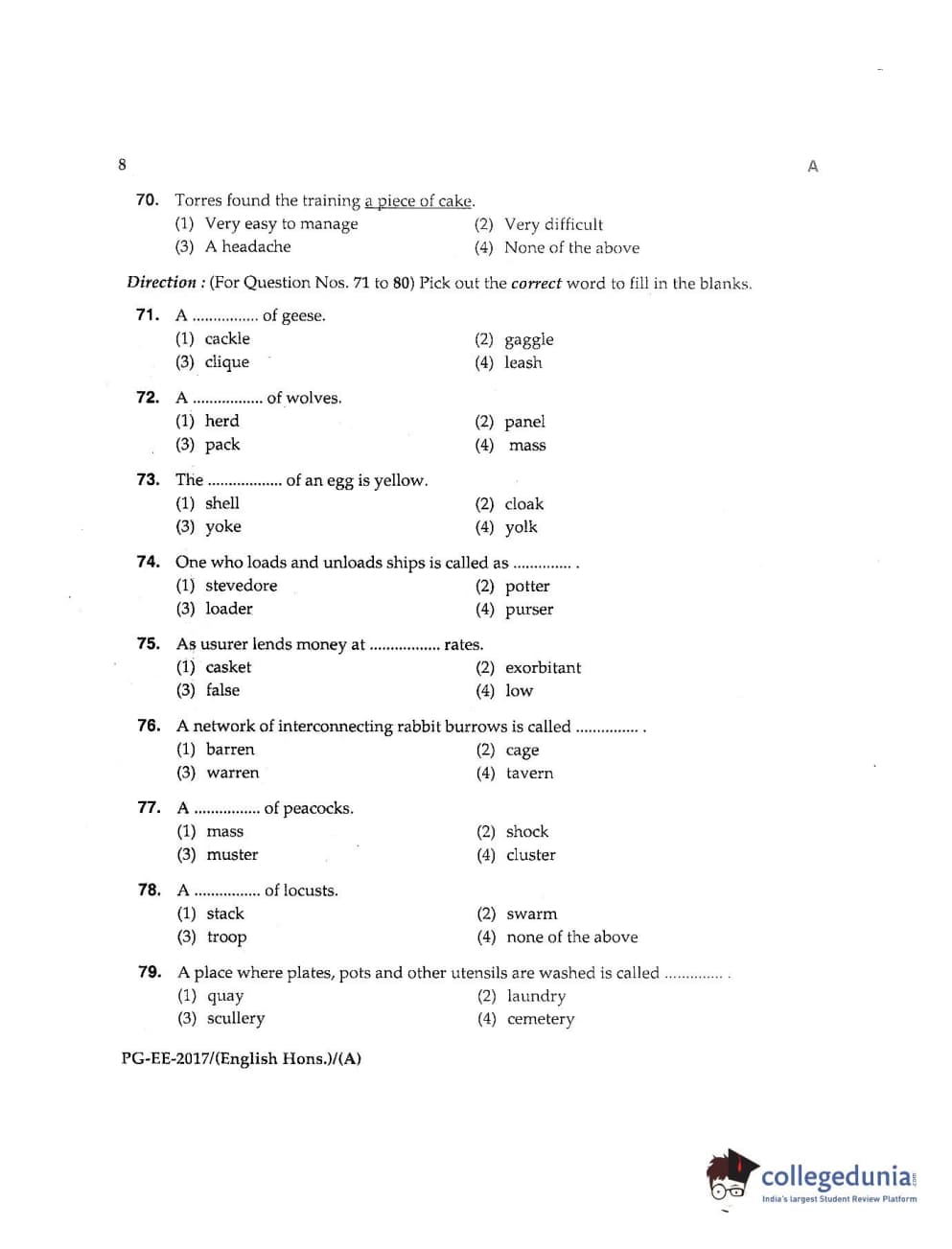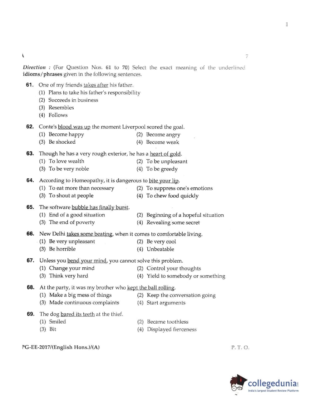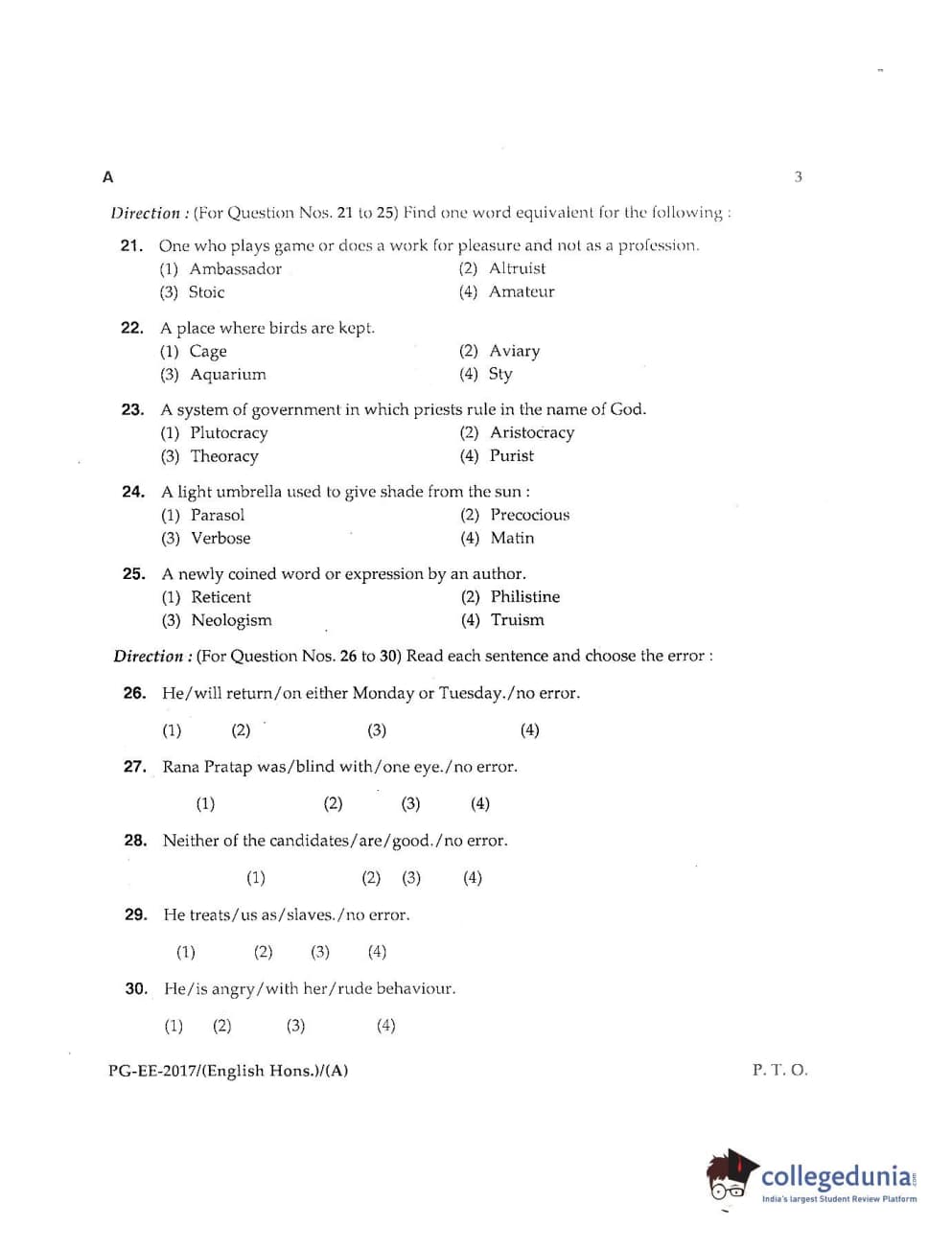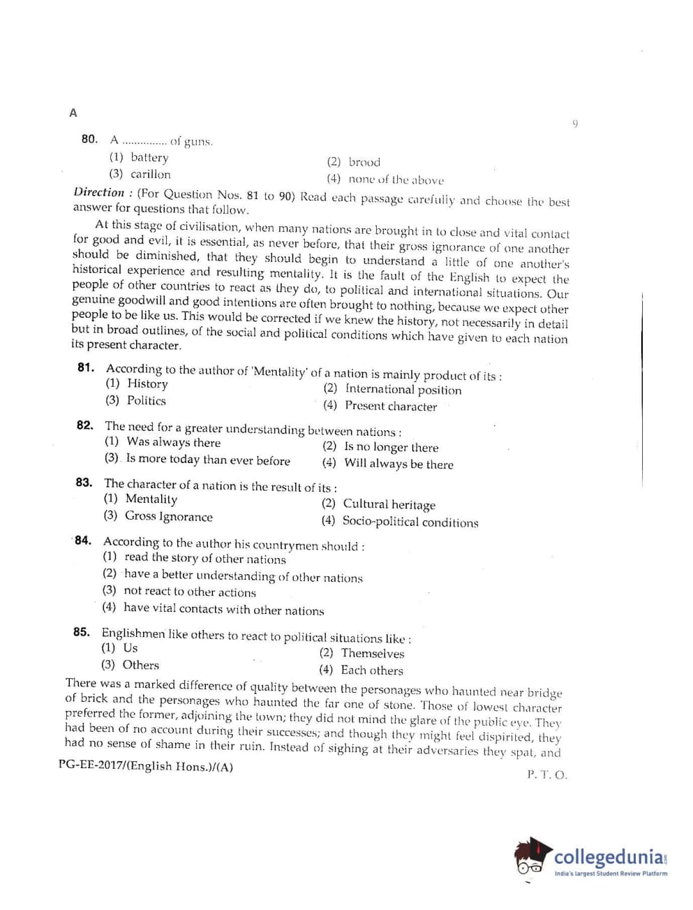 MDUCEE 2017 M.A. (Hons) English 5 Years Integrated Set A Question Paper with Answer Key PDFs