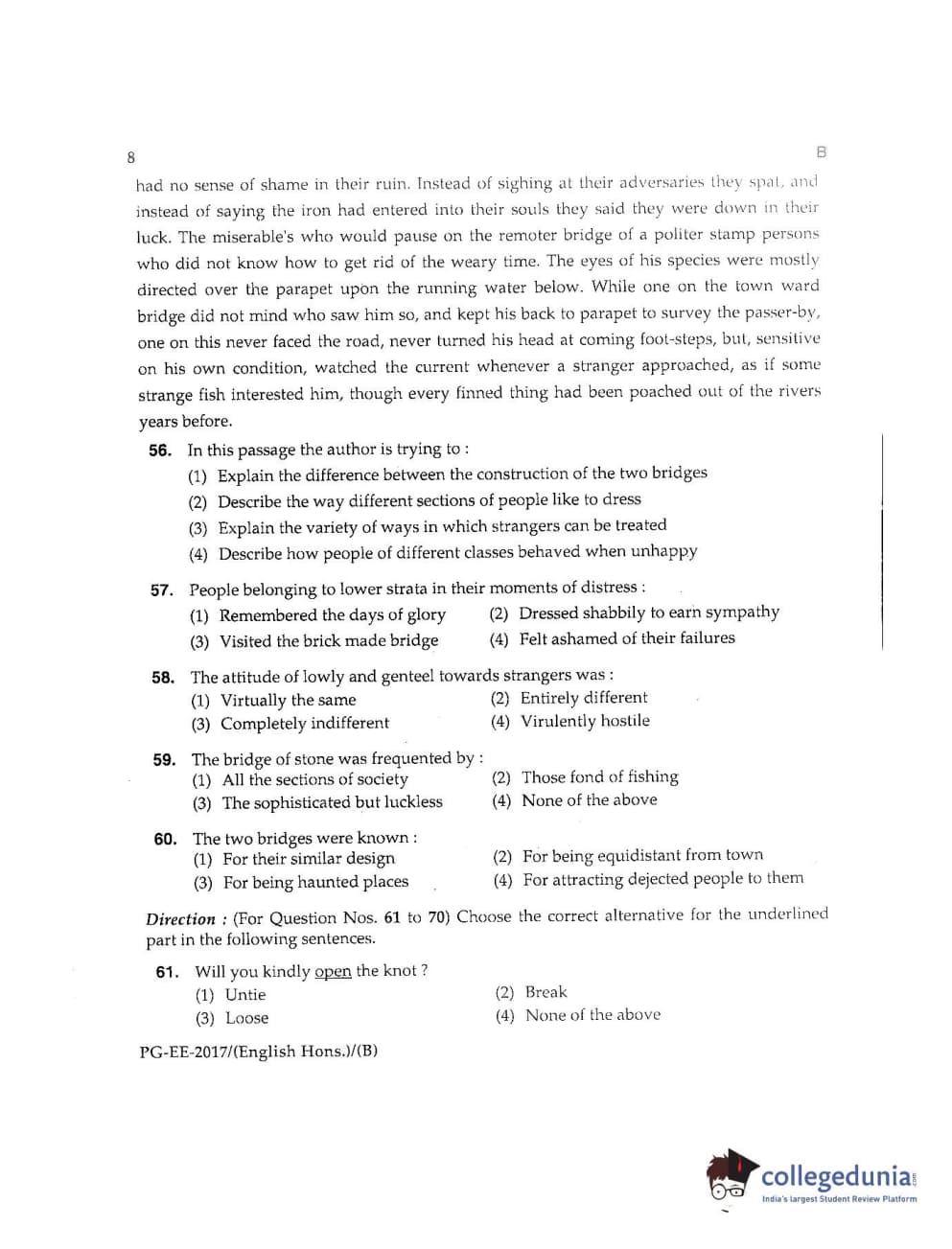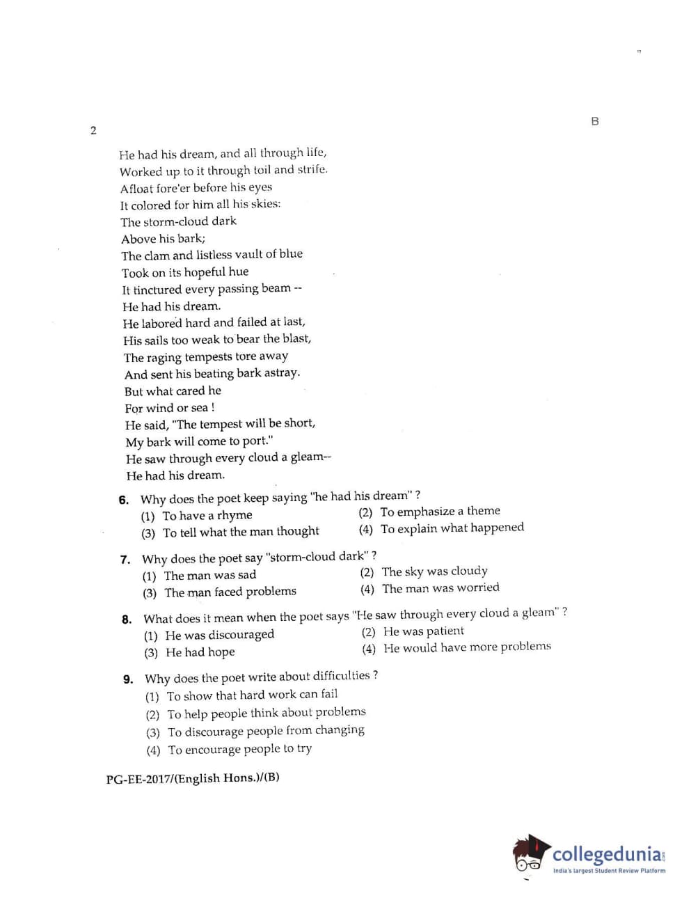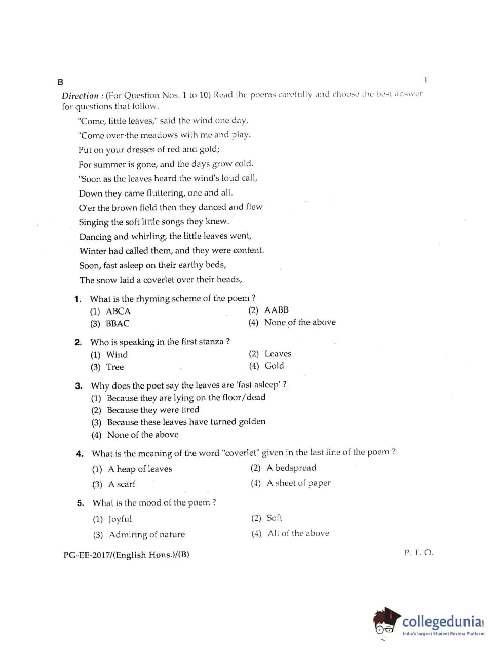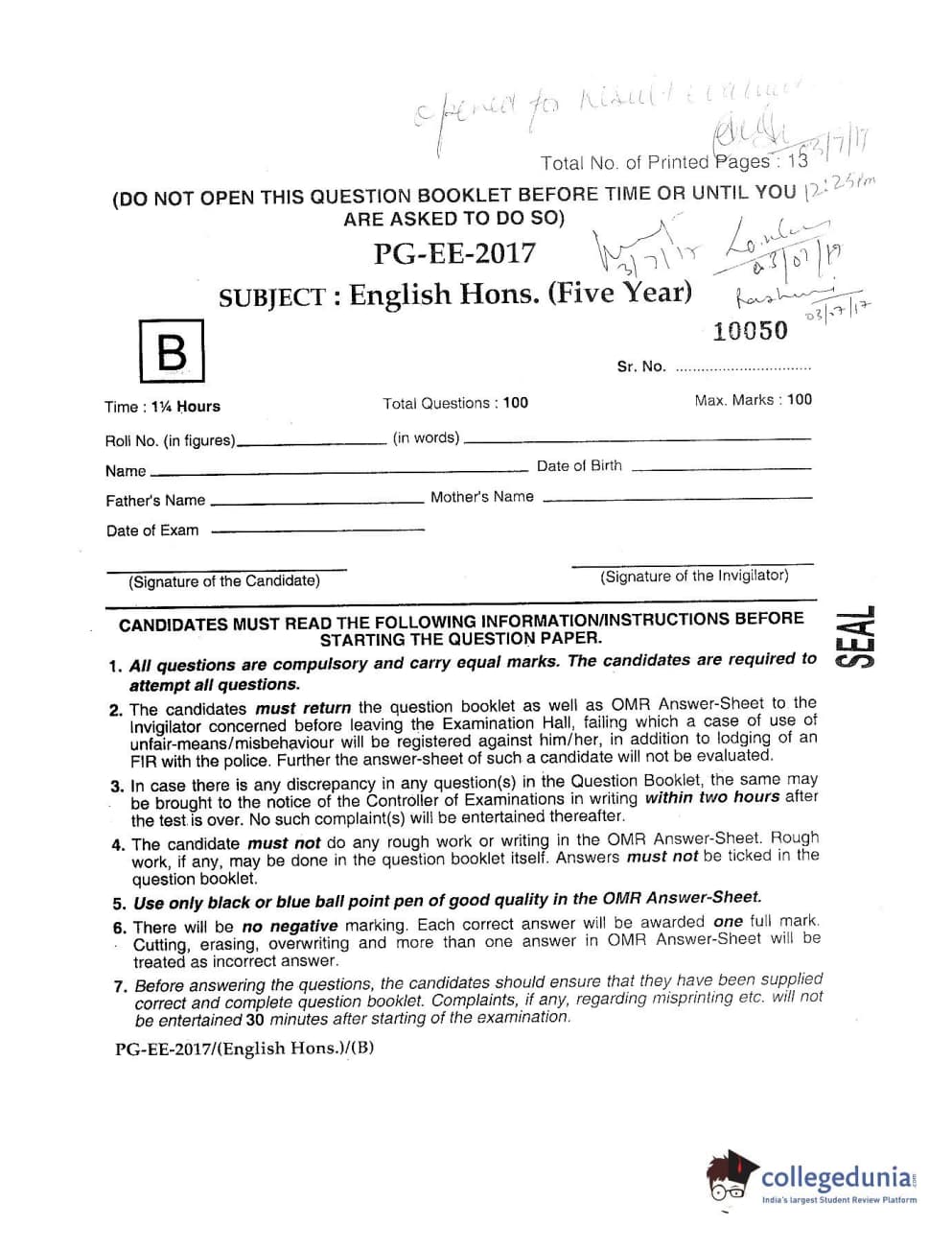 MDUCEE 2017 M.A. (Hons) English 5 Years Integrated Set B Question Paper with Answer Key PDFs