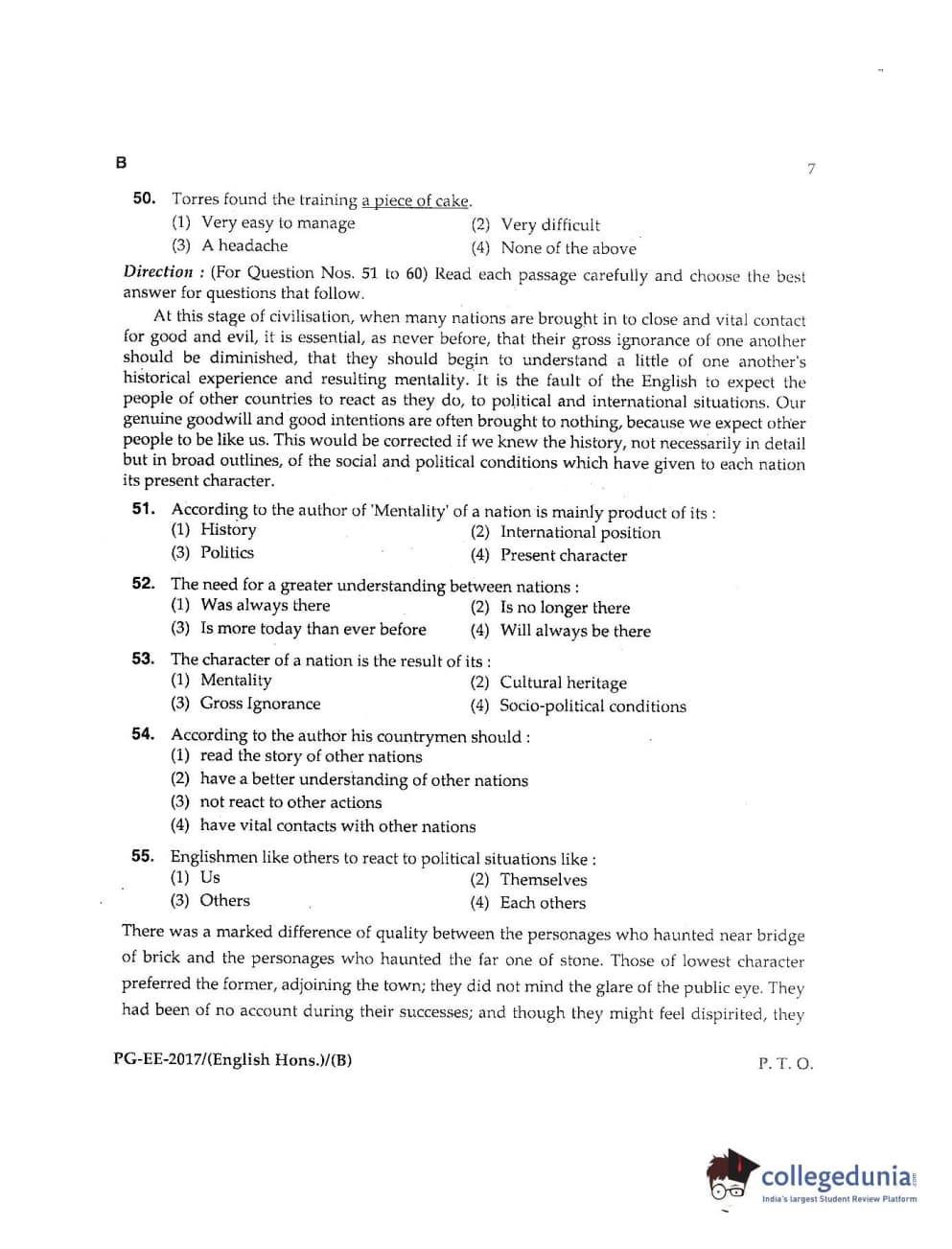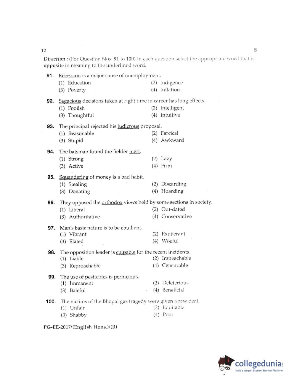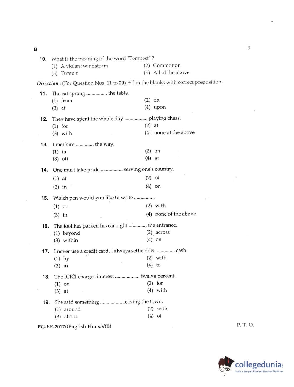 MDUCEE 2017 M.A. (Hons) English 5 Years Integrated Set B Question Paper with Answer Key PDFs