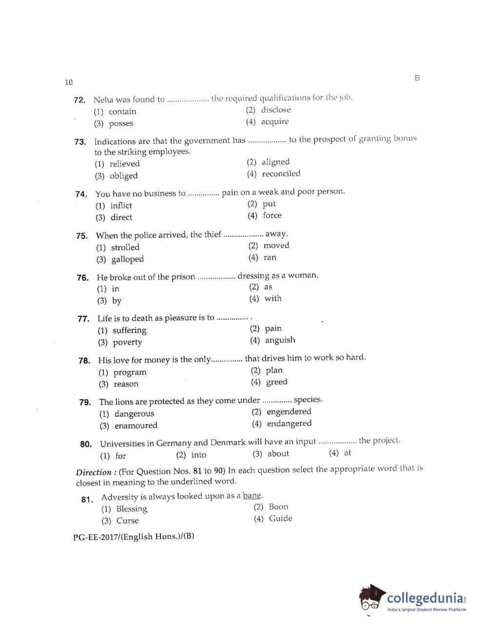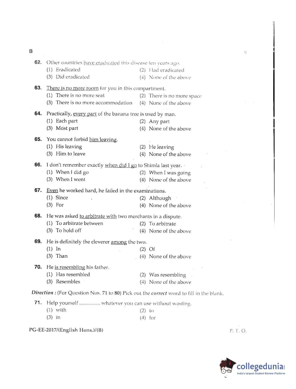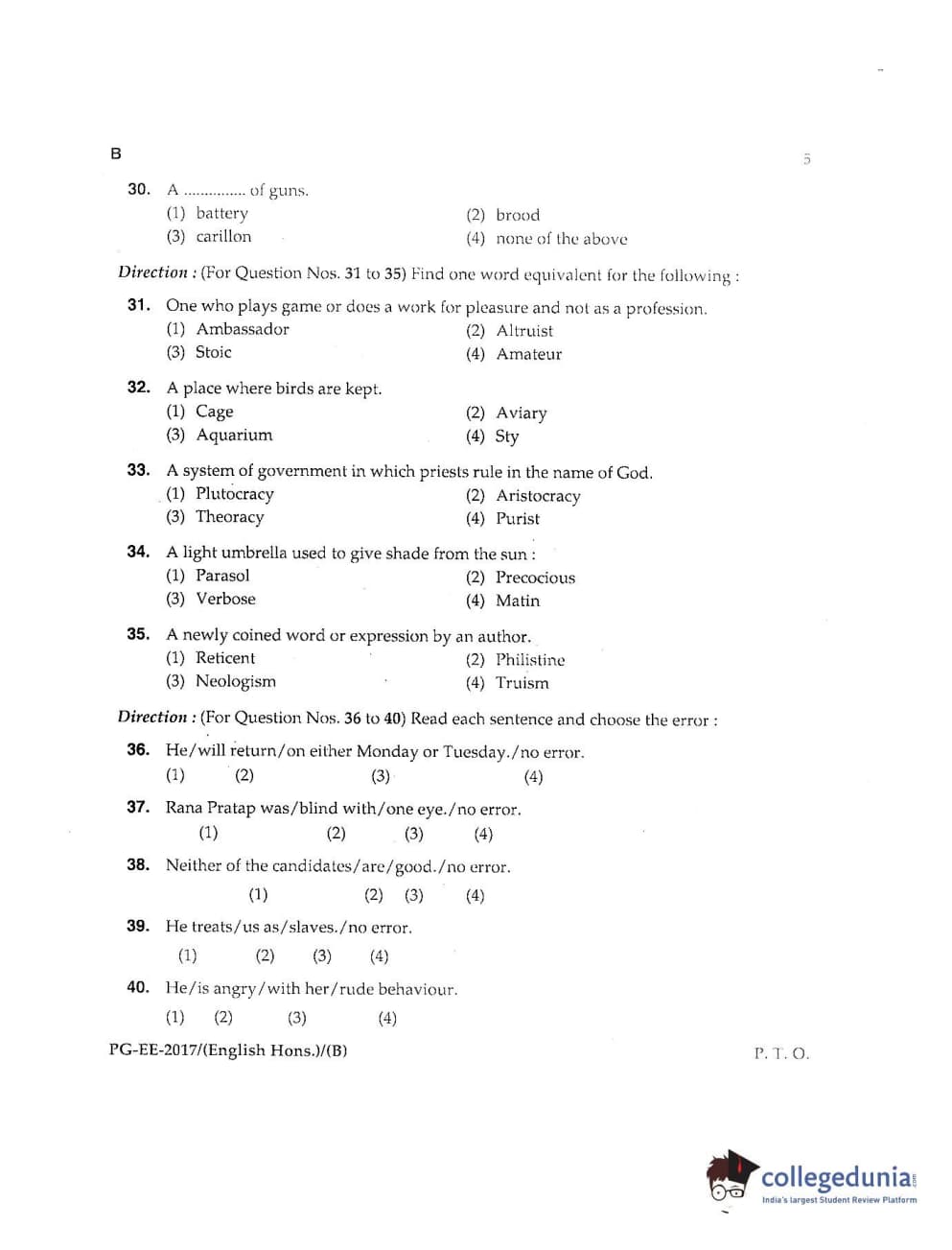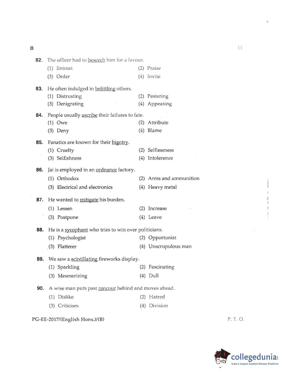 MDUCEE 2017 M.A. (Hons) English 5 Years Integrated Set B Question Paper with Answer Key PDFs