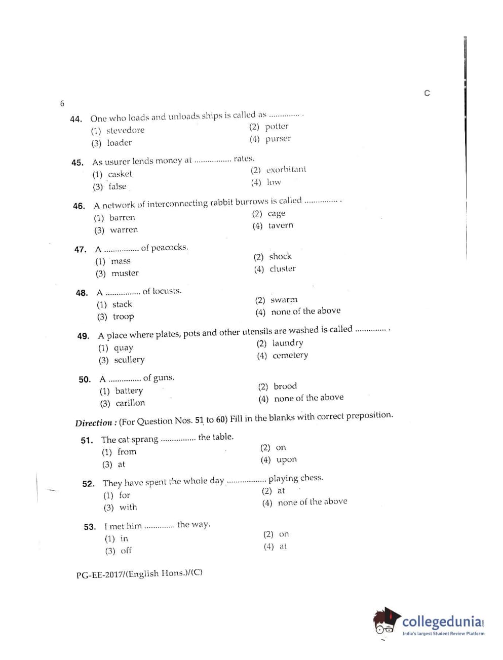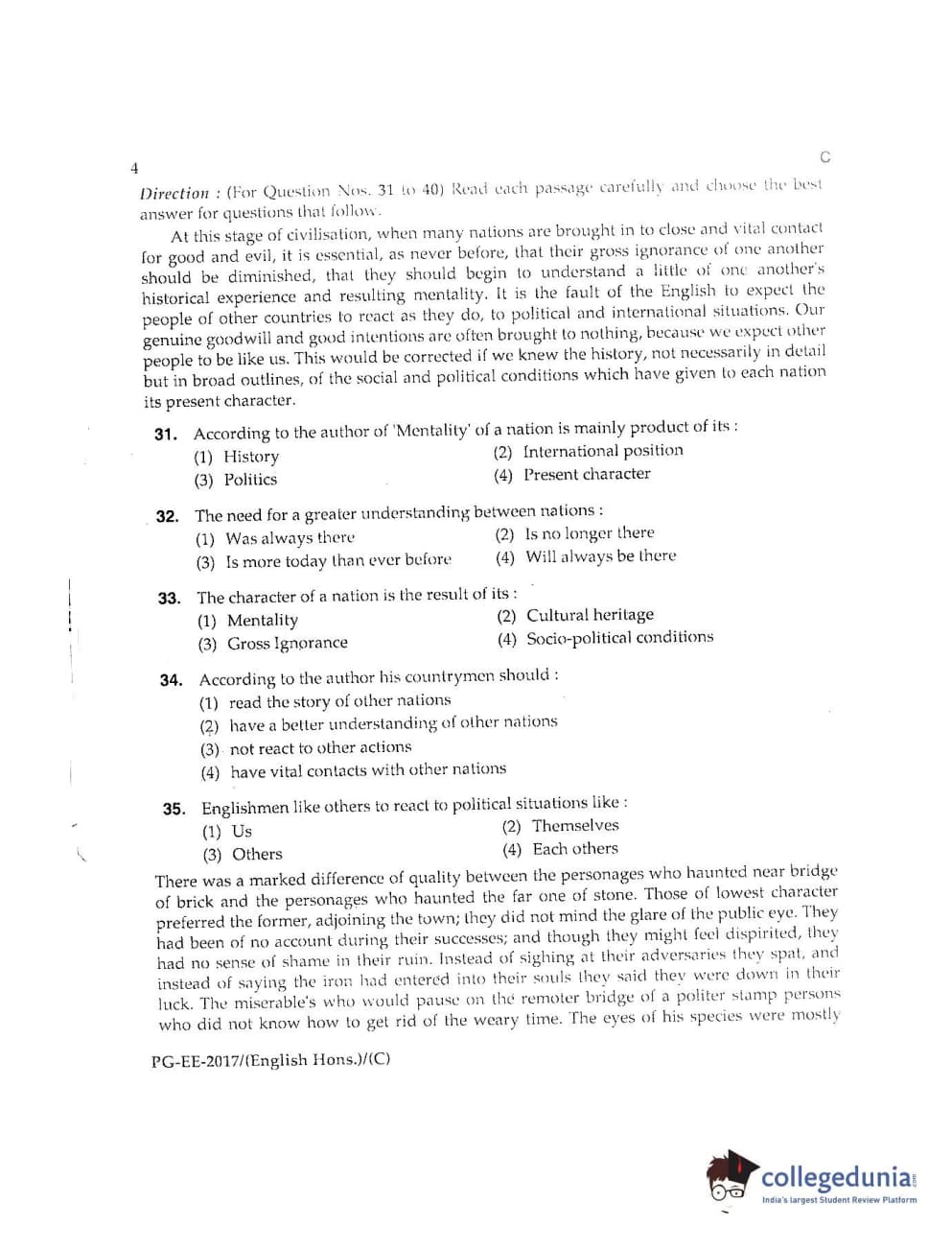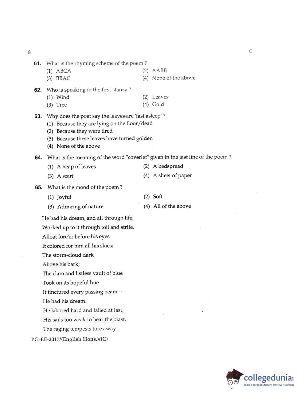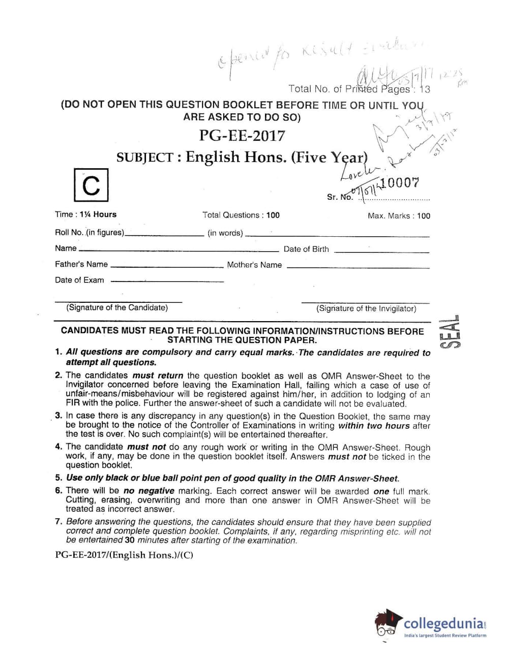 MDUCEE 2017 M.A. (Hons) English 5 Years Integrated Set C Question Paper with Answer Key PDFs