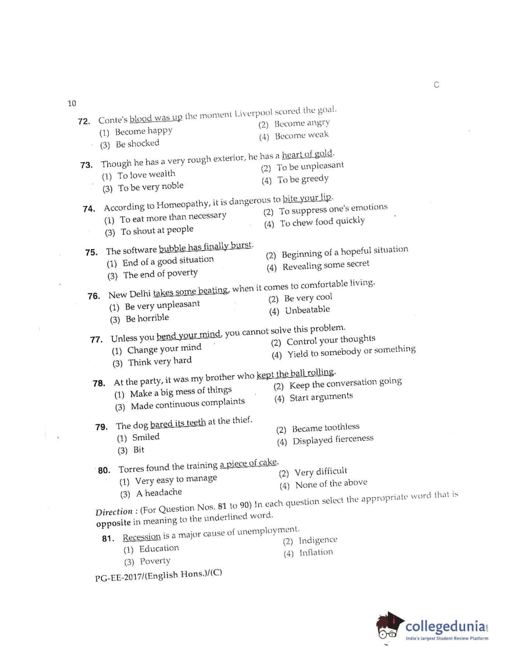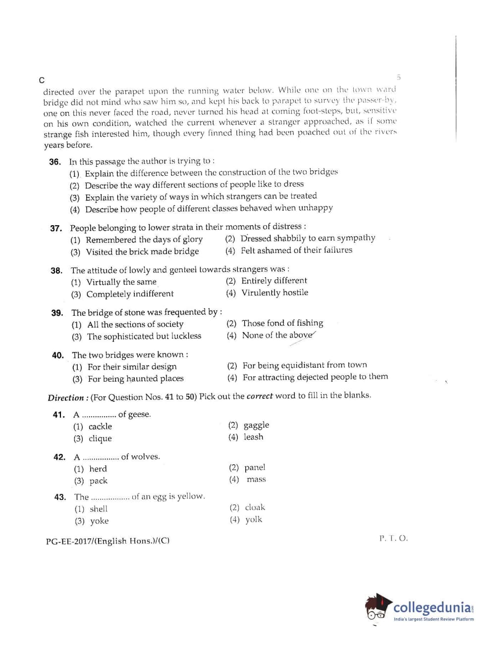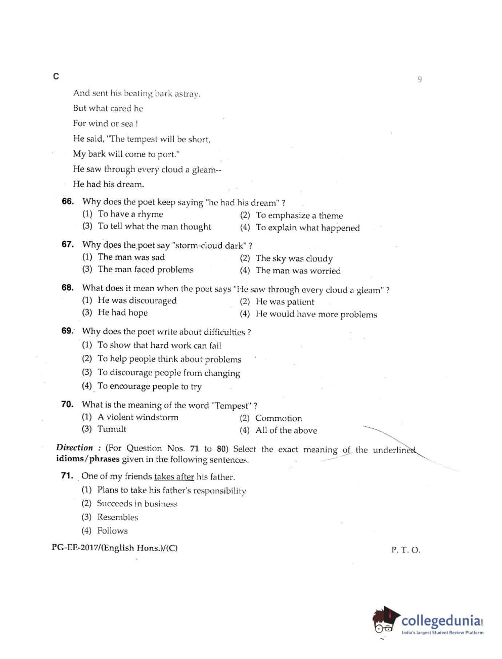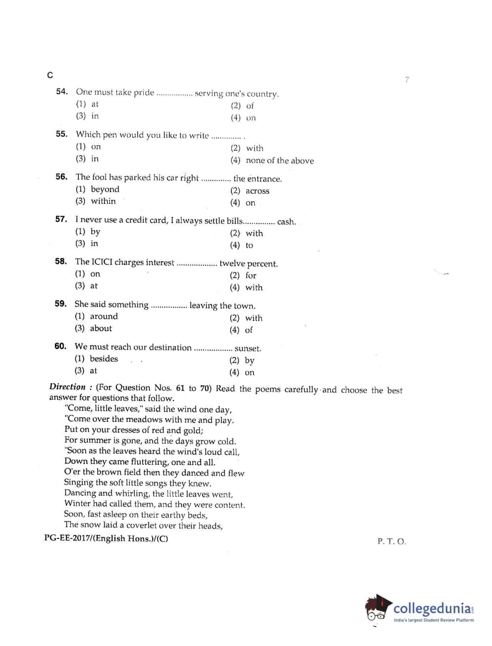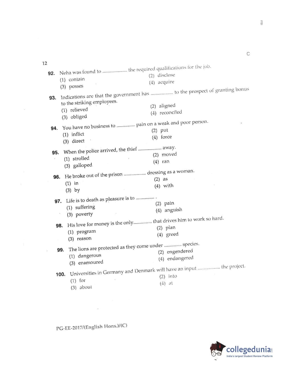 MDUCEE 2017 M.A. (Hons) English 5 Years Integrated Set C Question Paper with Answer Key PDFs