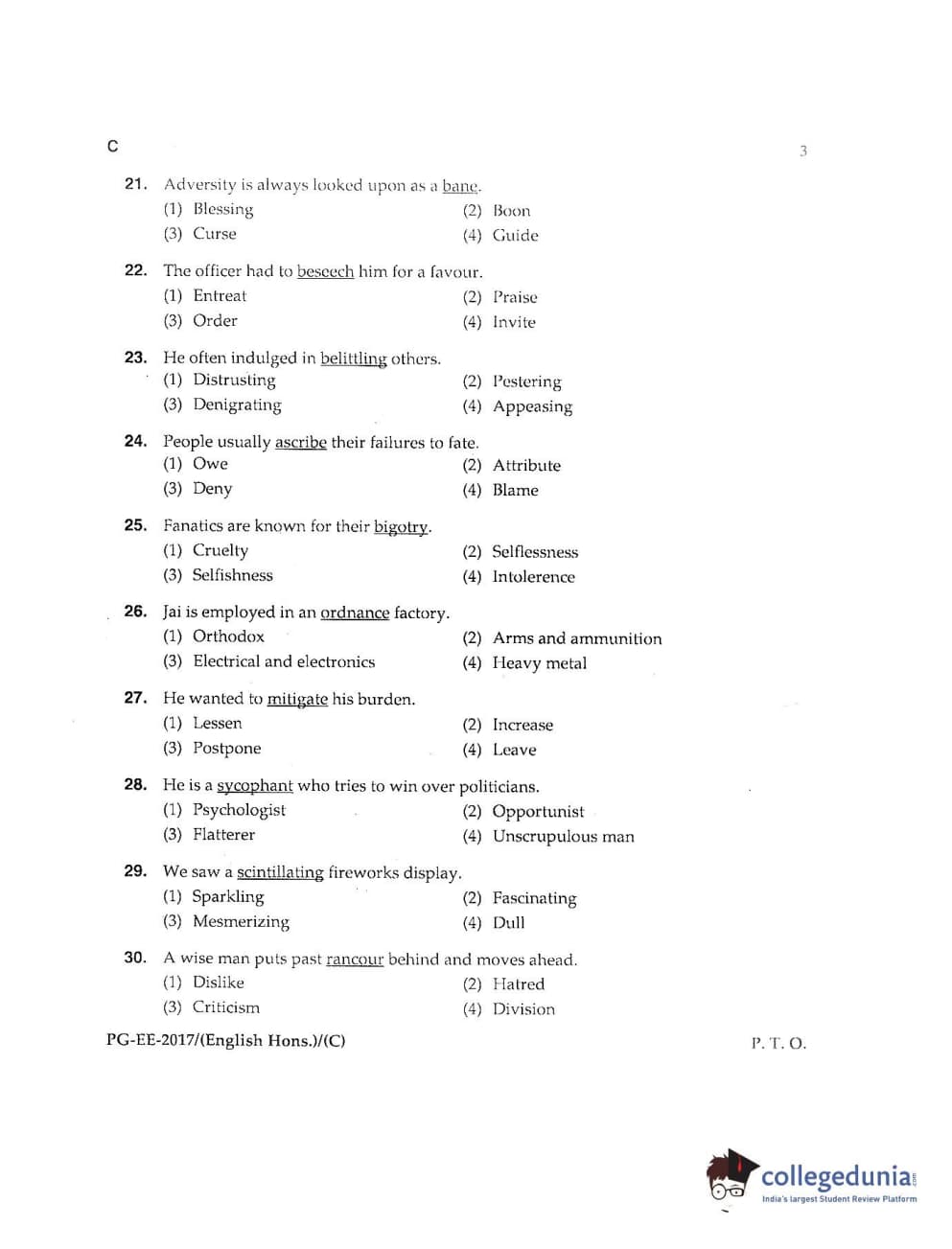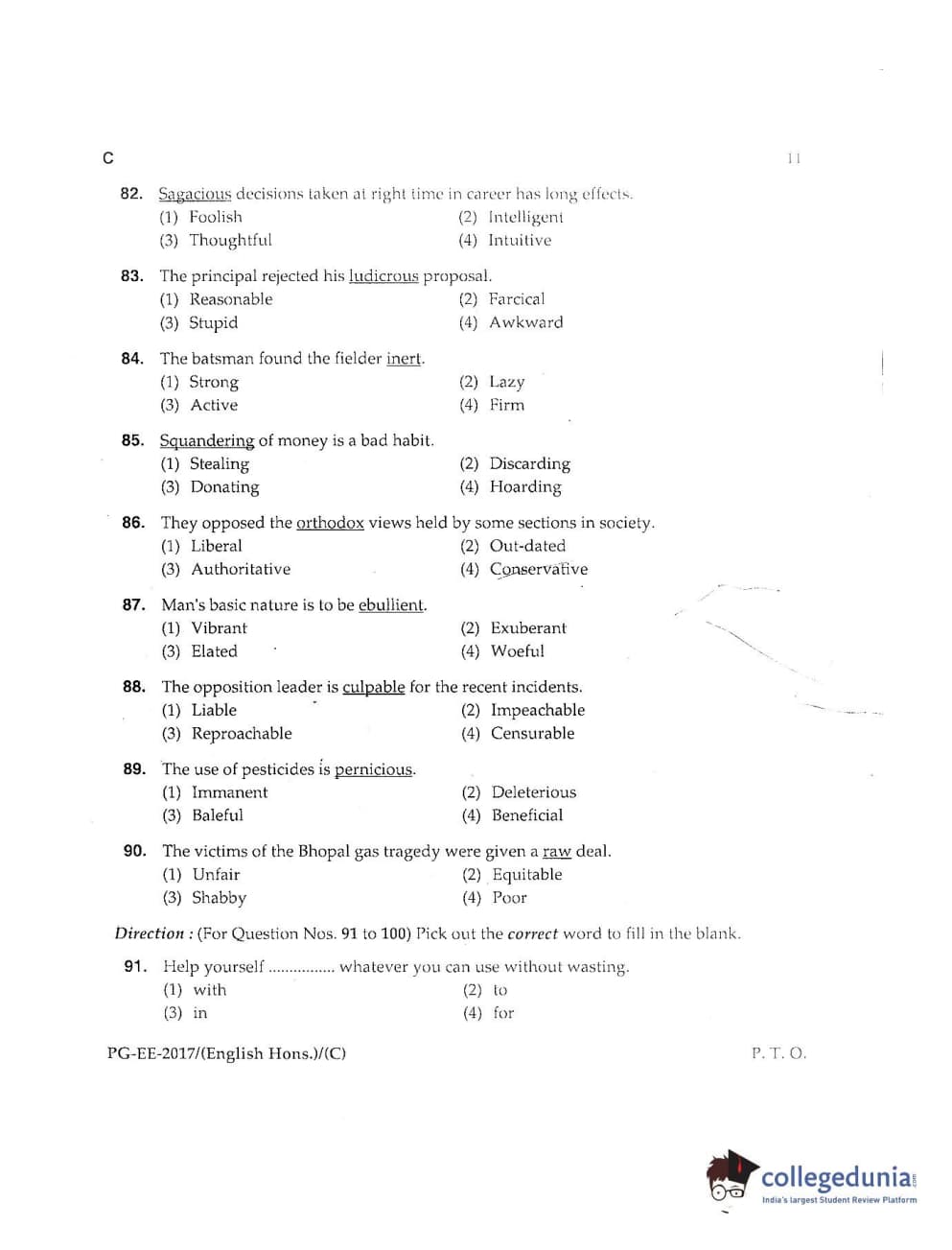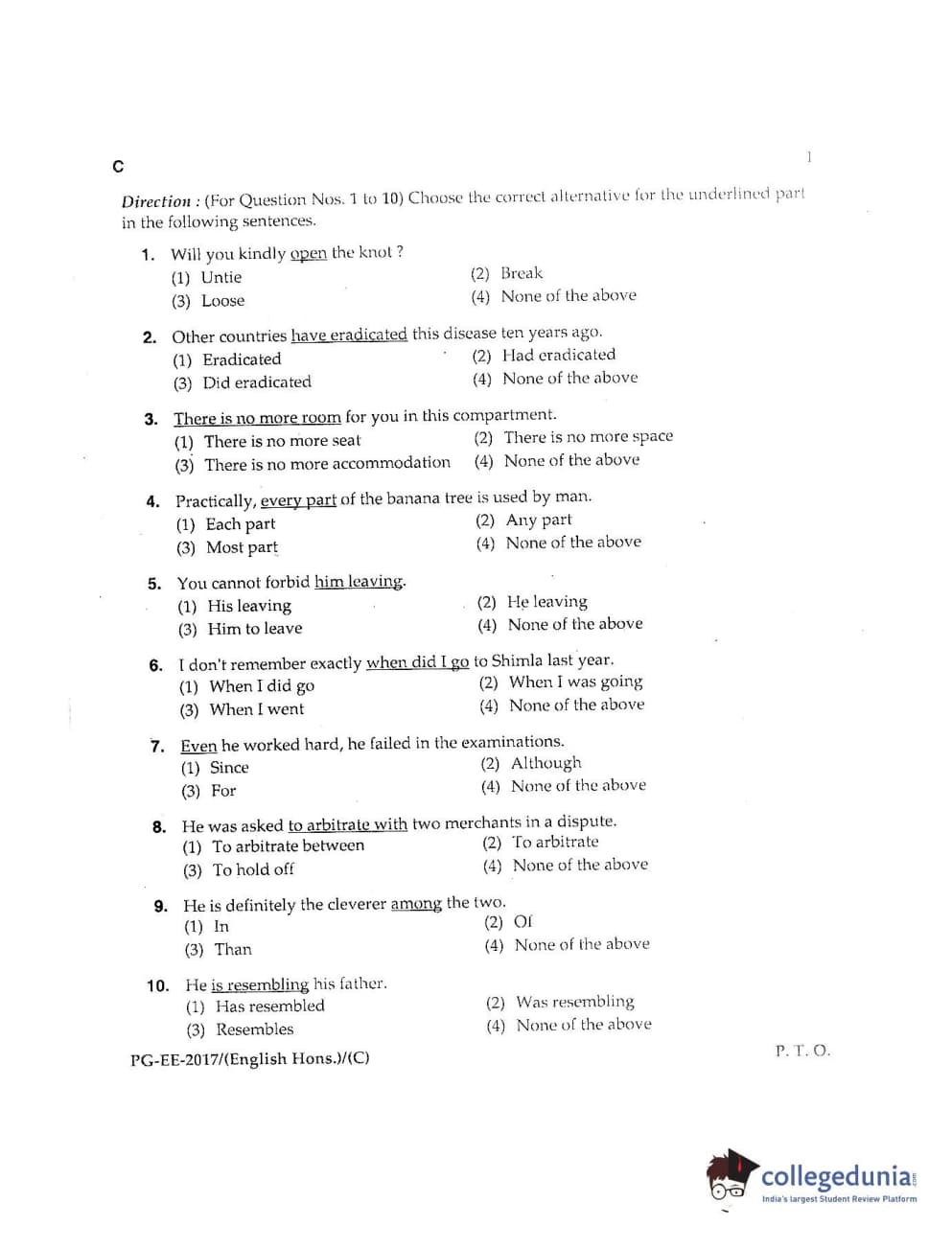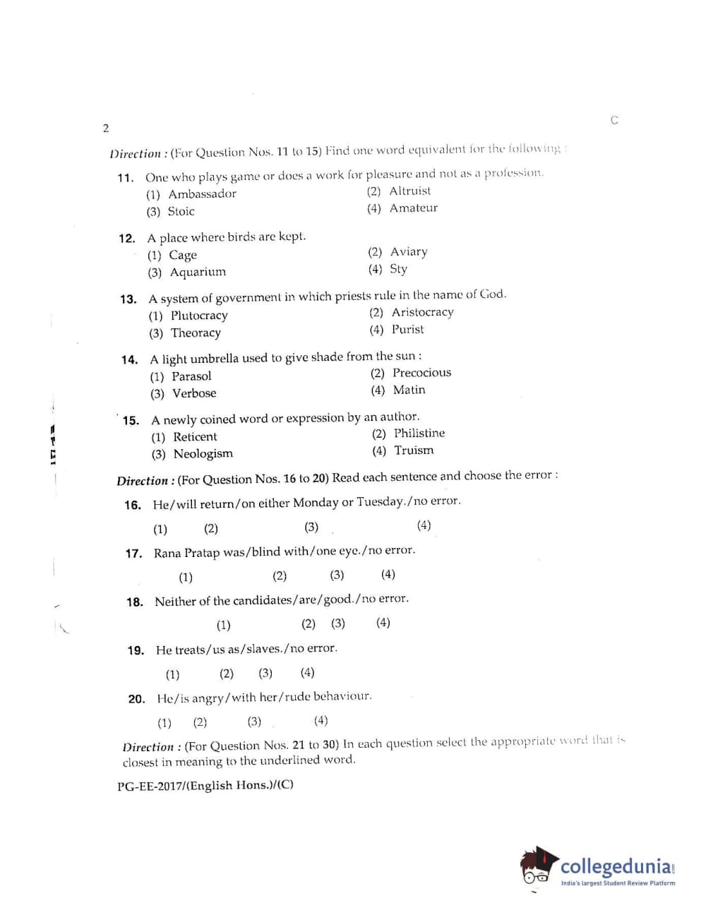 MDUCEE 2017 M.A. (Hons) English 5 Years Integrated Set C Question Paper with Answer Key PDFs