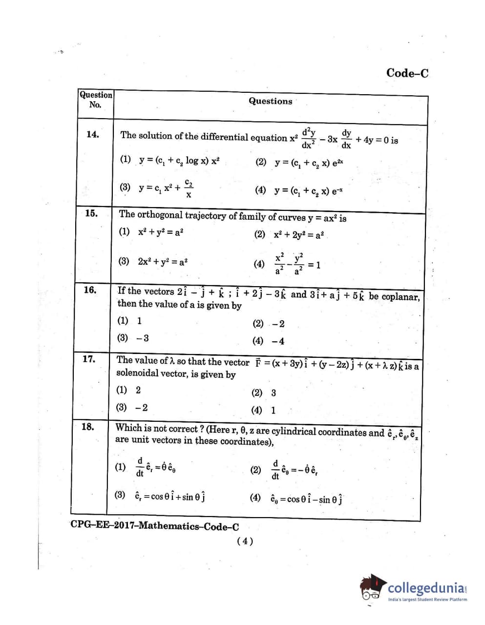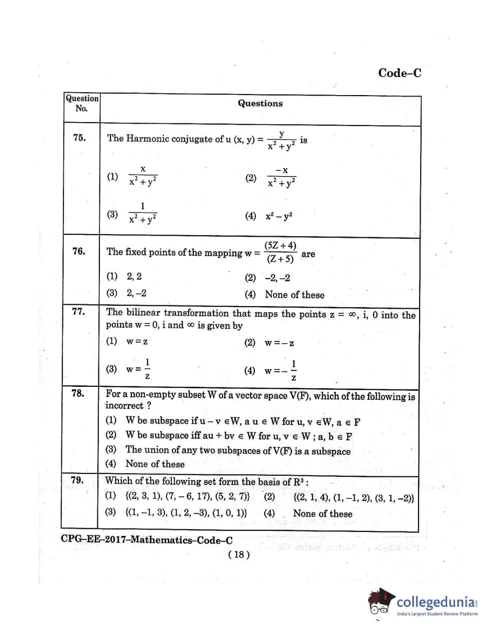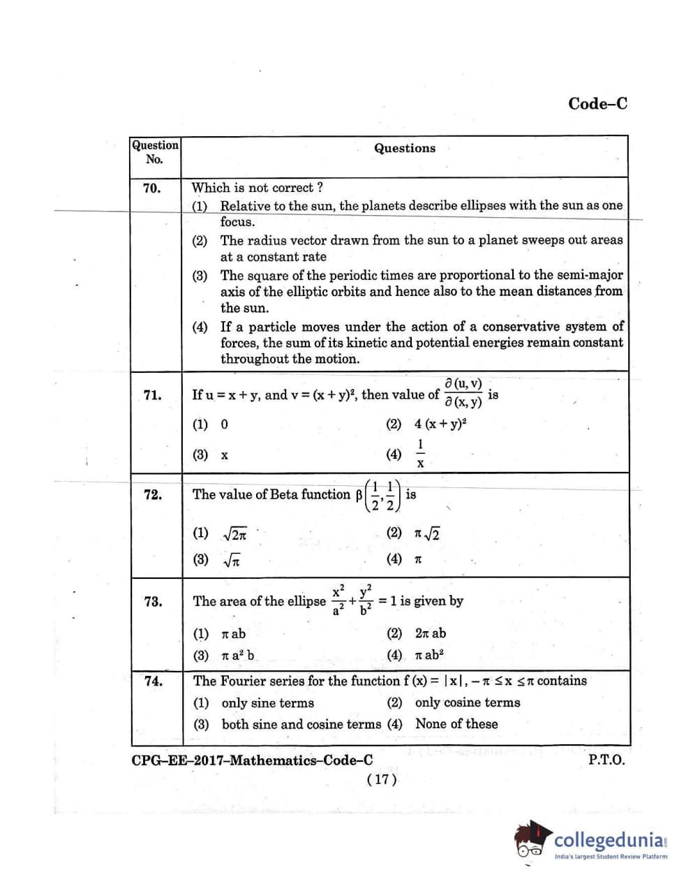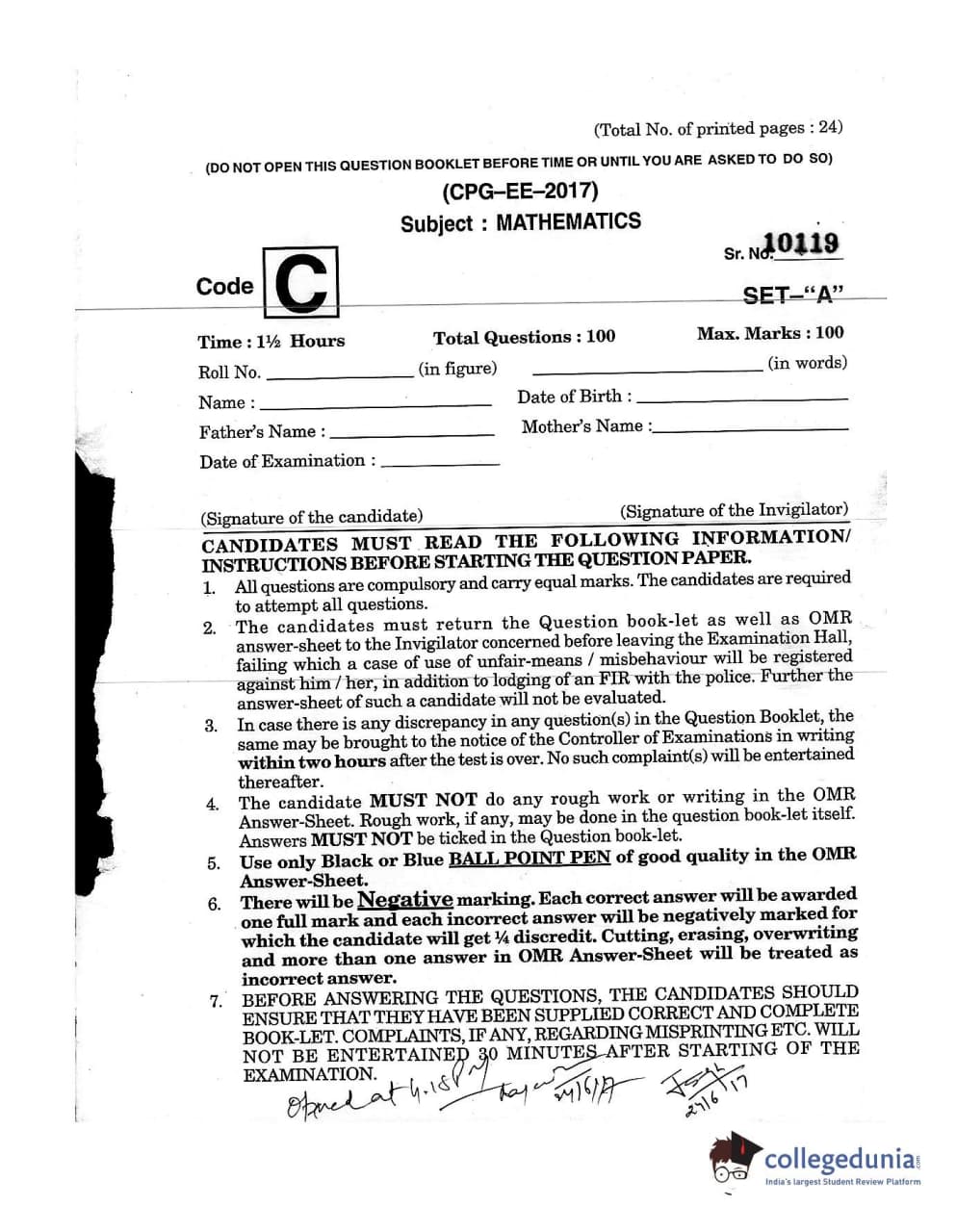 MDUCEE 2017 Mathematics Set C Question Paper with Answer Key PDFs