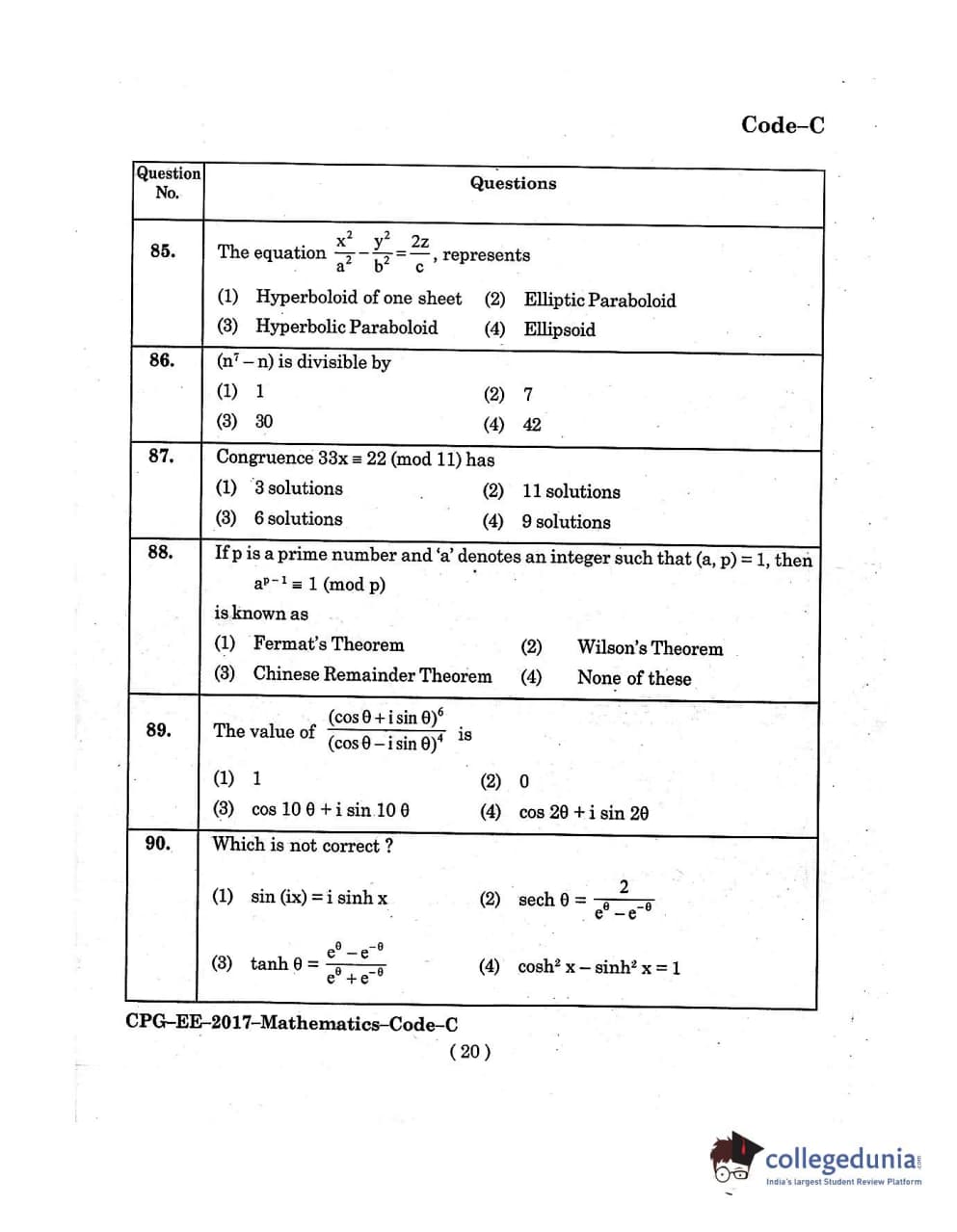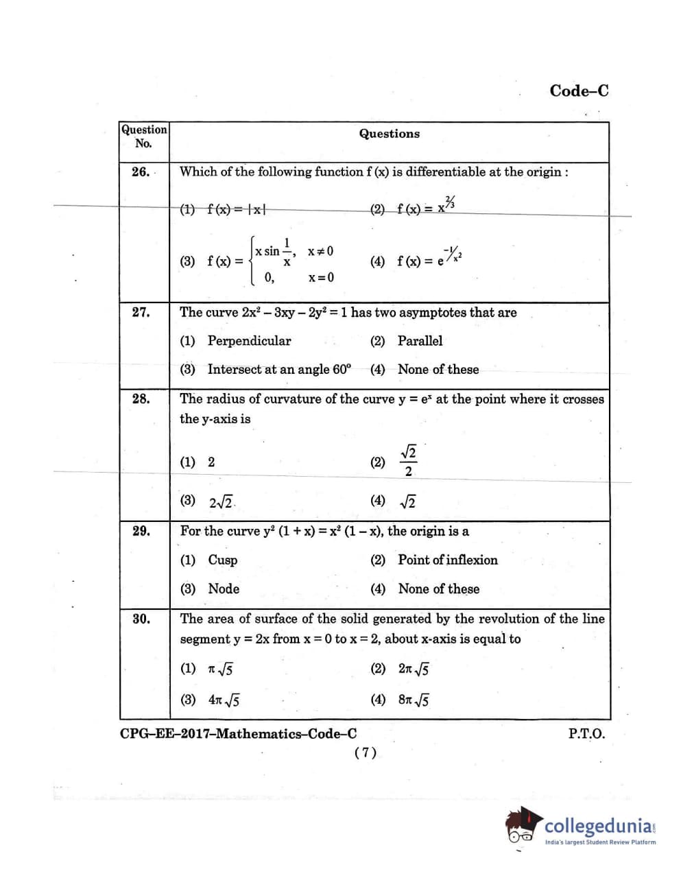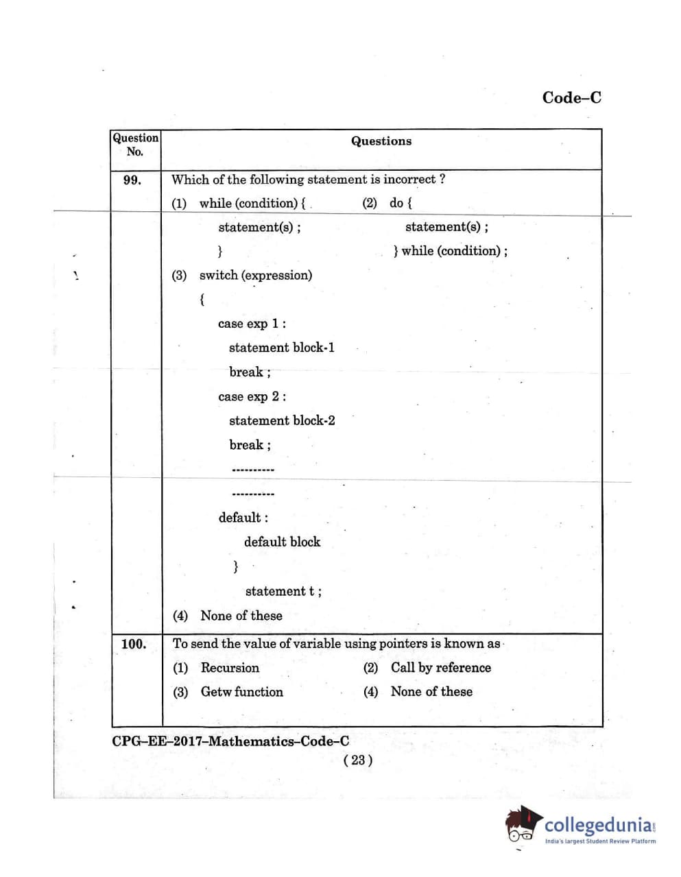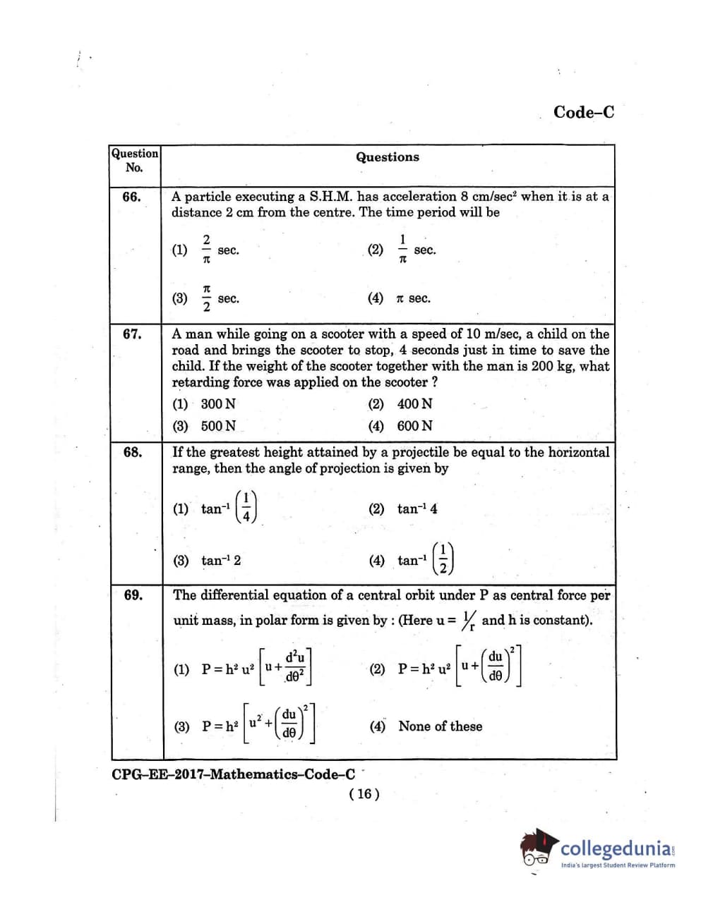 MDUCEE 2017 Mathematics Set C Question Paper with Answer Key PDFs