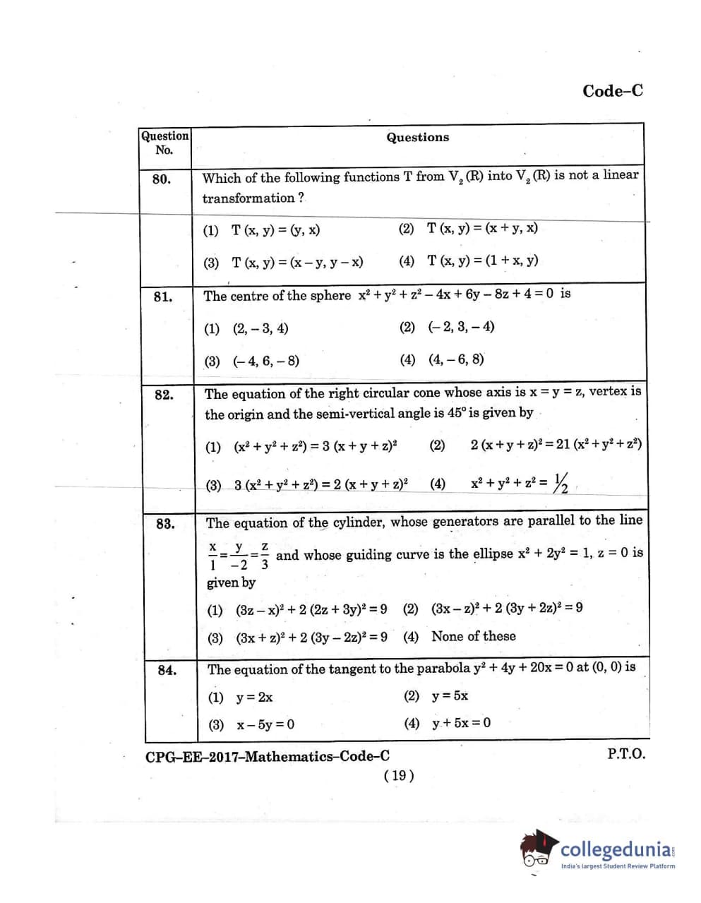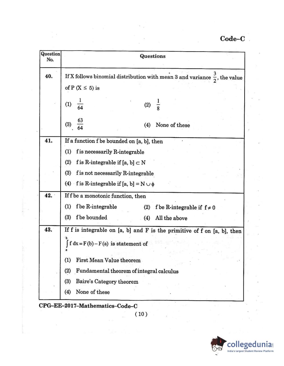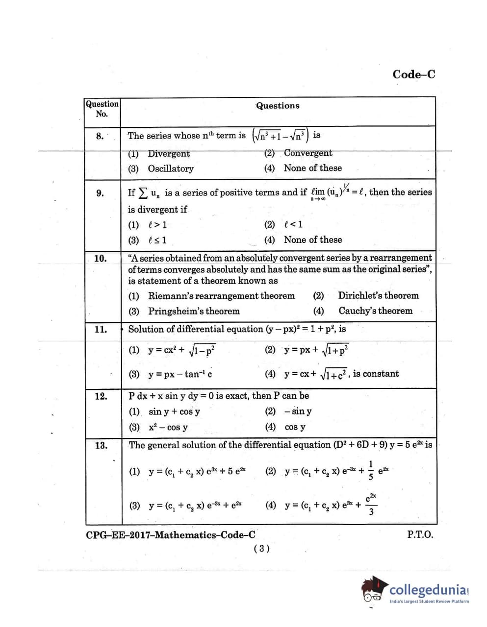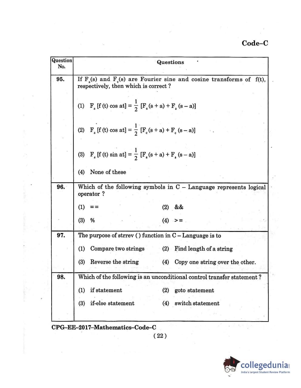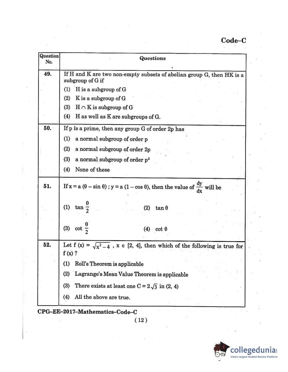 MDUCEE 2017 Mathematics Set C Question Paper with Answer Key PDFs