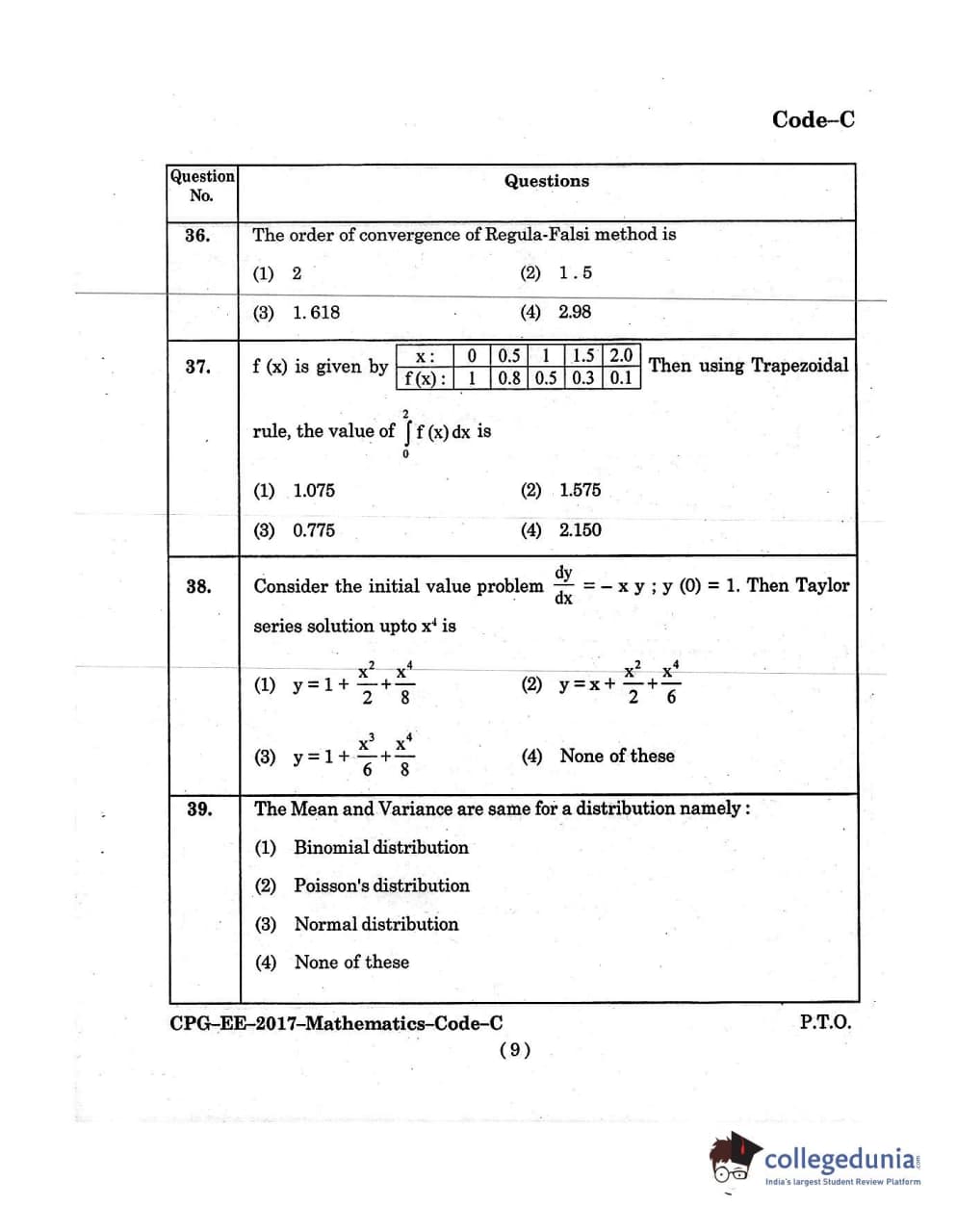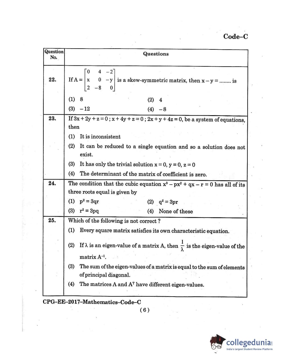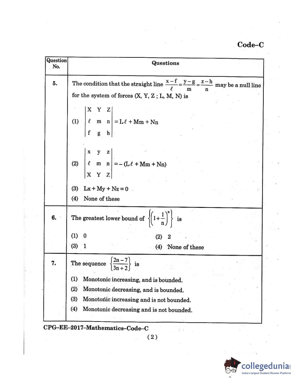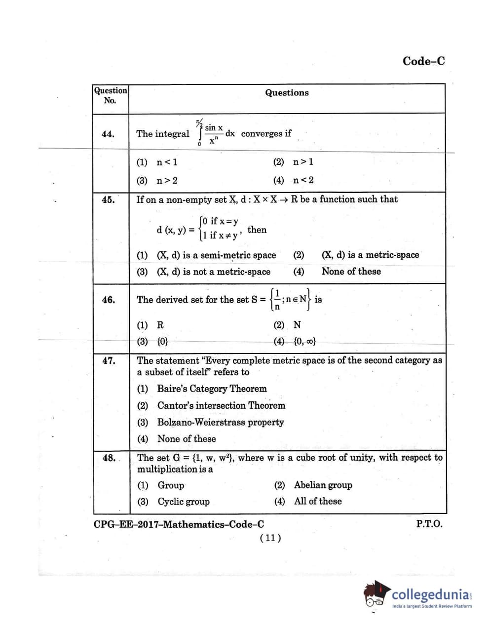 MDUCEE 2017 Mathematics Set C Question Paper with Answer Key PDFs