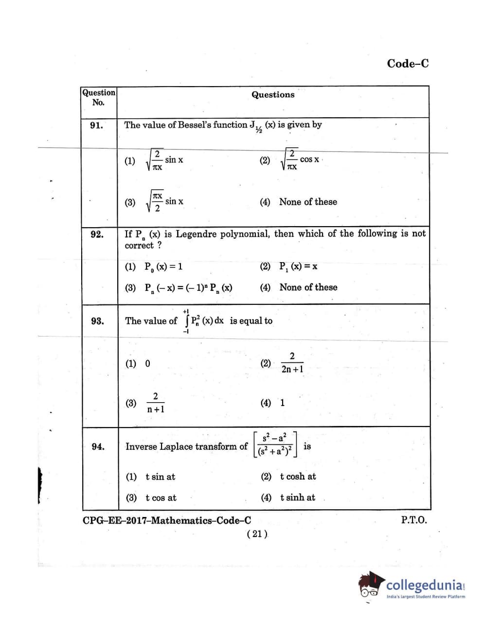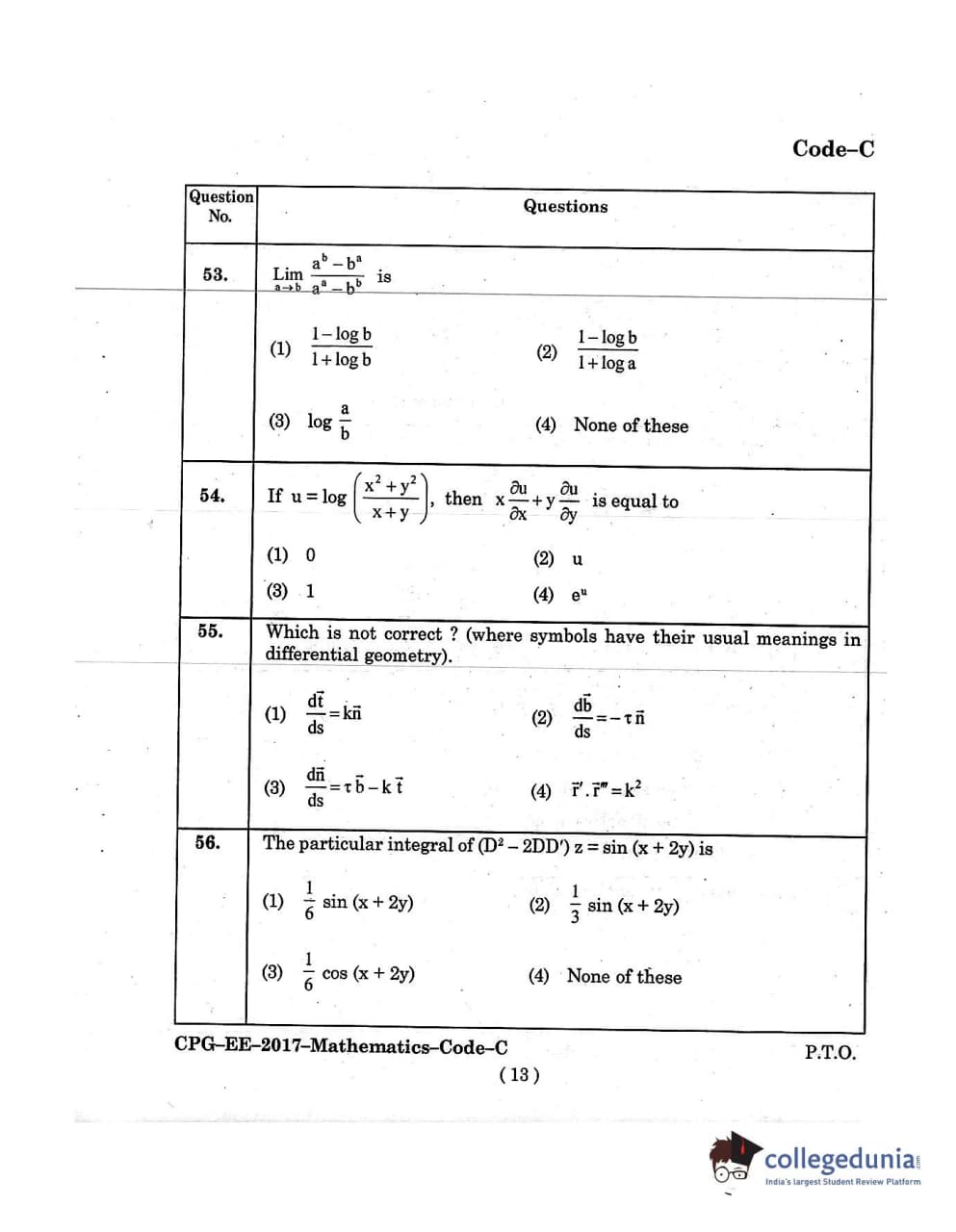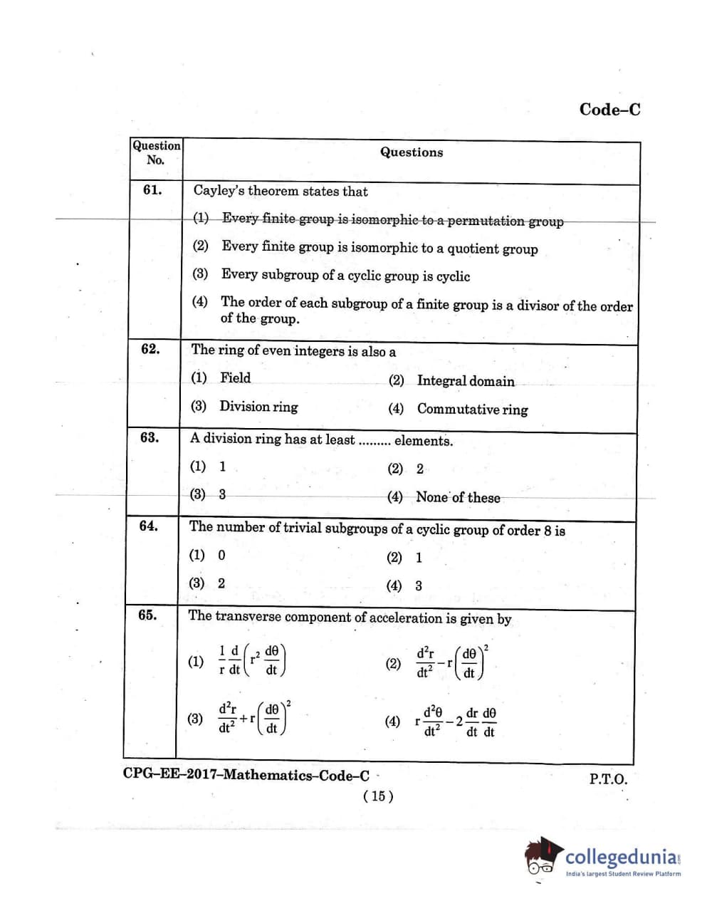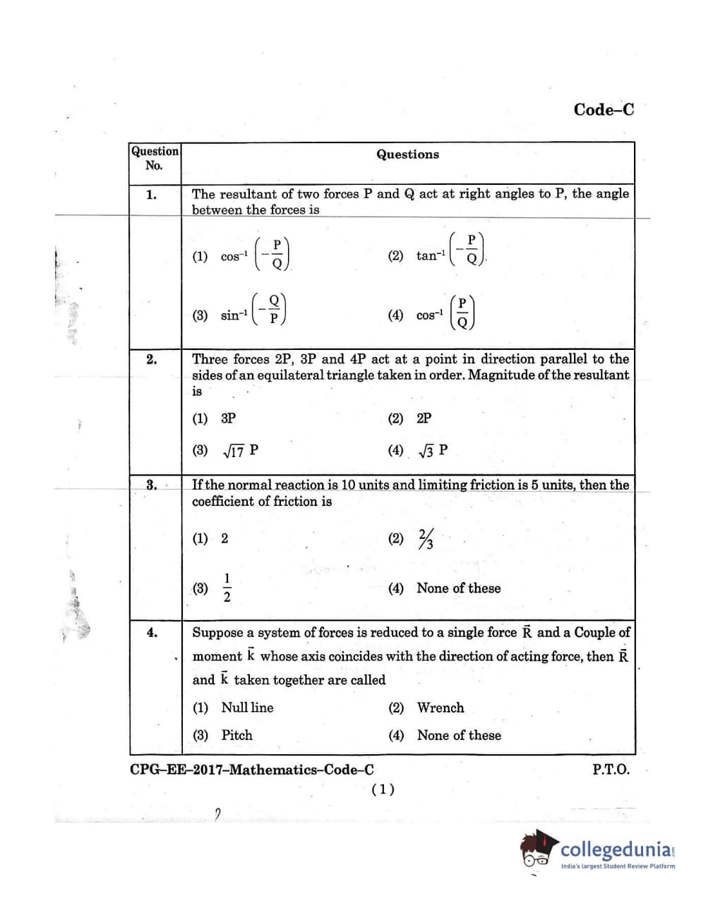 MDUCEE 2017 Mathematics Set C Question Paper with Answer Key PDFs