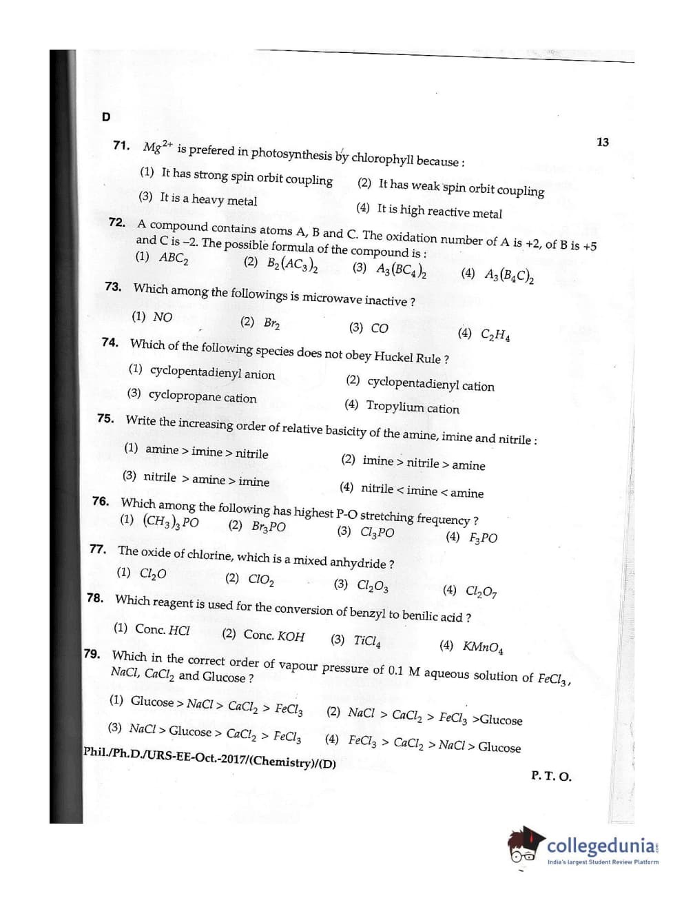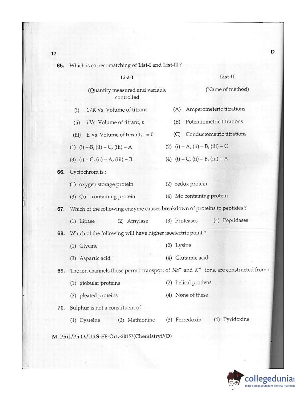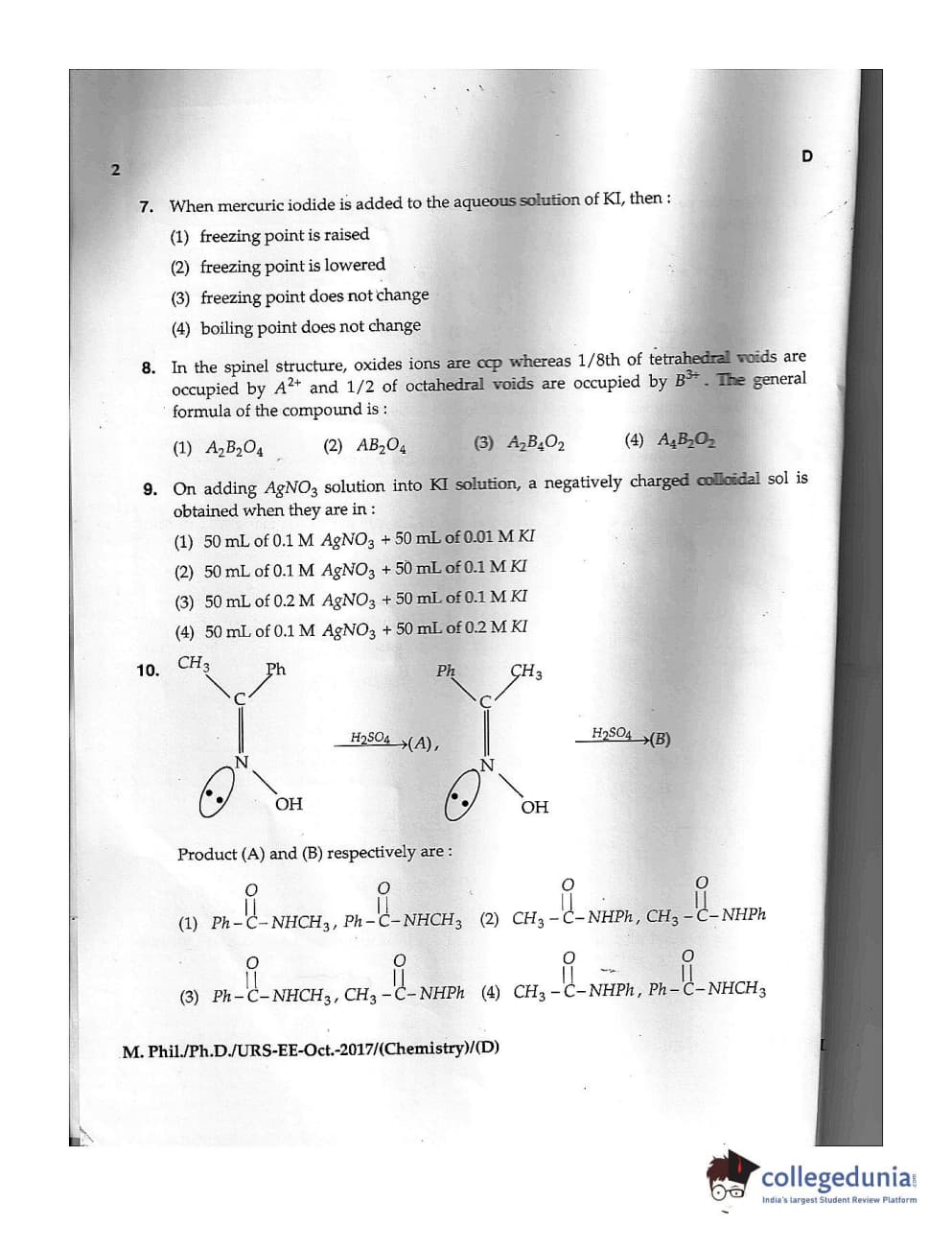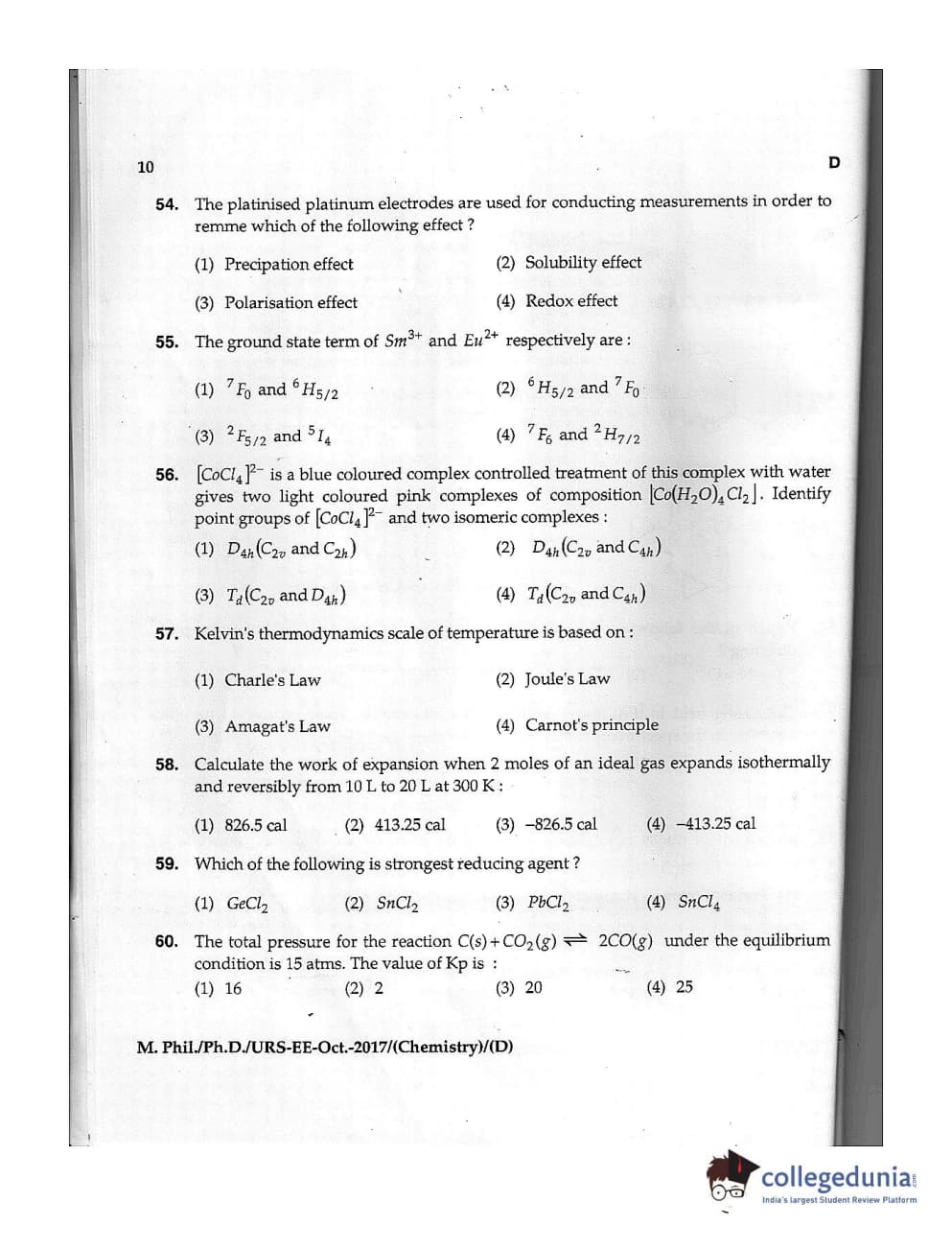 MDUCEE 2017 M.Phil./Ph.D./URS Chemistry Set D Question Paper with Answer Key PDFs