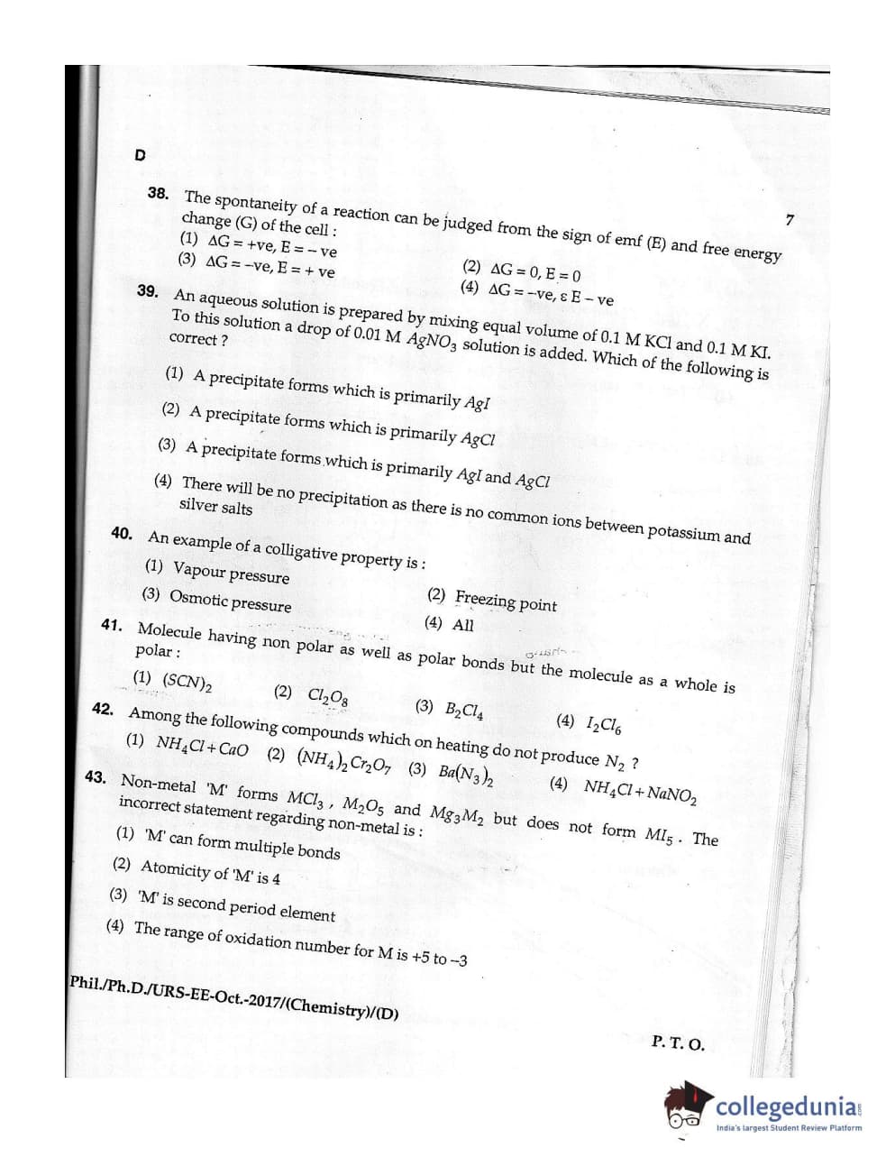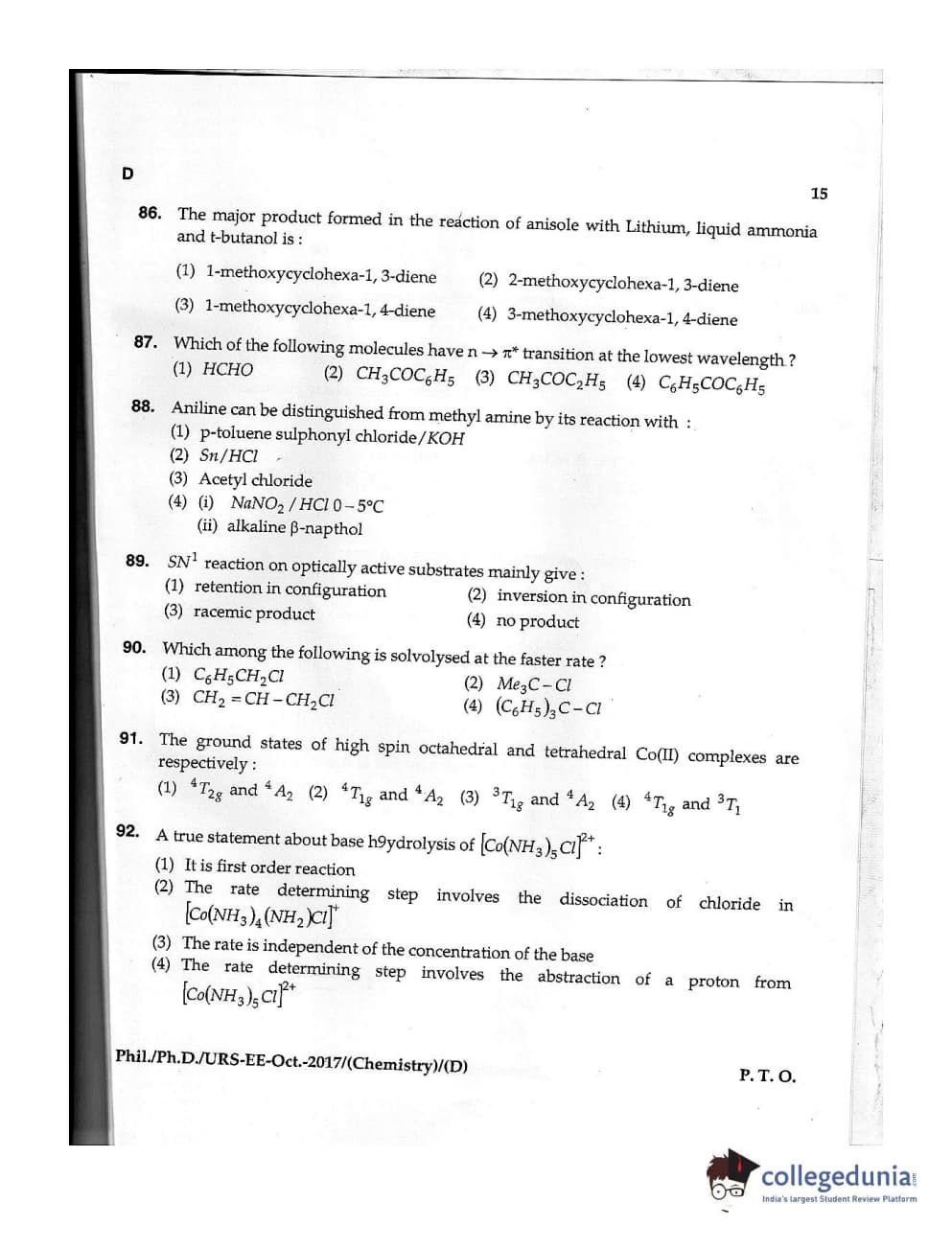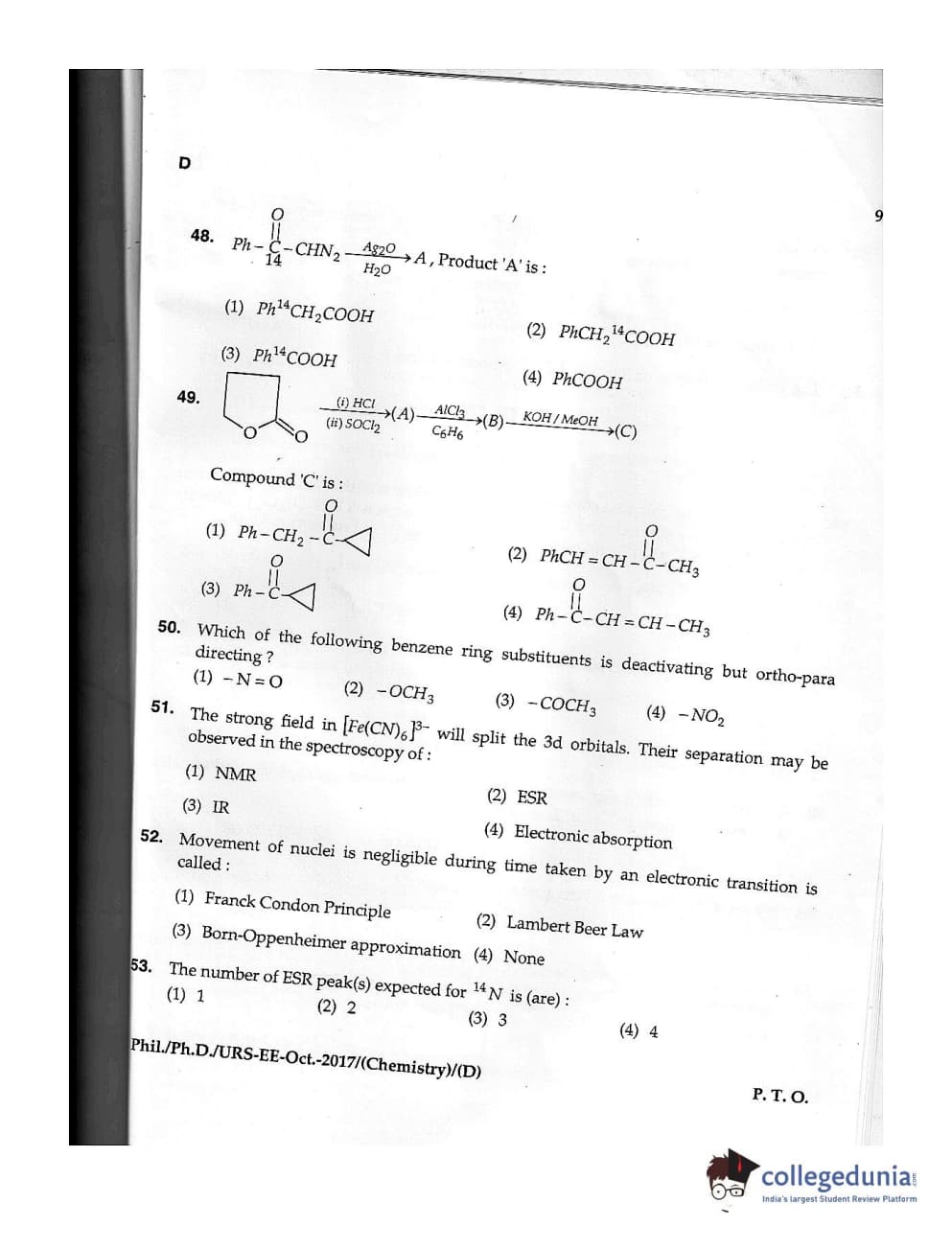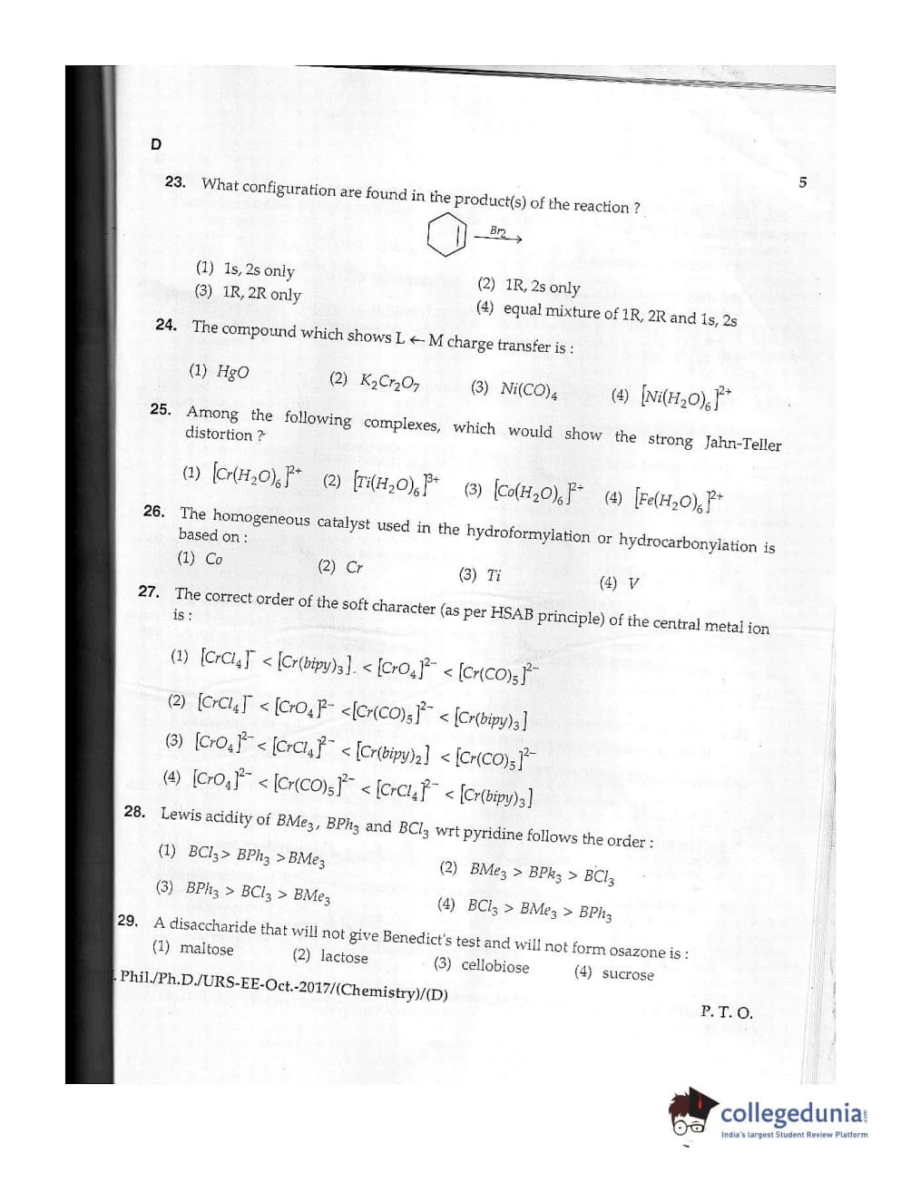 MDUCEE 2017 M.Phil./Ph.D./URS Chemistry Set D Question Paper with Answer Key PDFs
