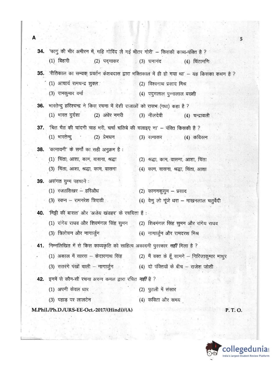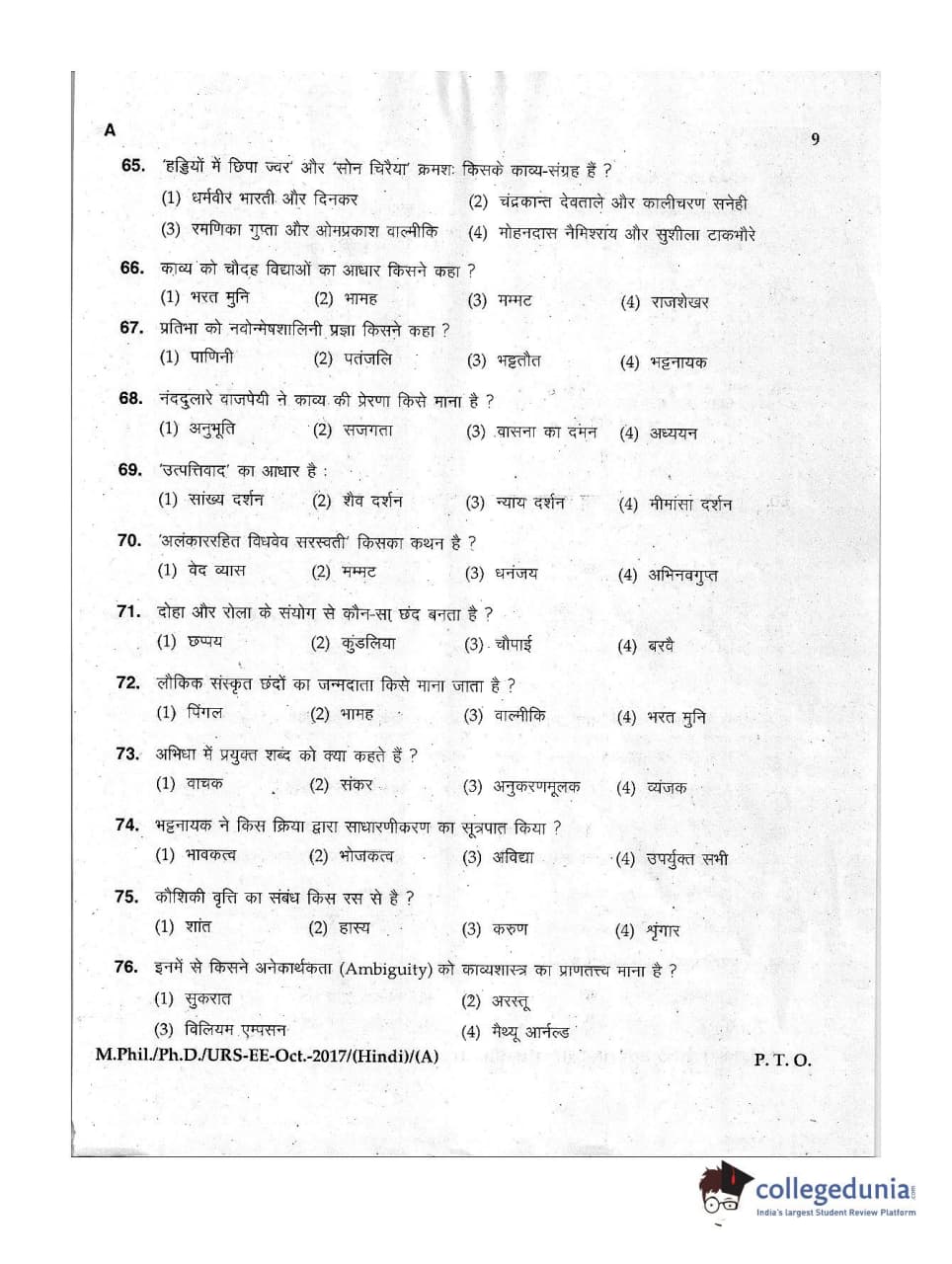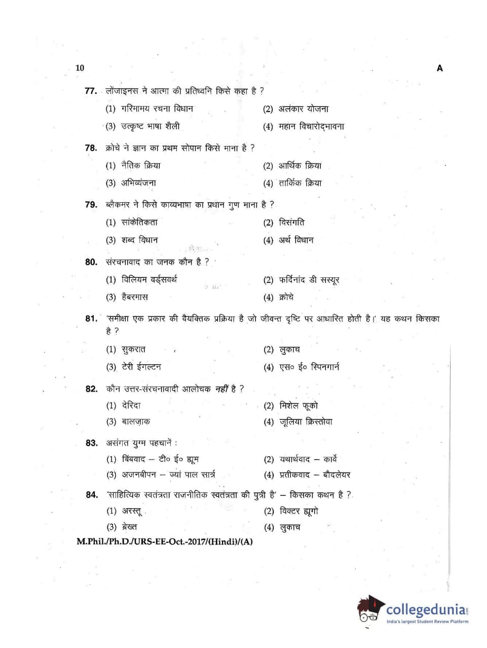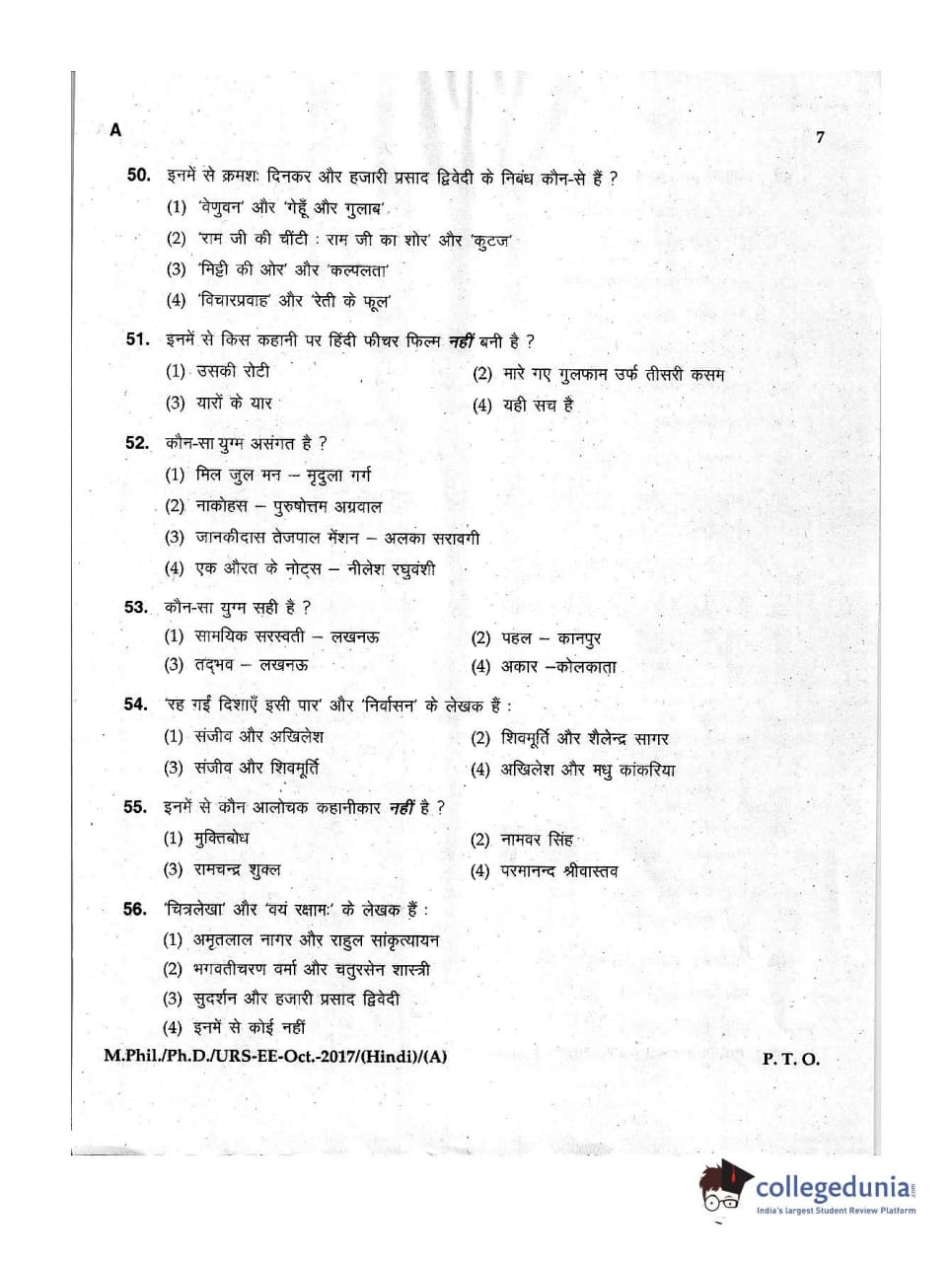MDUCEE 2017 M.Phil./Ph.D./URS Hindi Set A Question Paper with Answer Key PDFs