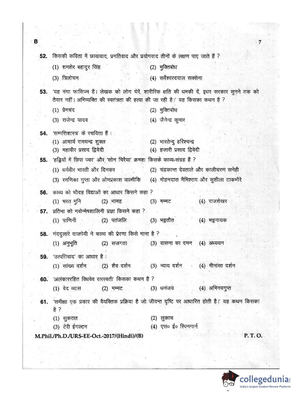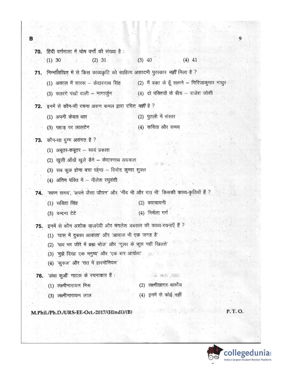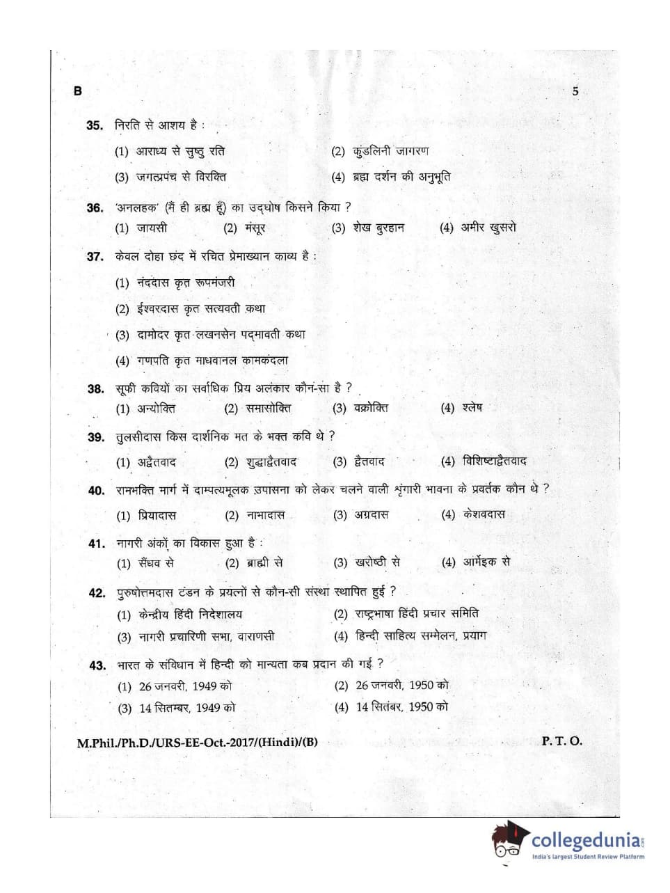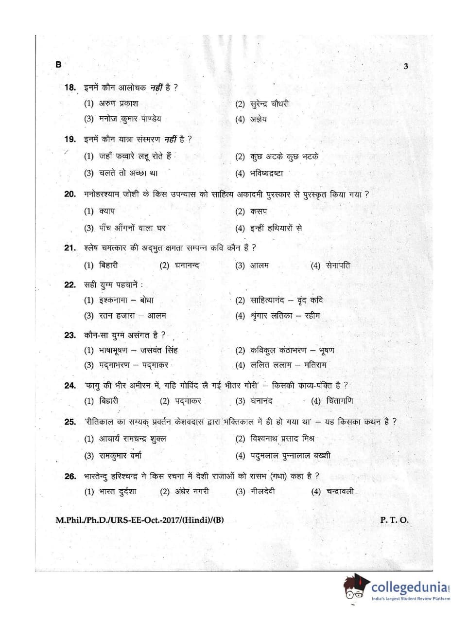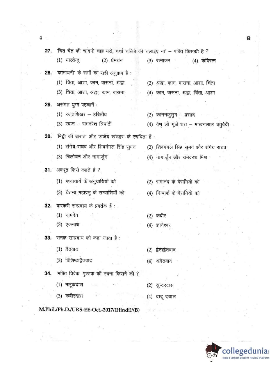 MDUCEE 2017 M.Phil./Ph.D./URS Hindi Set B Question Paper with Answer Key PDFs