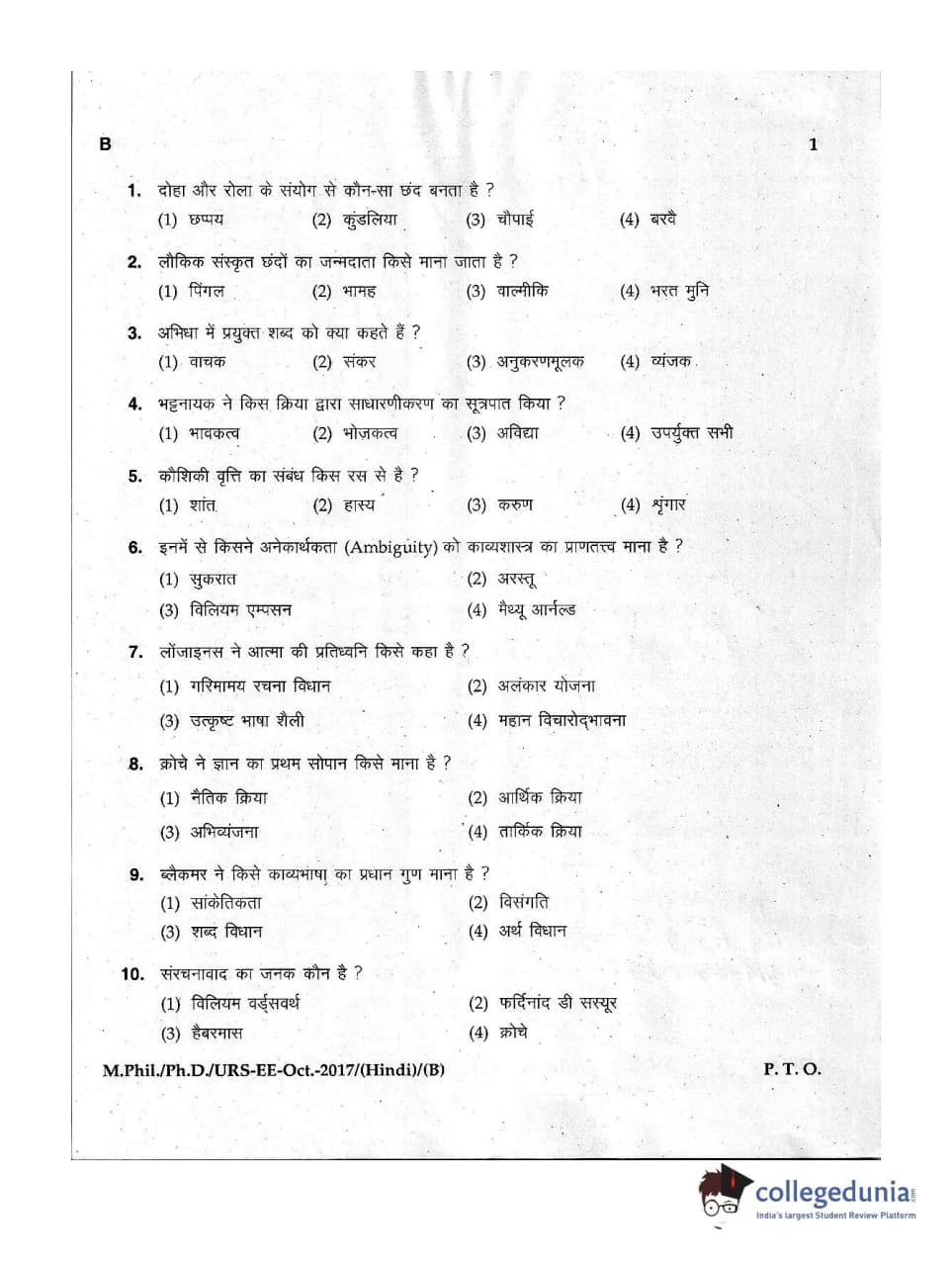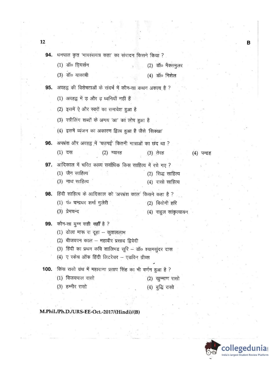 MDUCEE 2017 M.Phil./Ph.D./URS Hindi Set B Question paper with answer key pdf is available for download. The exam was successfully organized by Maharishi Dayanand University. The question paper comprised a total of 100 questions.
