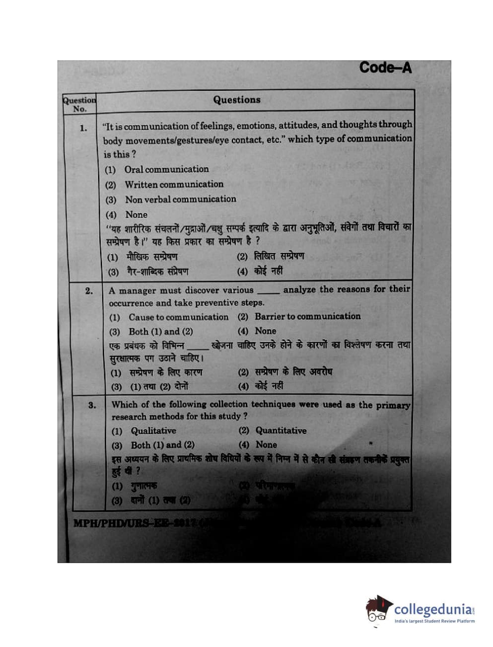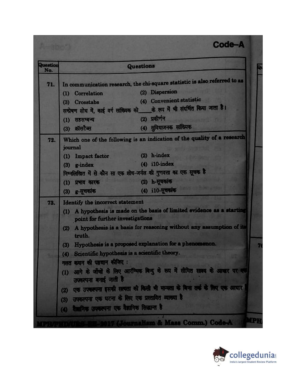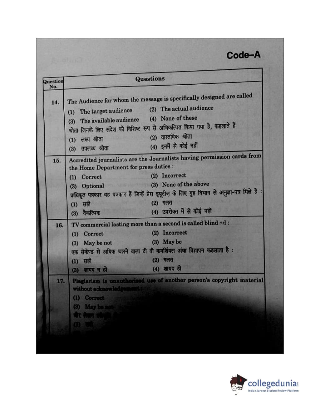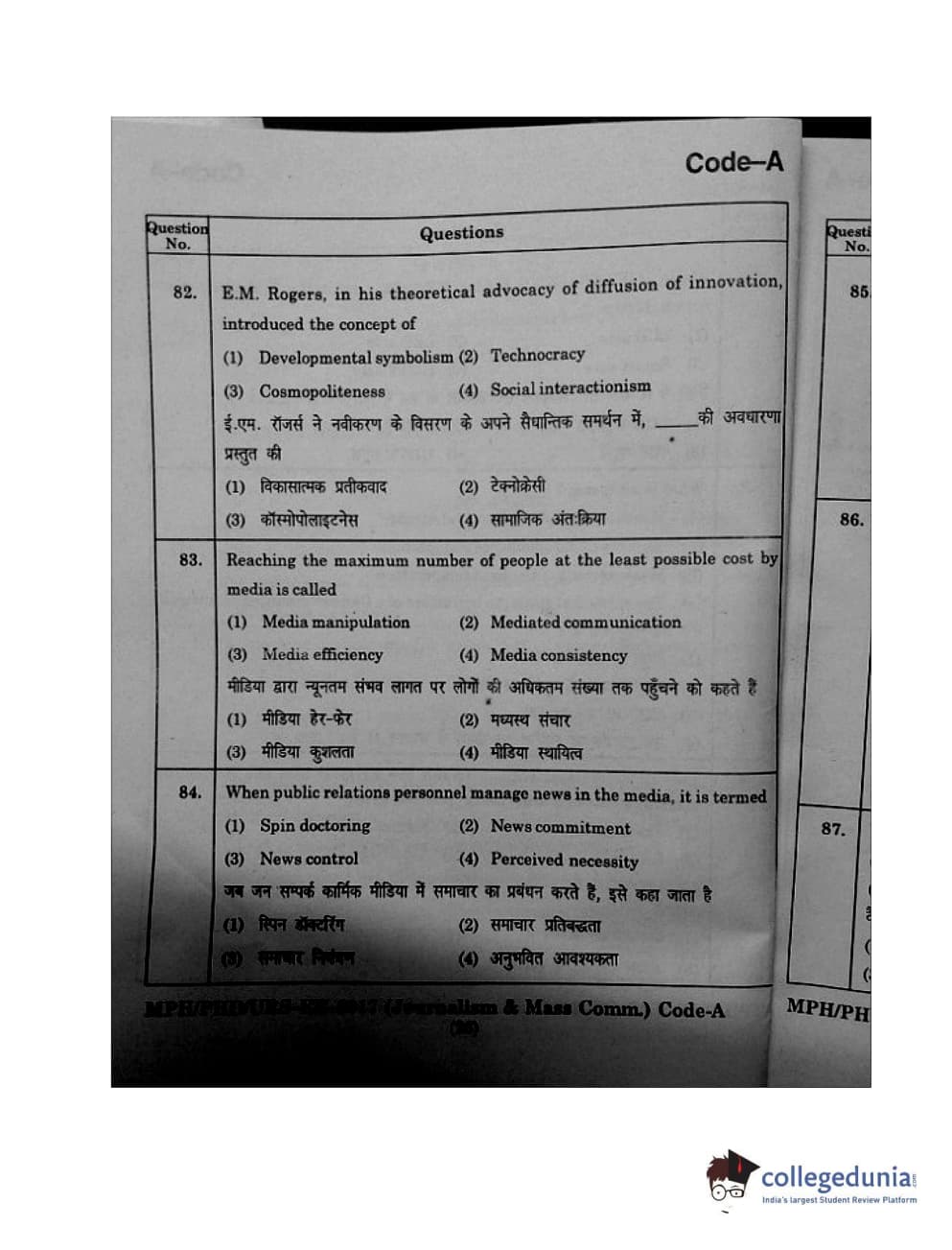 MDUCEE 2017 M.Phil./Ph.D./URS Journalism and Mass Communication Set A Question Paper with Answer Key PDFs