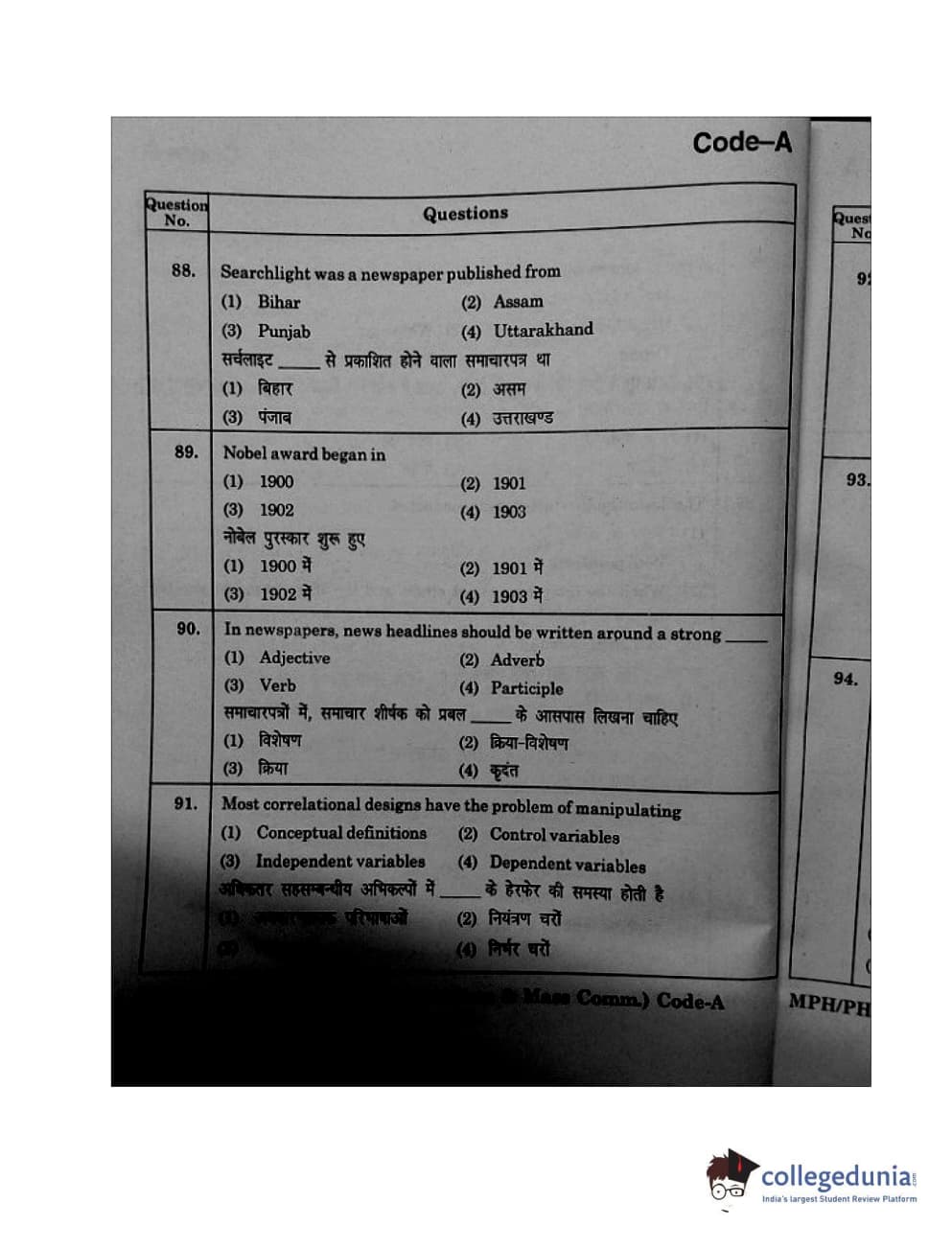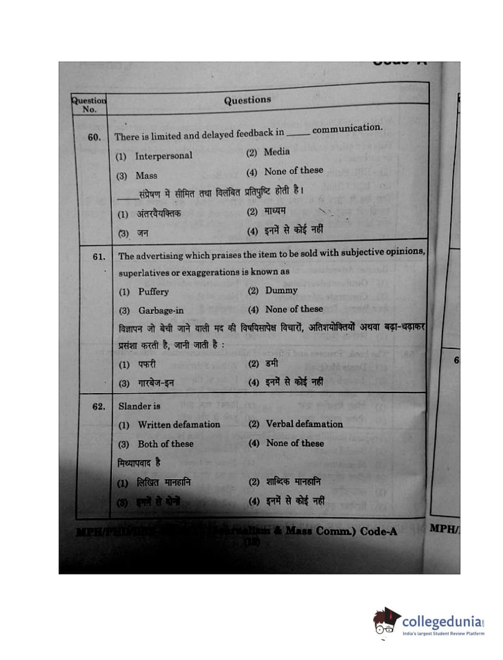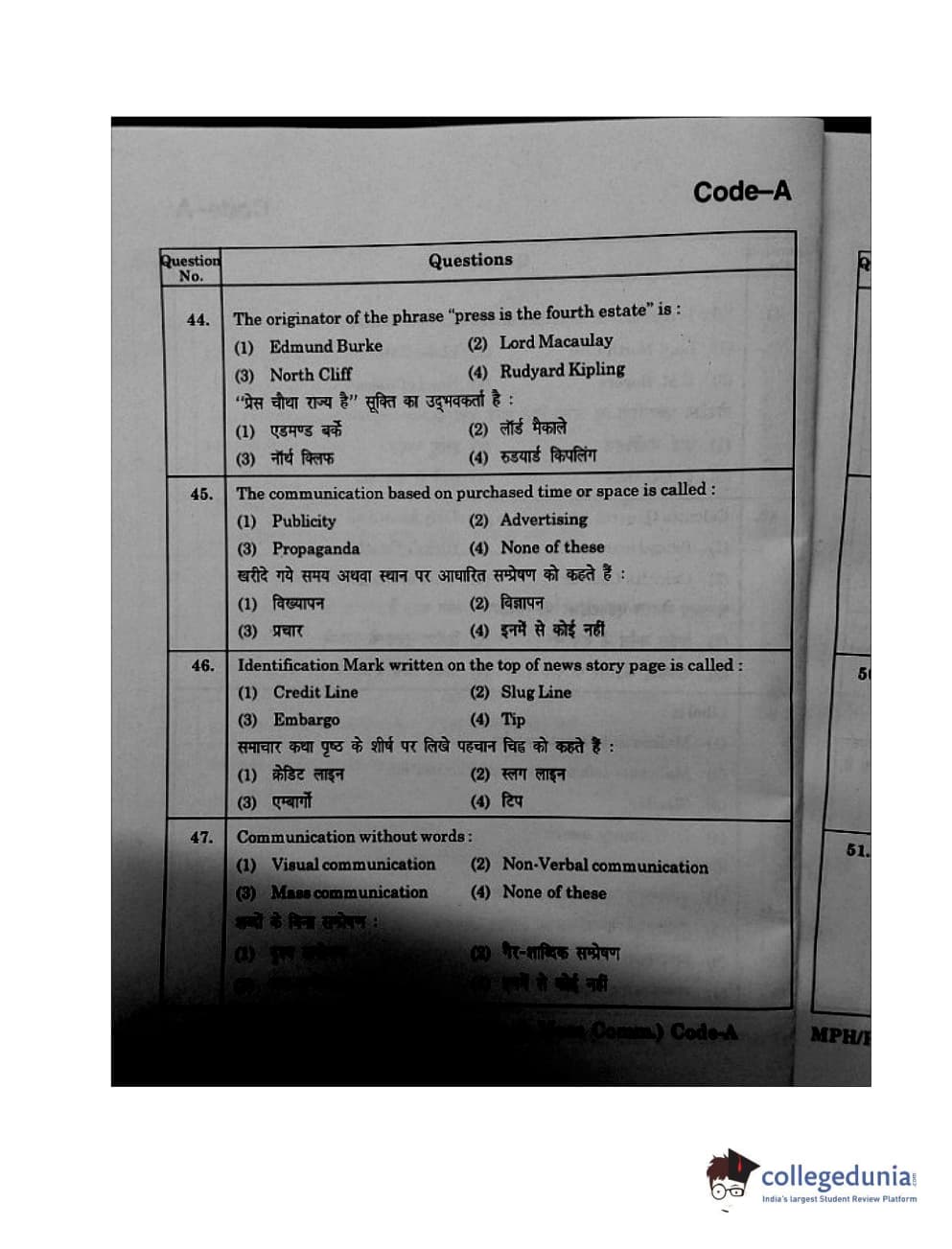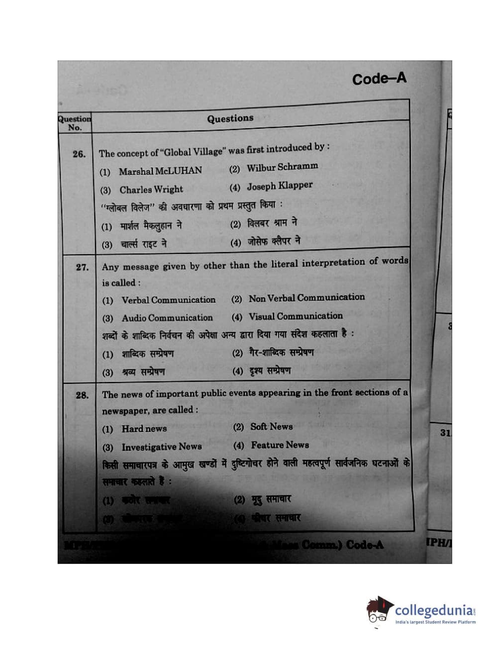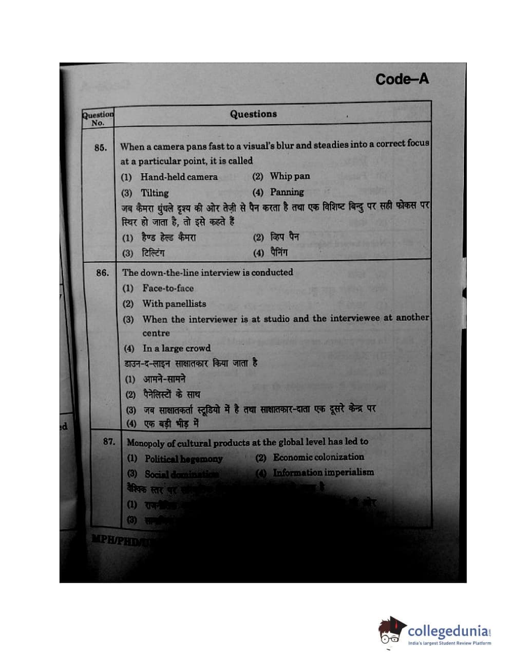 MDUCEE 2017 M.Phil./Ph.D./URS Journalism and Mass Communication Set A Question Paper with Answer Key PDFs