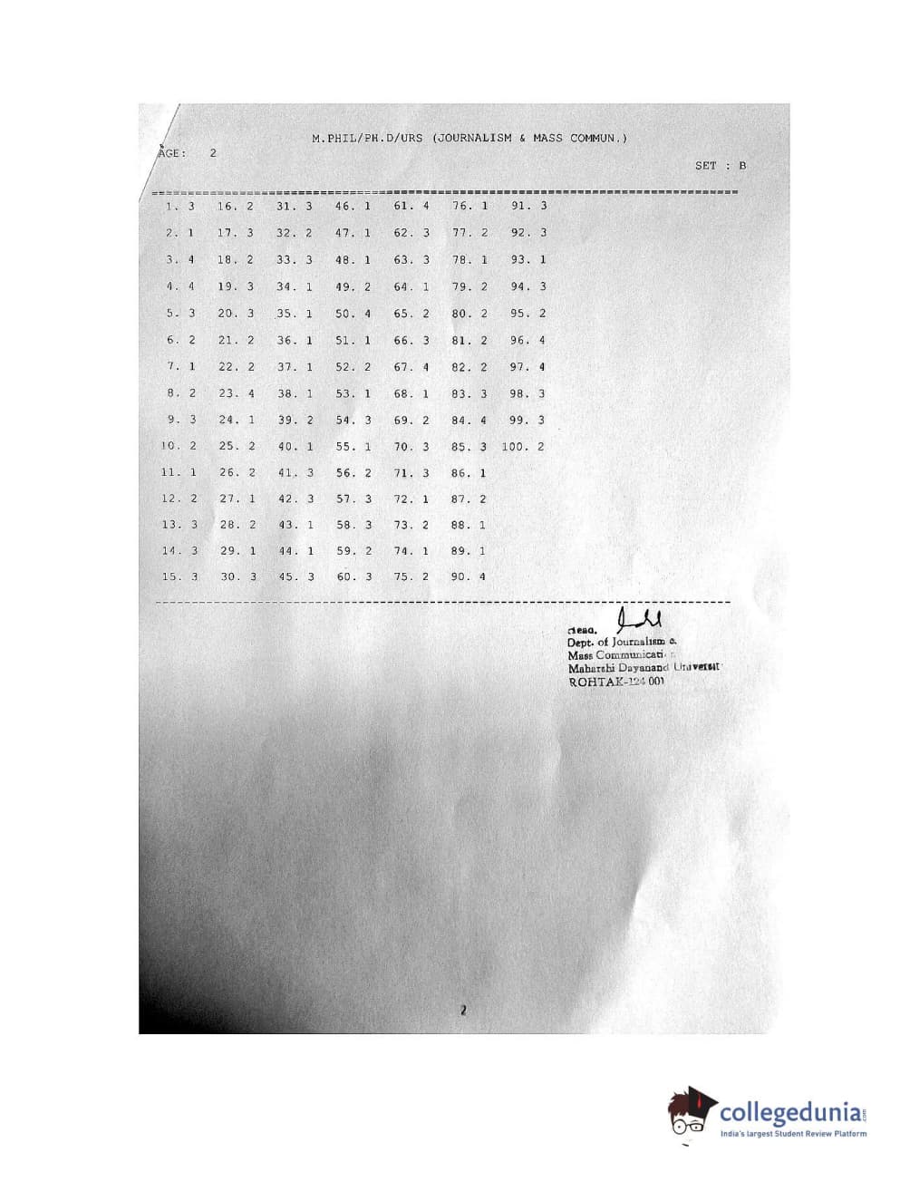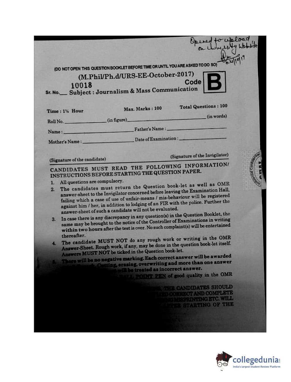 MDUCEE 2017 M.Phil./Ph.D./URS Journalism and Mass Communication Set B Question paper with answer key pdf is available for download. The exam was successfully organized by Maharishi Dayanand University. The question paper comprised a total of 100 questions.