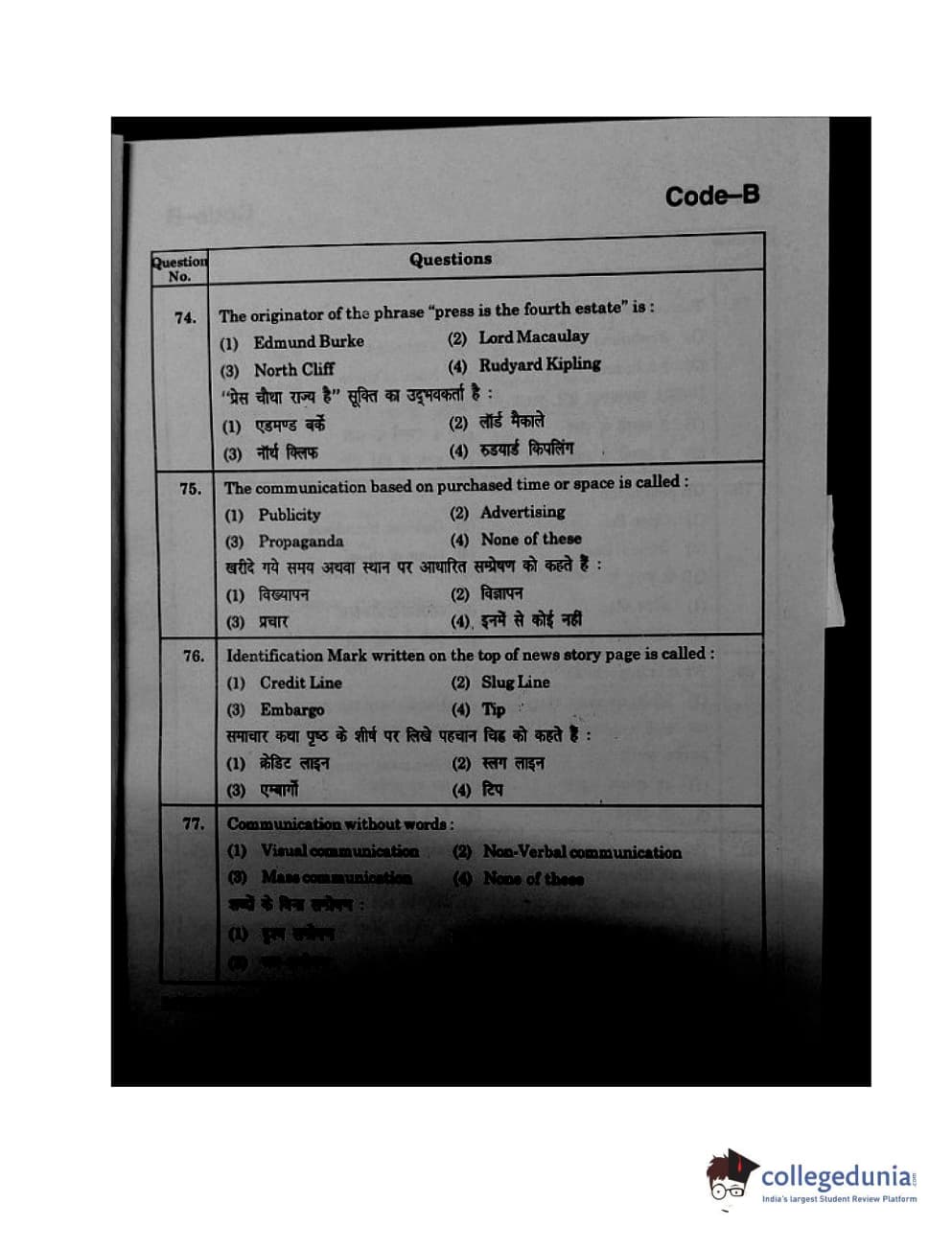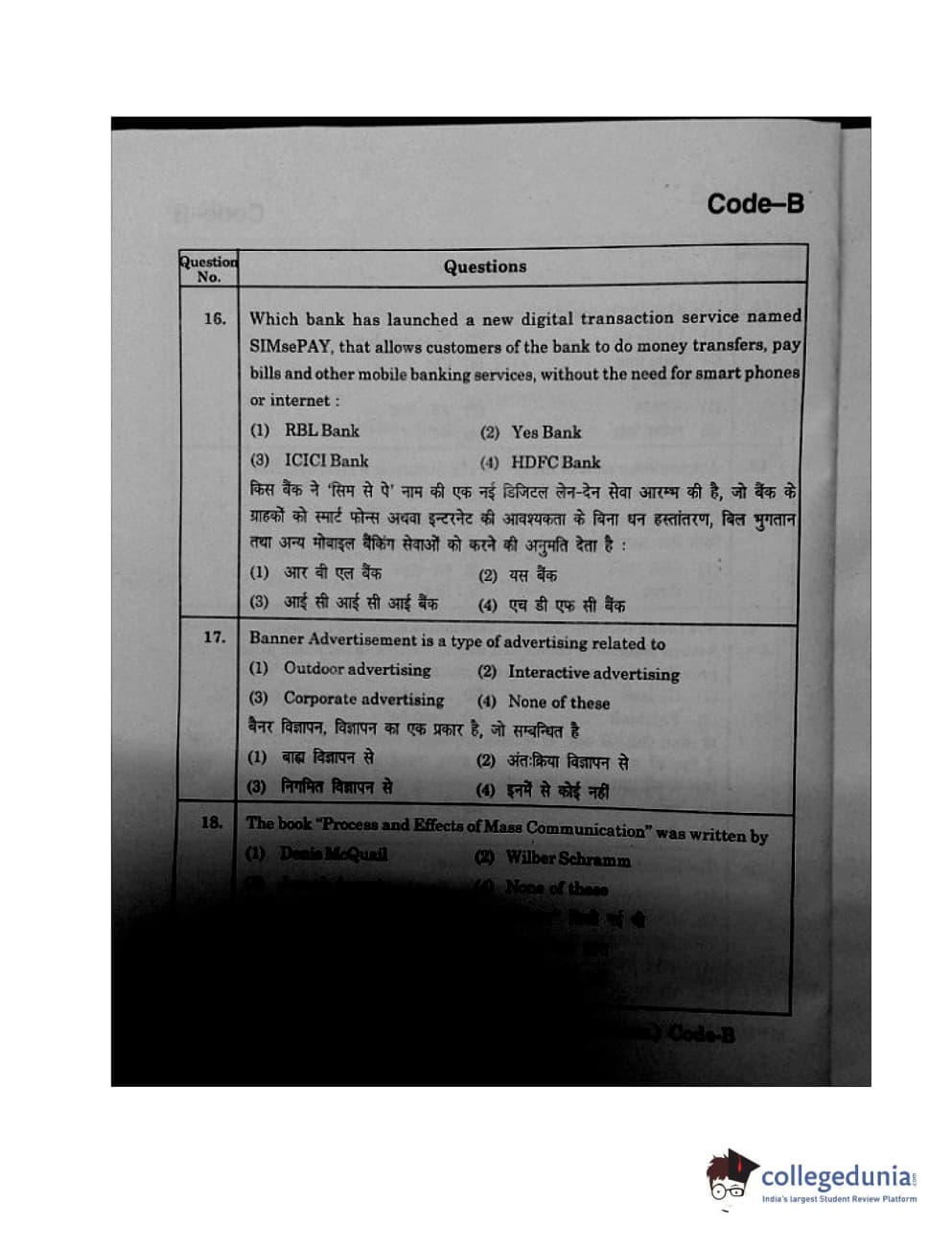 MDUCEE 2017 M.Phil./Ph.D./URS Journalism and Mass Communication Set B Question Paper with Answer Key PDFs