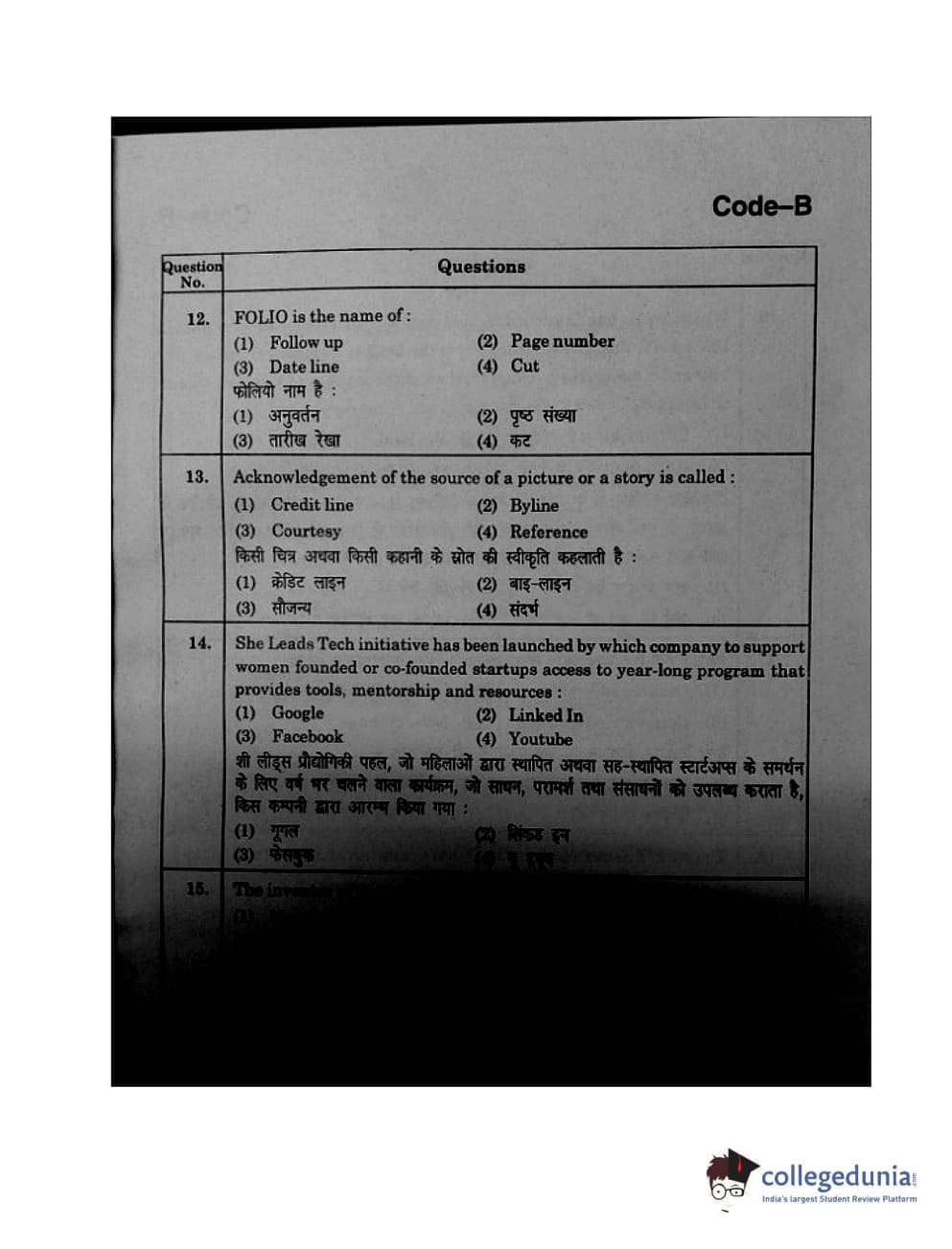 | MDUCEE 2017 M.Phil./Ph.D./URS Journalism and Mass Communication Set B Question Paper PDF | MDUCEE 2017 M.Phil./Ph.D./URS Journalism and Mass Communication Set B Answer Key PDF |