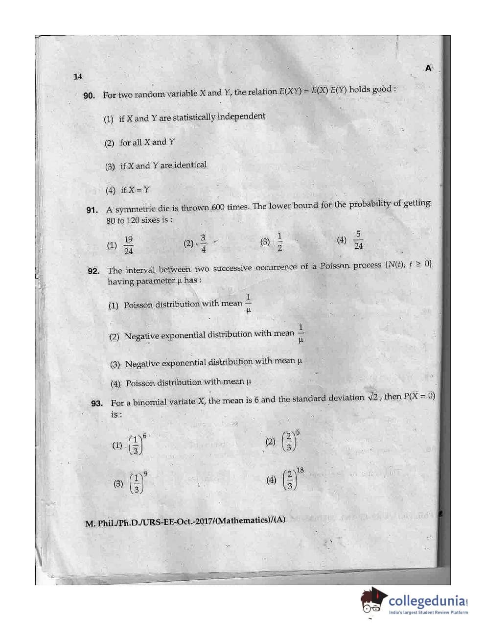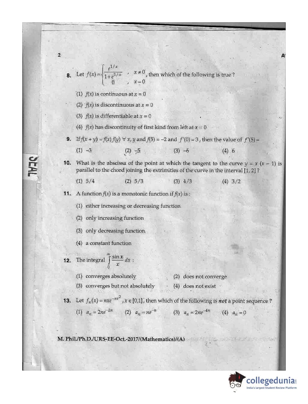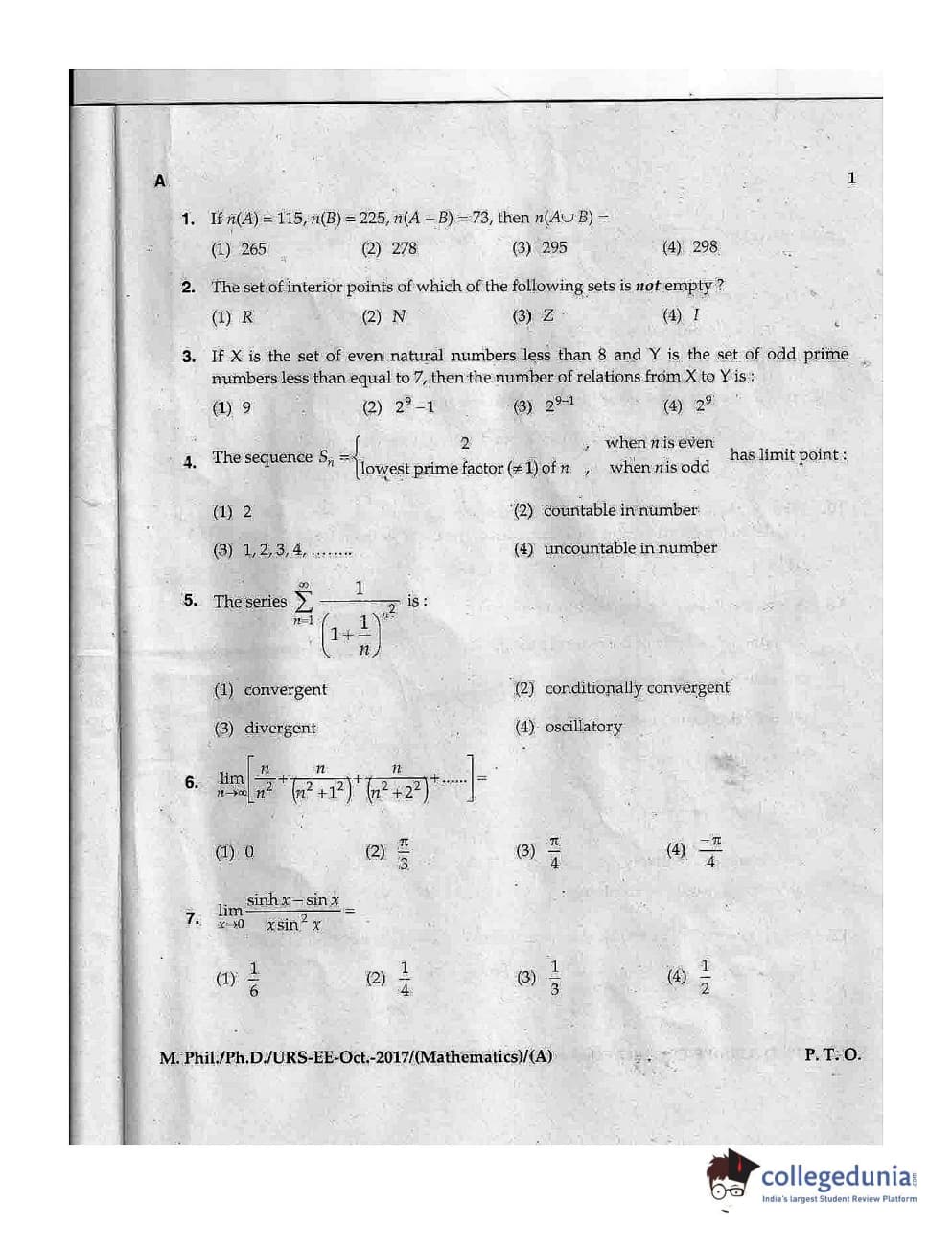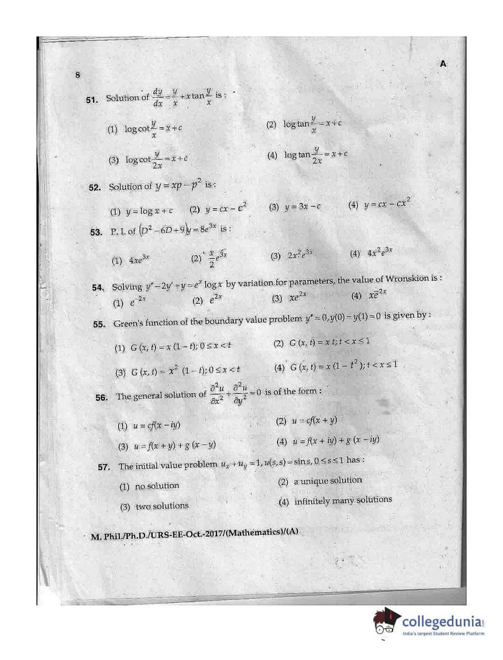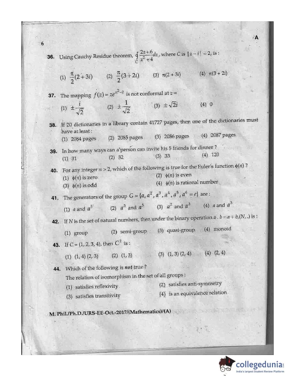 MDUCEE 2017 M.Phil./Ph.D./URS Mathematics Set A Question Paper with Answer Key PDFs