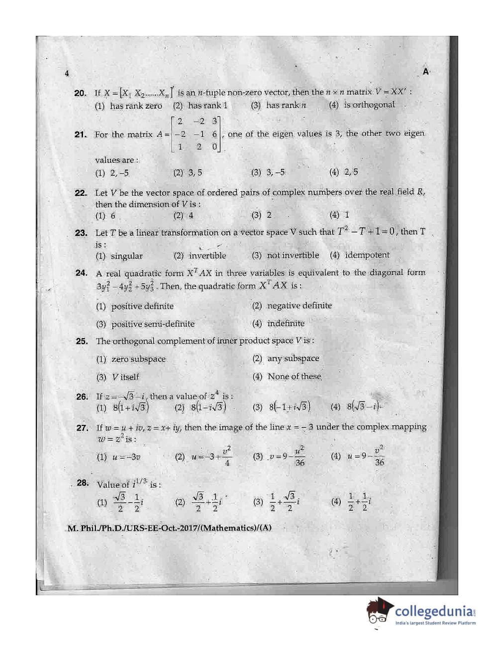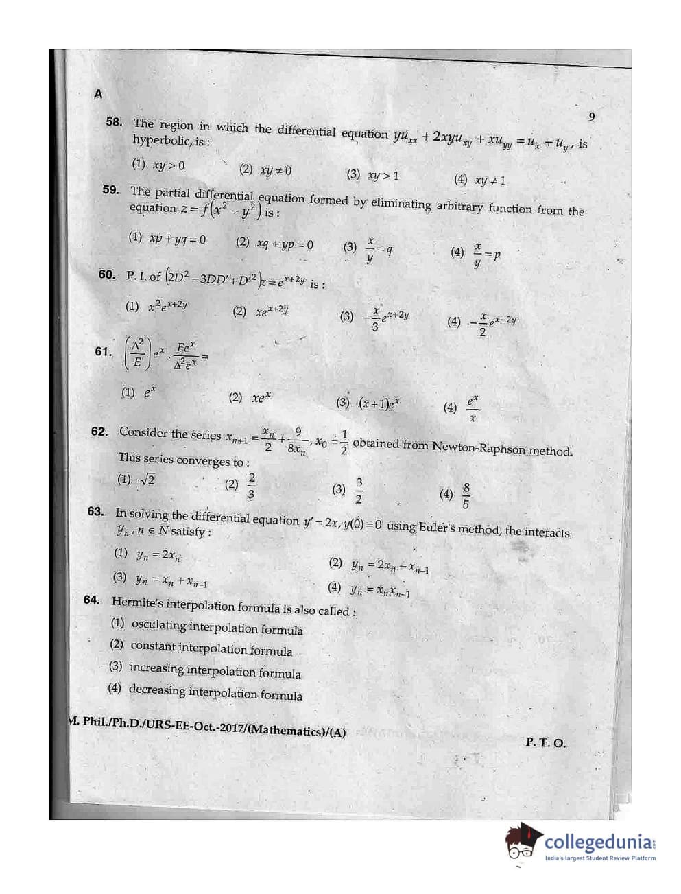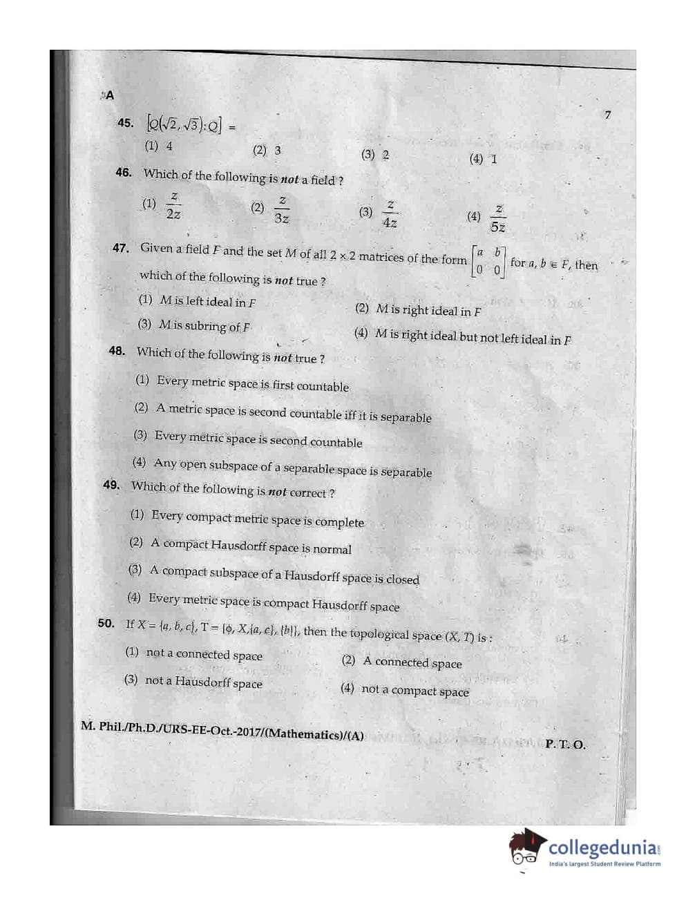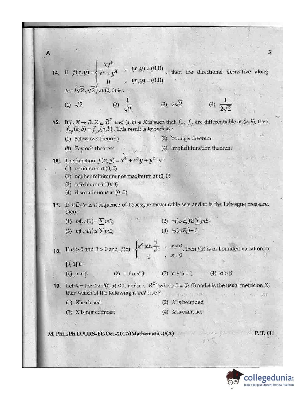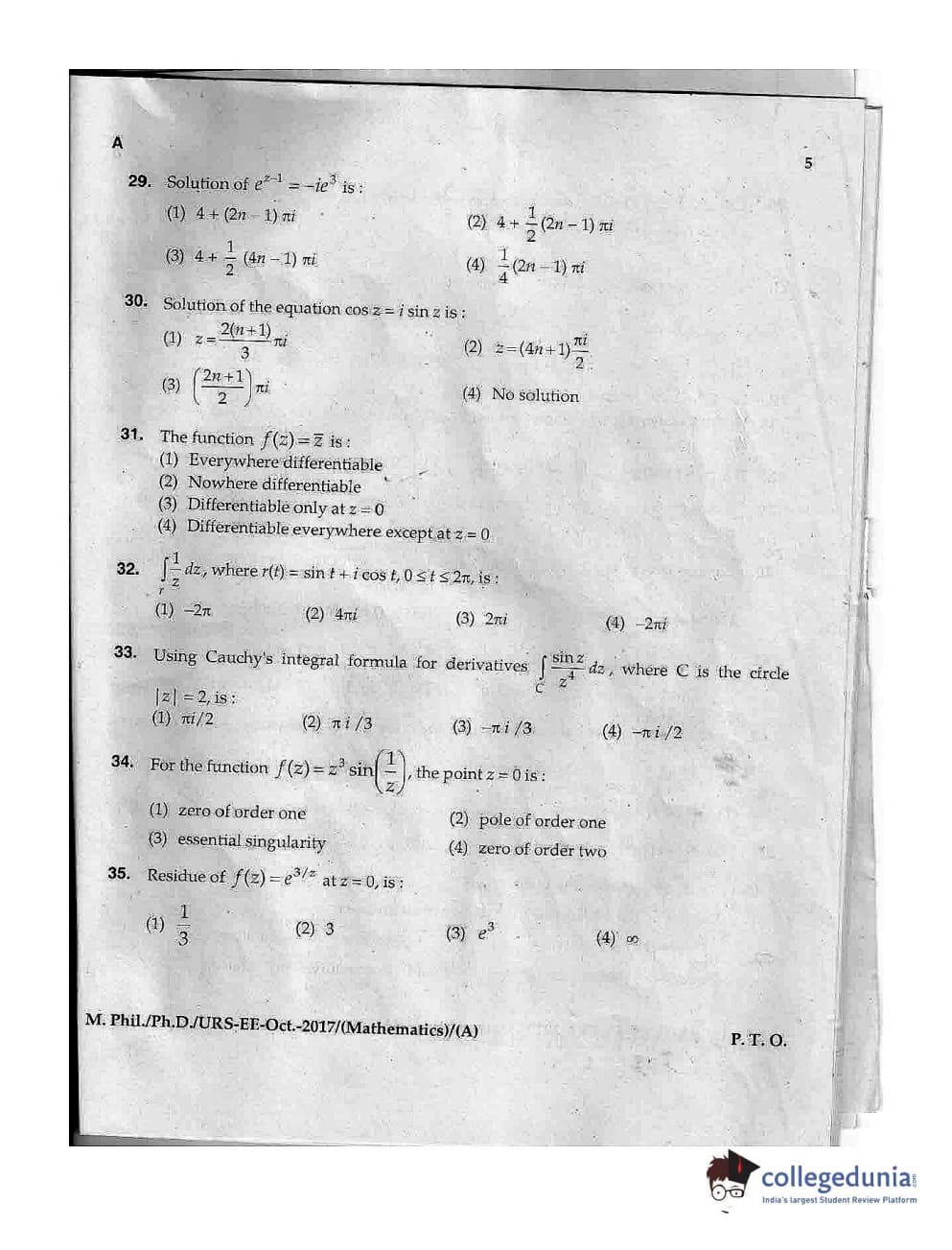 MDUCEE 2017 M.Phil./Ph.D./URS Mathematics Set A Question Paper with Answer Key PDFs