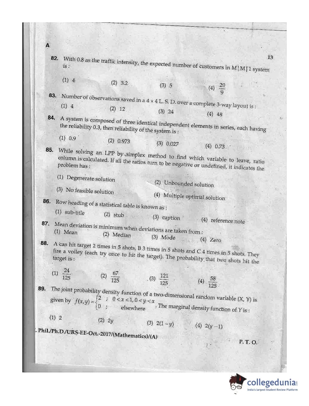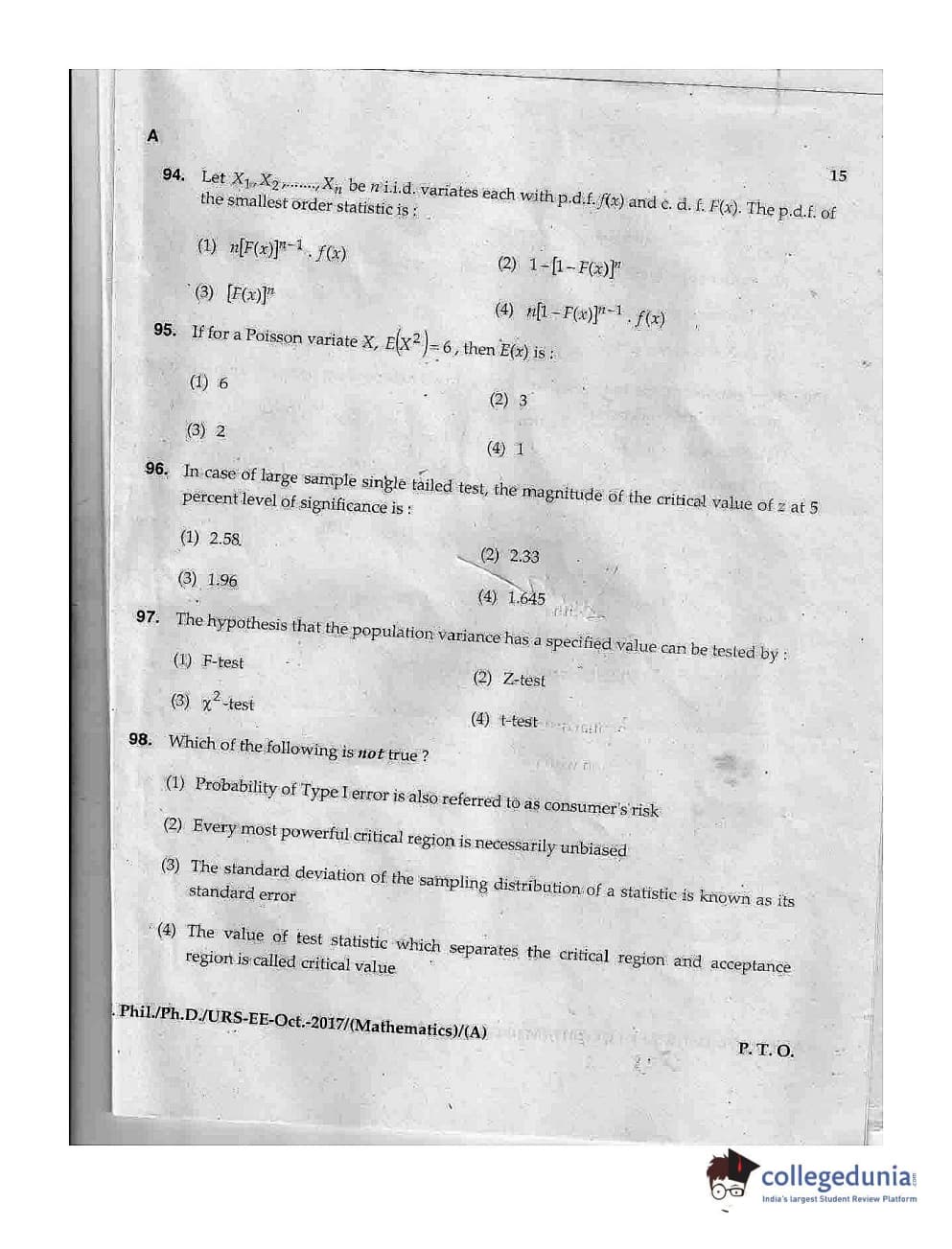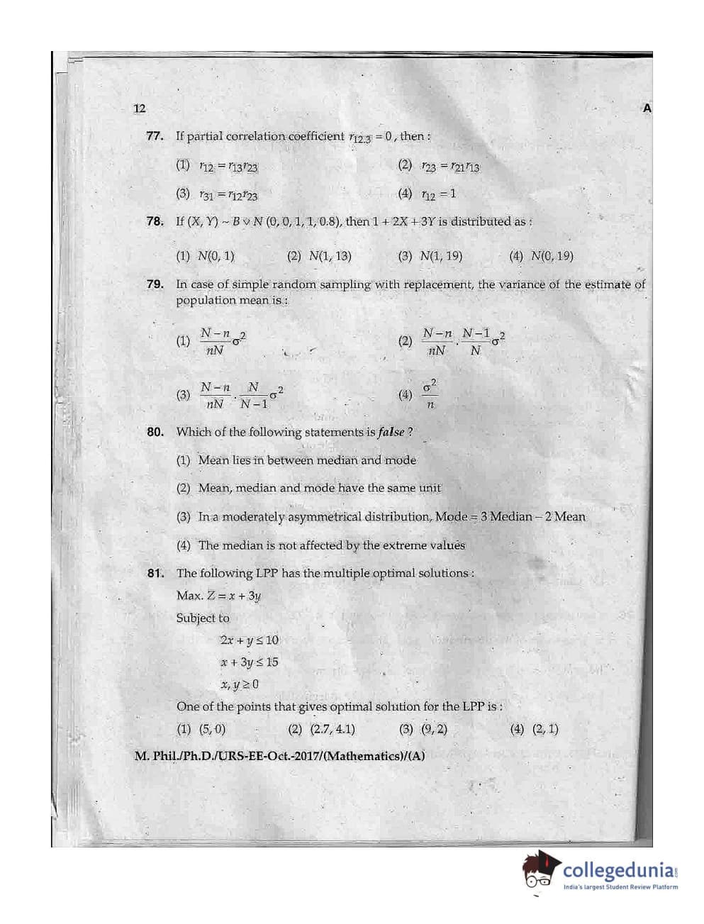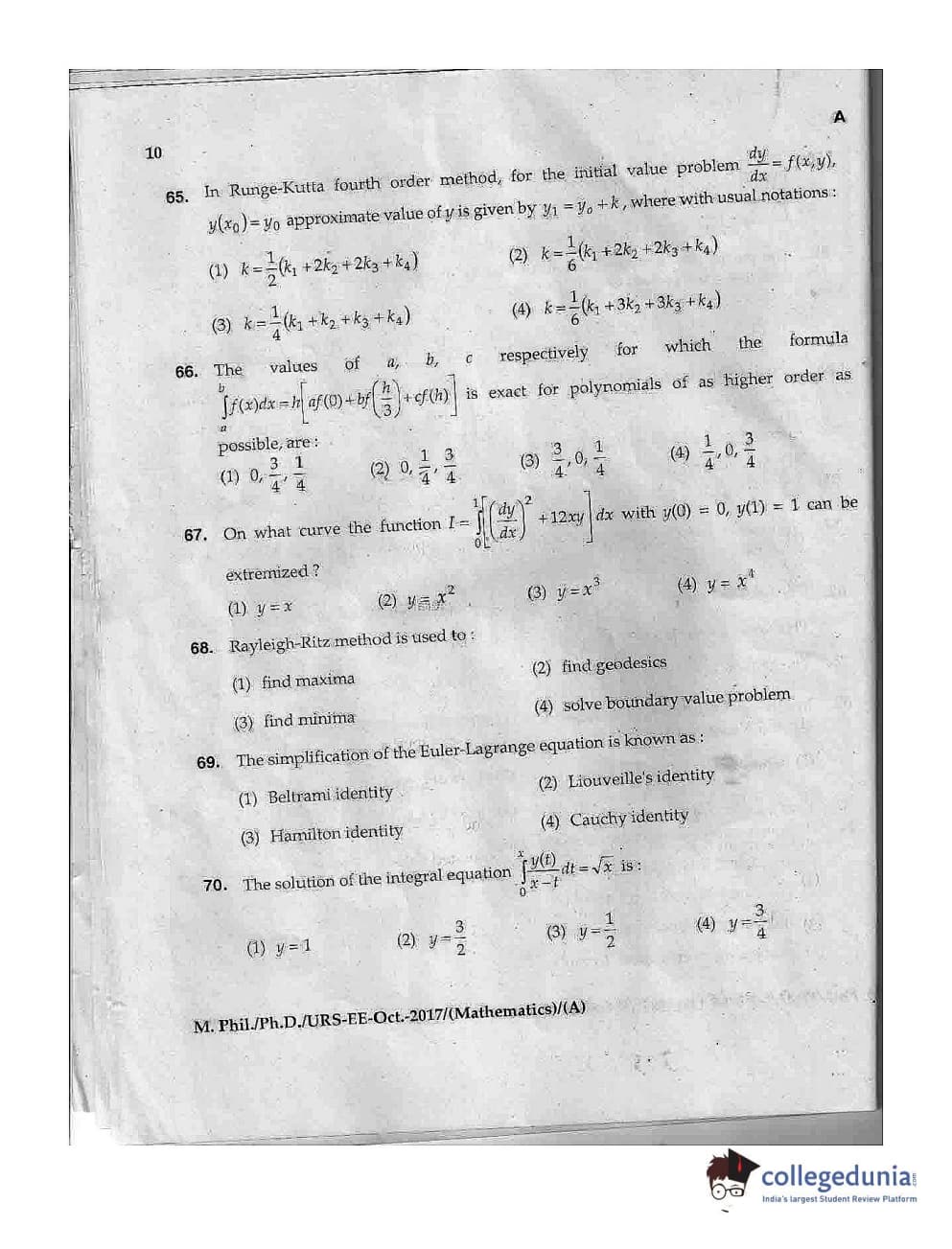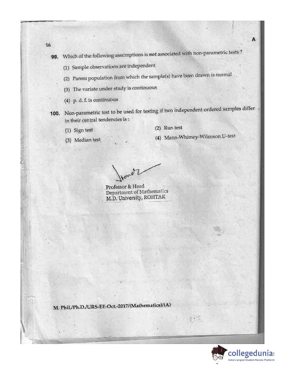 MDUCEE 2017 M.Phil./Ph.D./URS Mathematics Set A Question paper with answer key pdf is available for download. The exam was successfully organized by Maharishi Dayanand University. The question paper comprised a total of 100 questions.