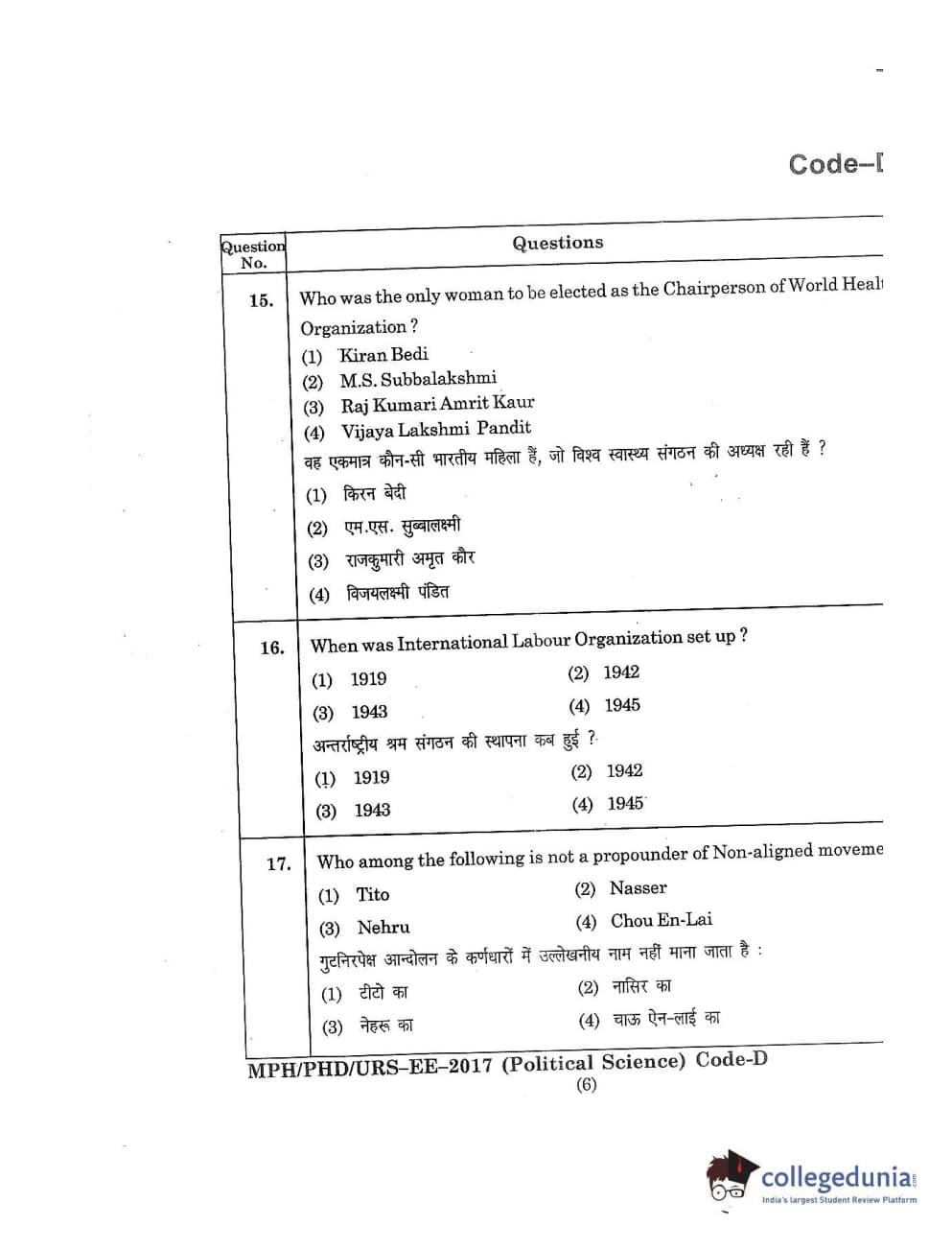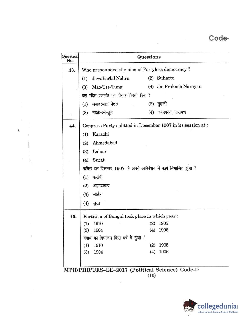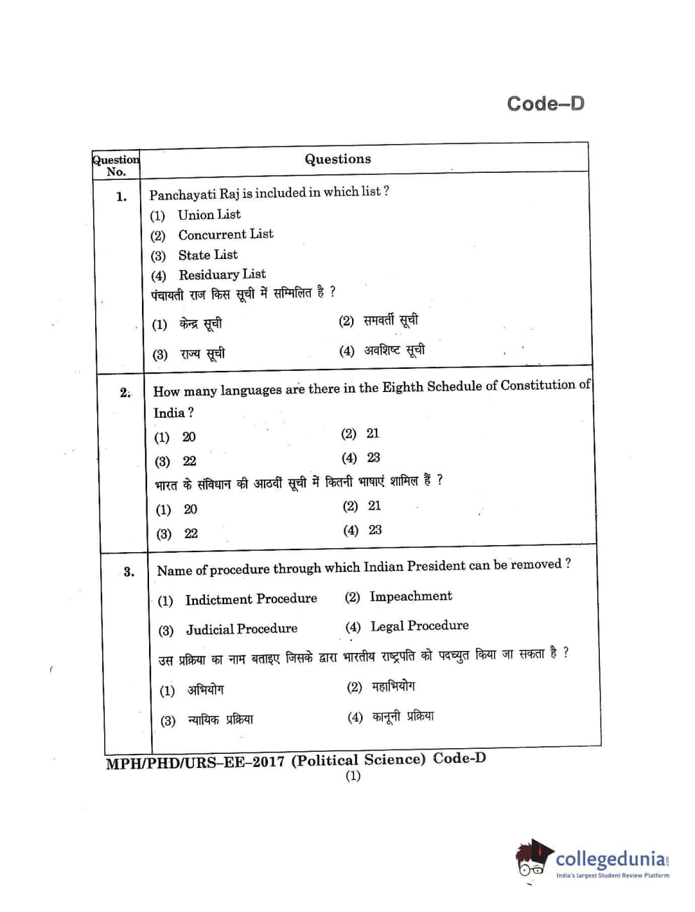| MDUCEE 2017 M.Phil./Ph.D./URS Political Science Set D Question Paper PDF | MDUCEE 2017 M.Phil./Ph.D./URS Political Science Set D Answer Key PDF |