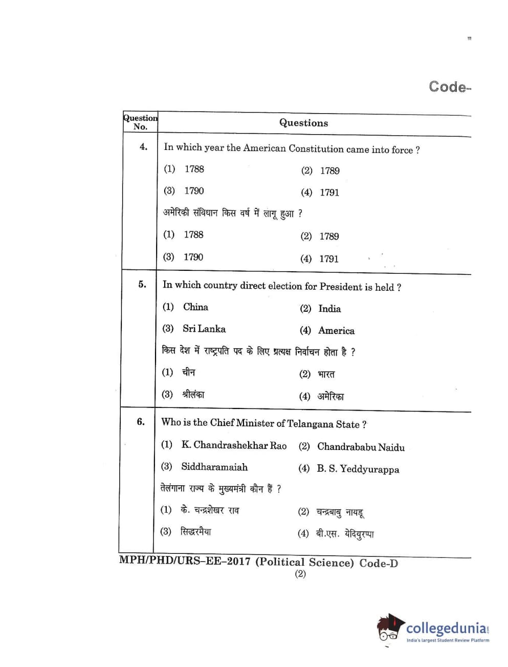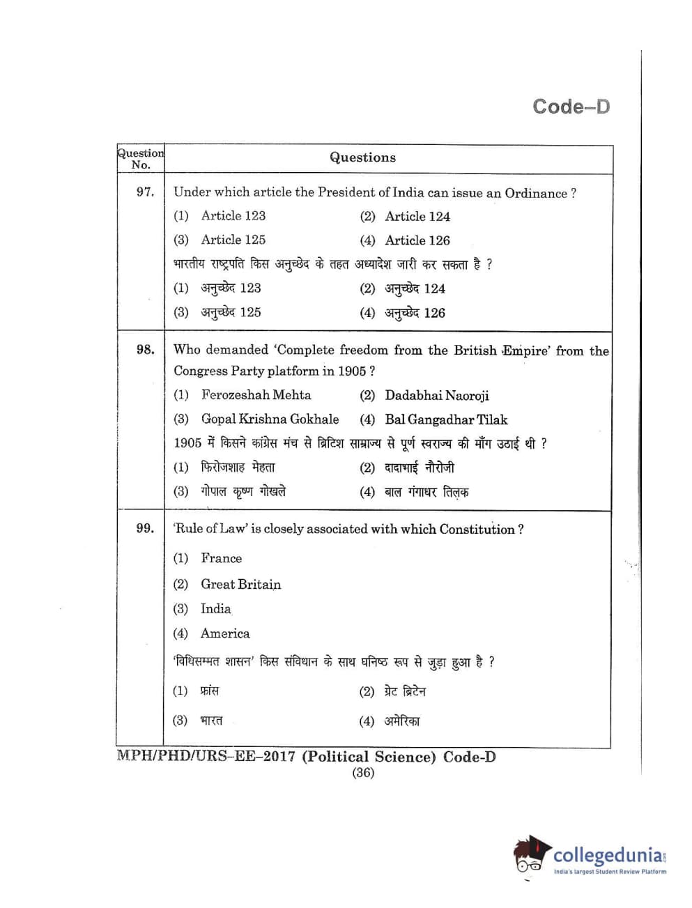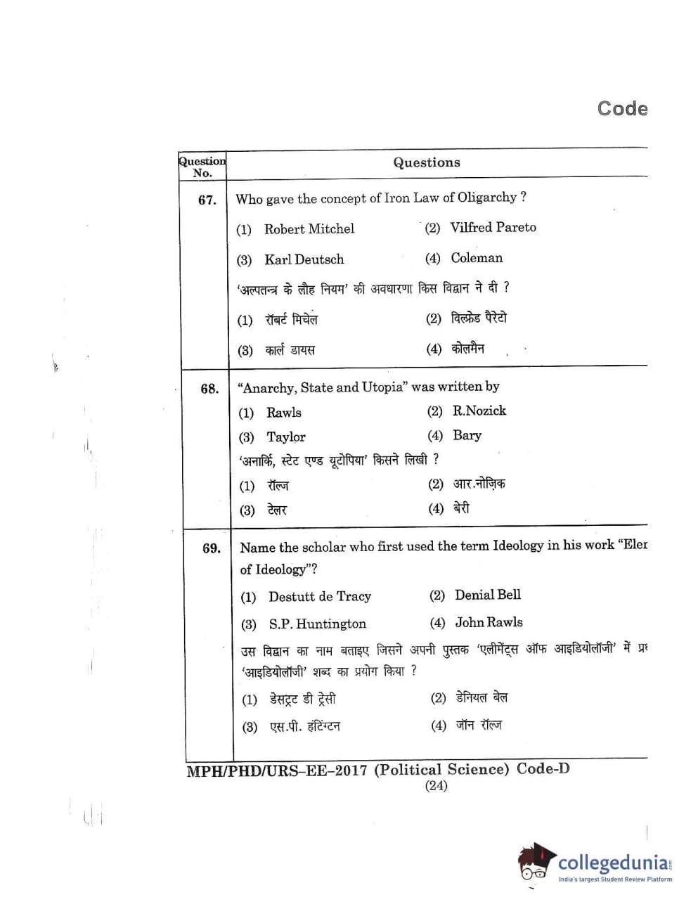 | MDUCEE 2017 M.Phil./Ph.D./URS Political Science Set D Question Paper PDF | MDUCEE 2017 M.Phil./Ph.D./URS Political Science Set D Answer Key PDF |