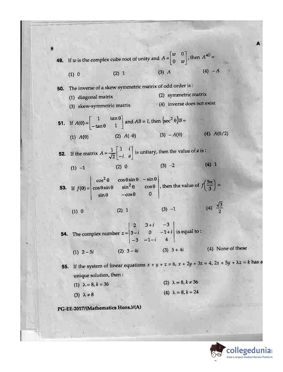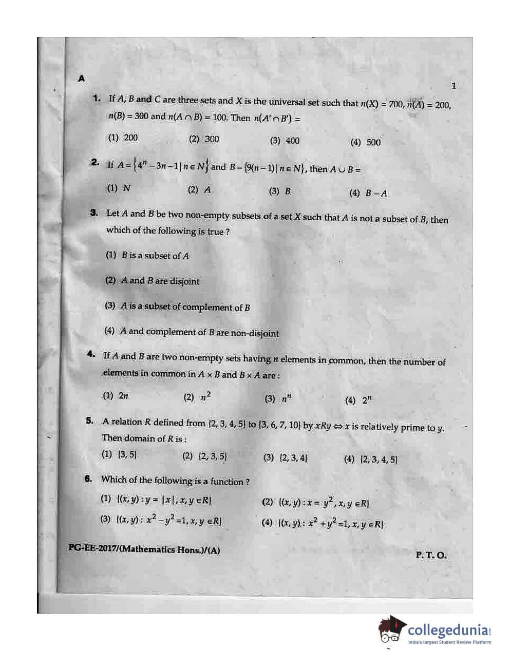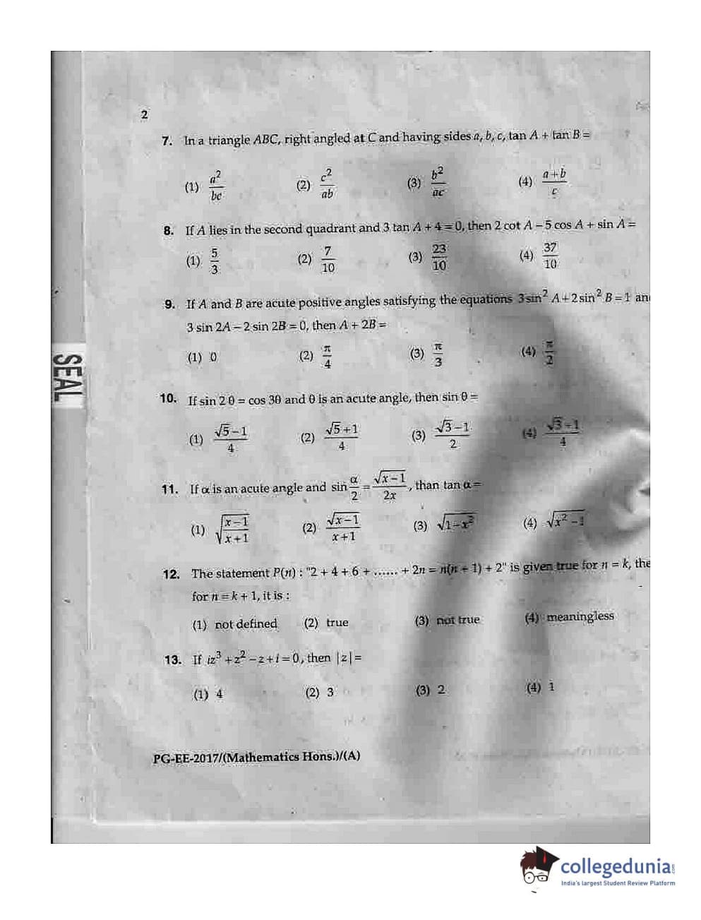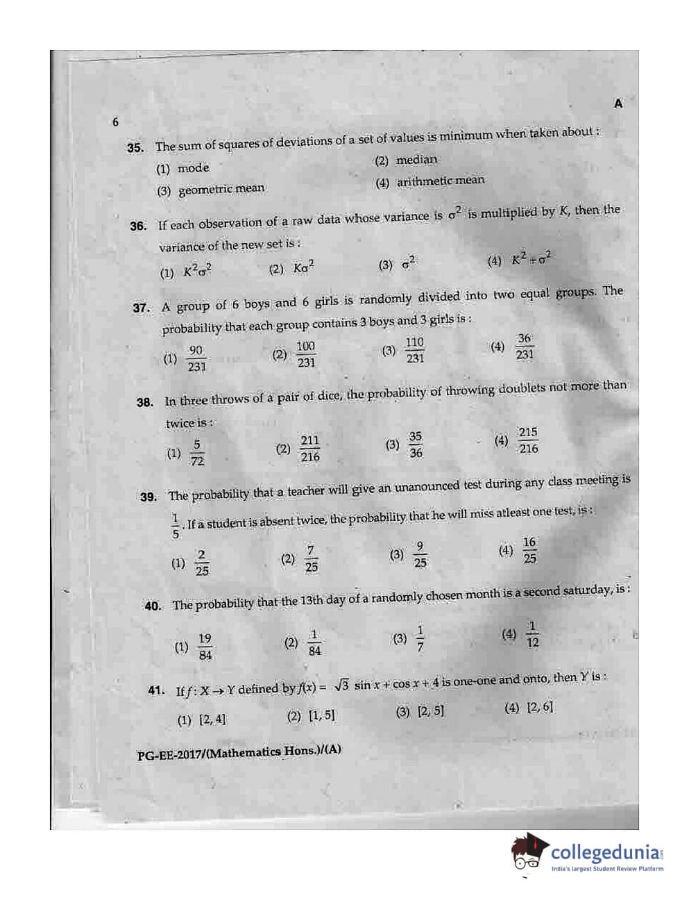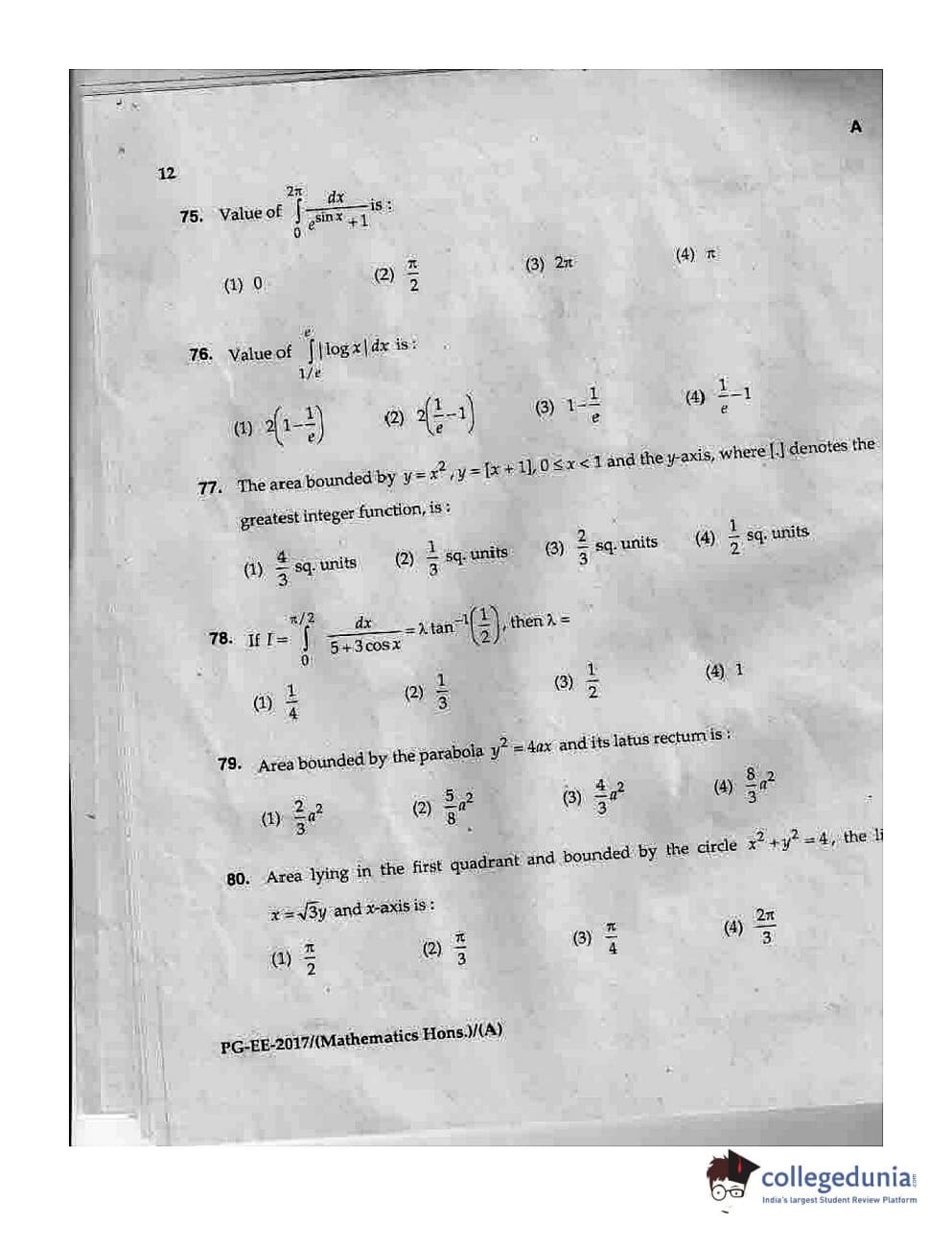 MDUCEE 2017 M.Sc. (Hons) Math 5 Year Integrated Set A Question Paper with Answer Key PDFs