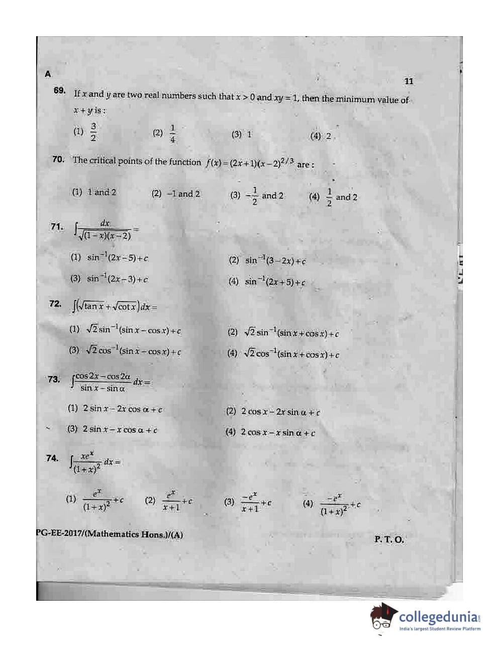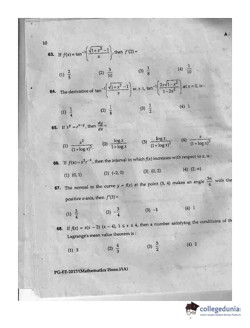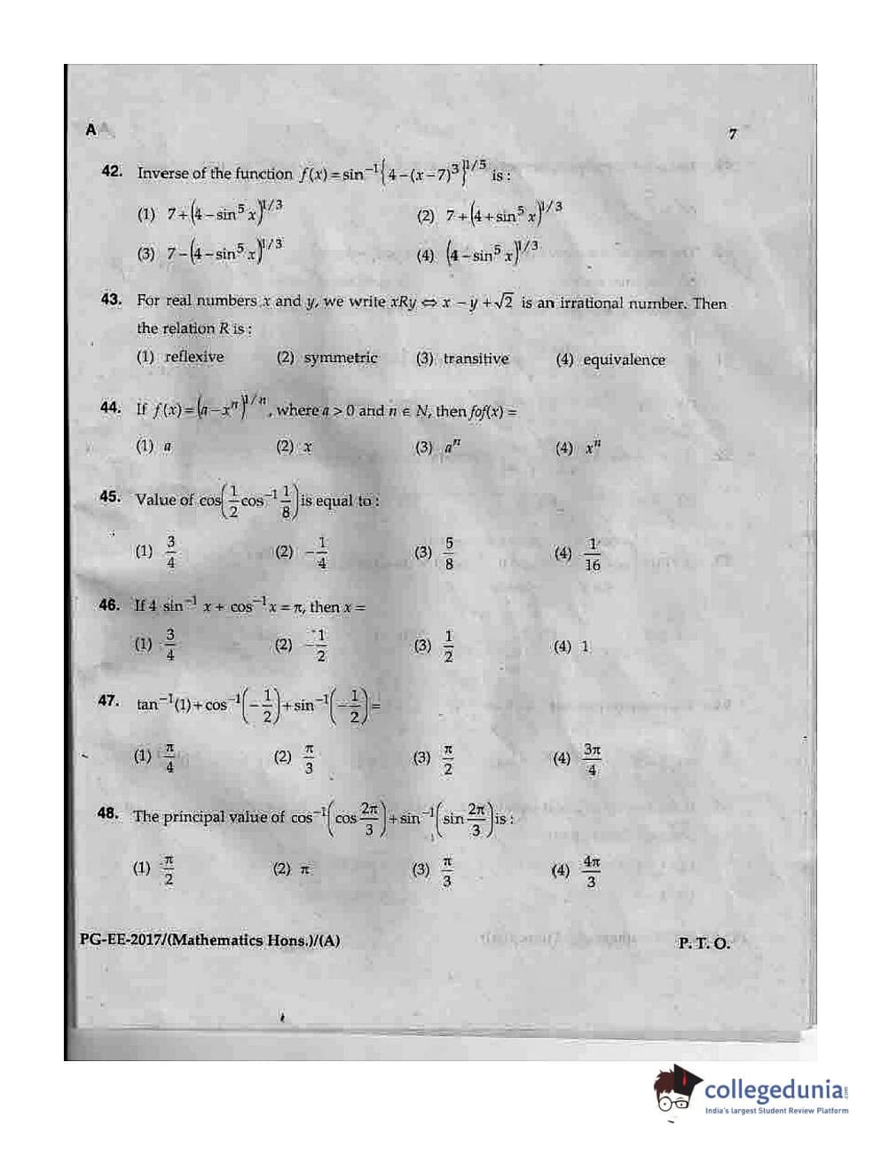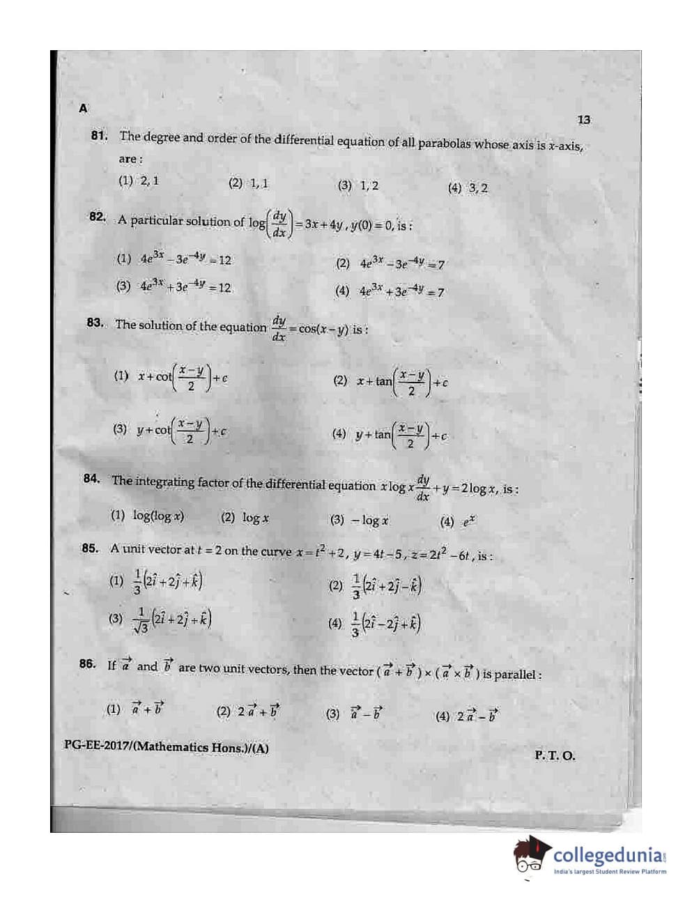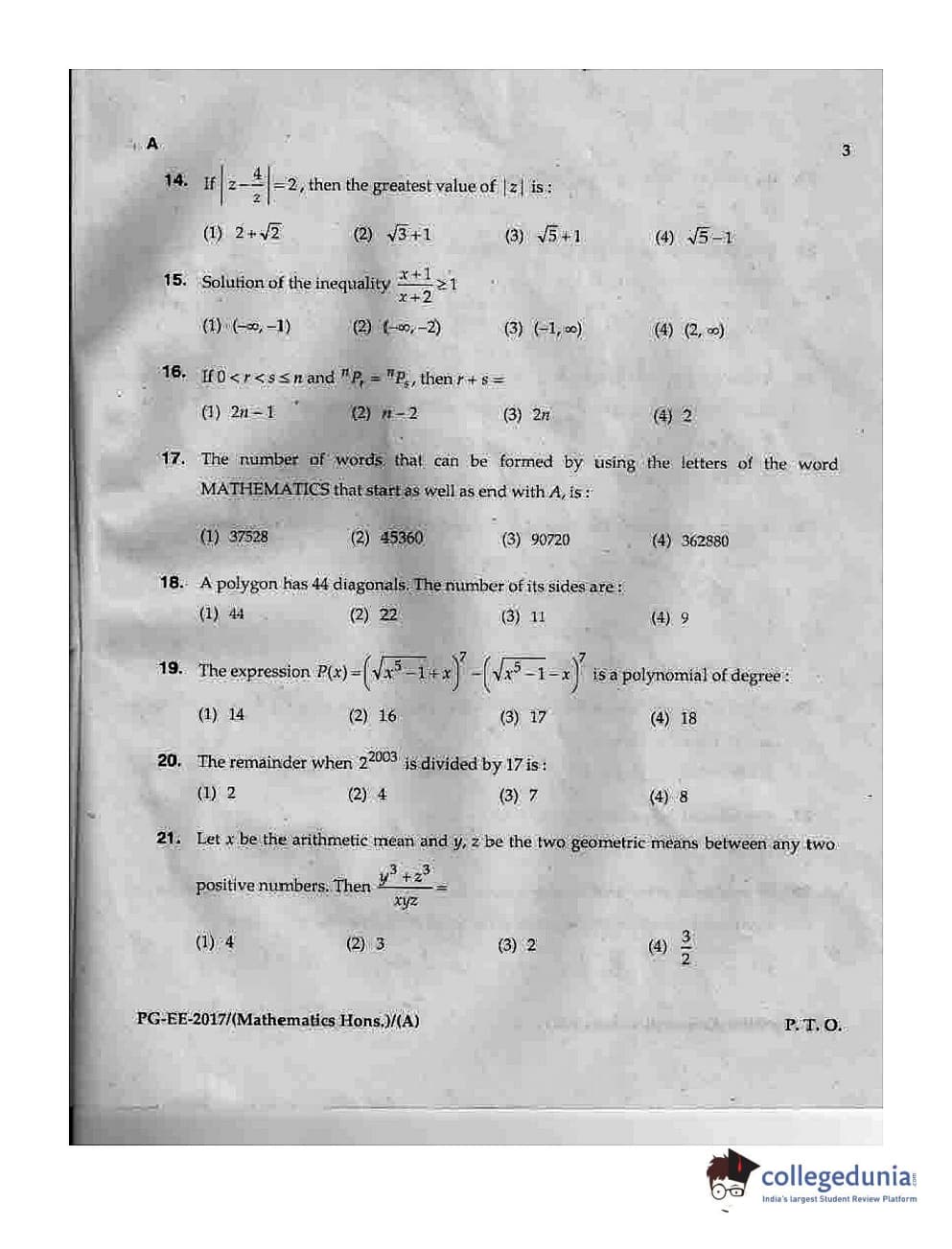 MDUCEE 2017 M.Sc. (Hons) Math 5 Year Integrated Set A Question Paper with Answer Key PDFs
