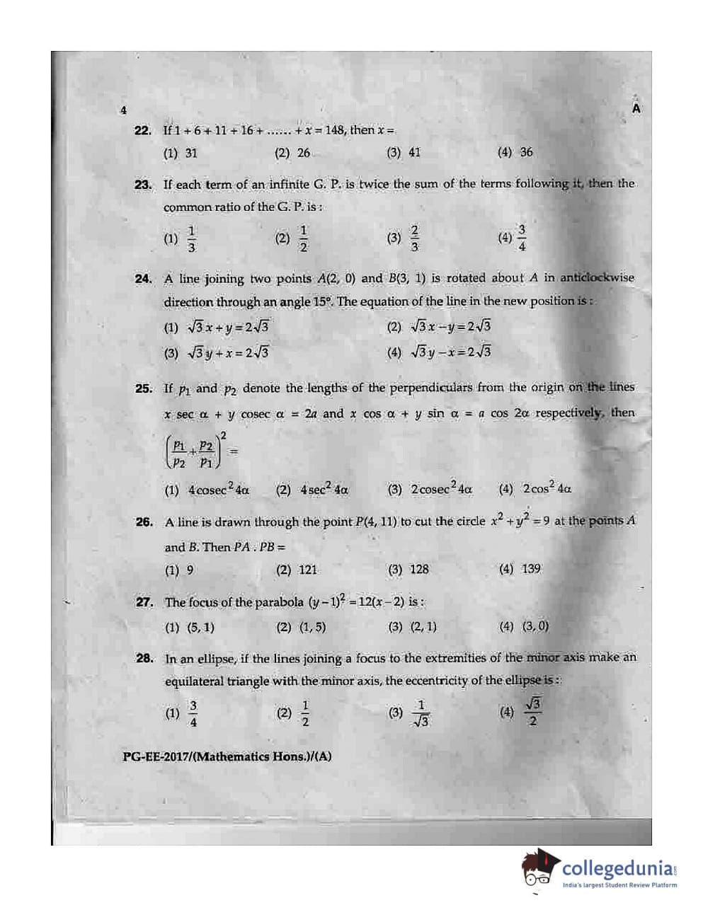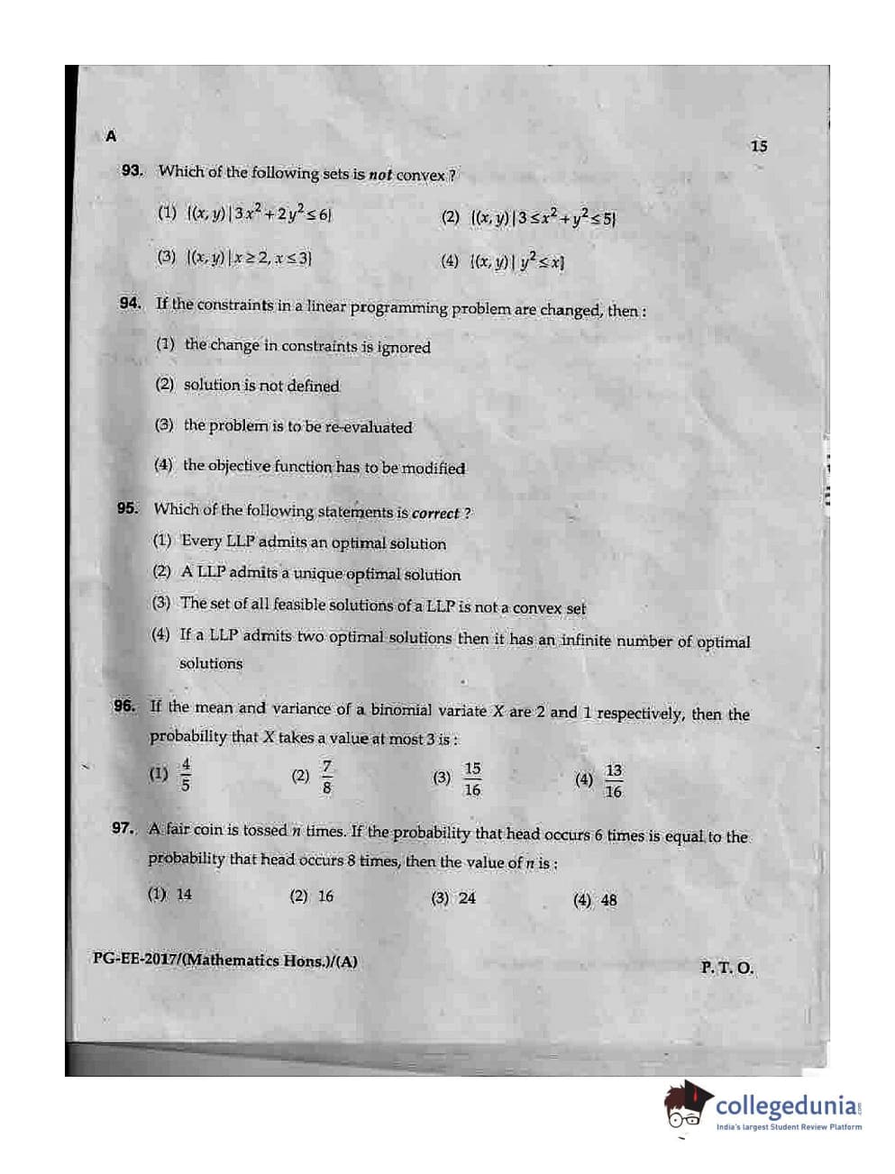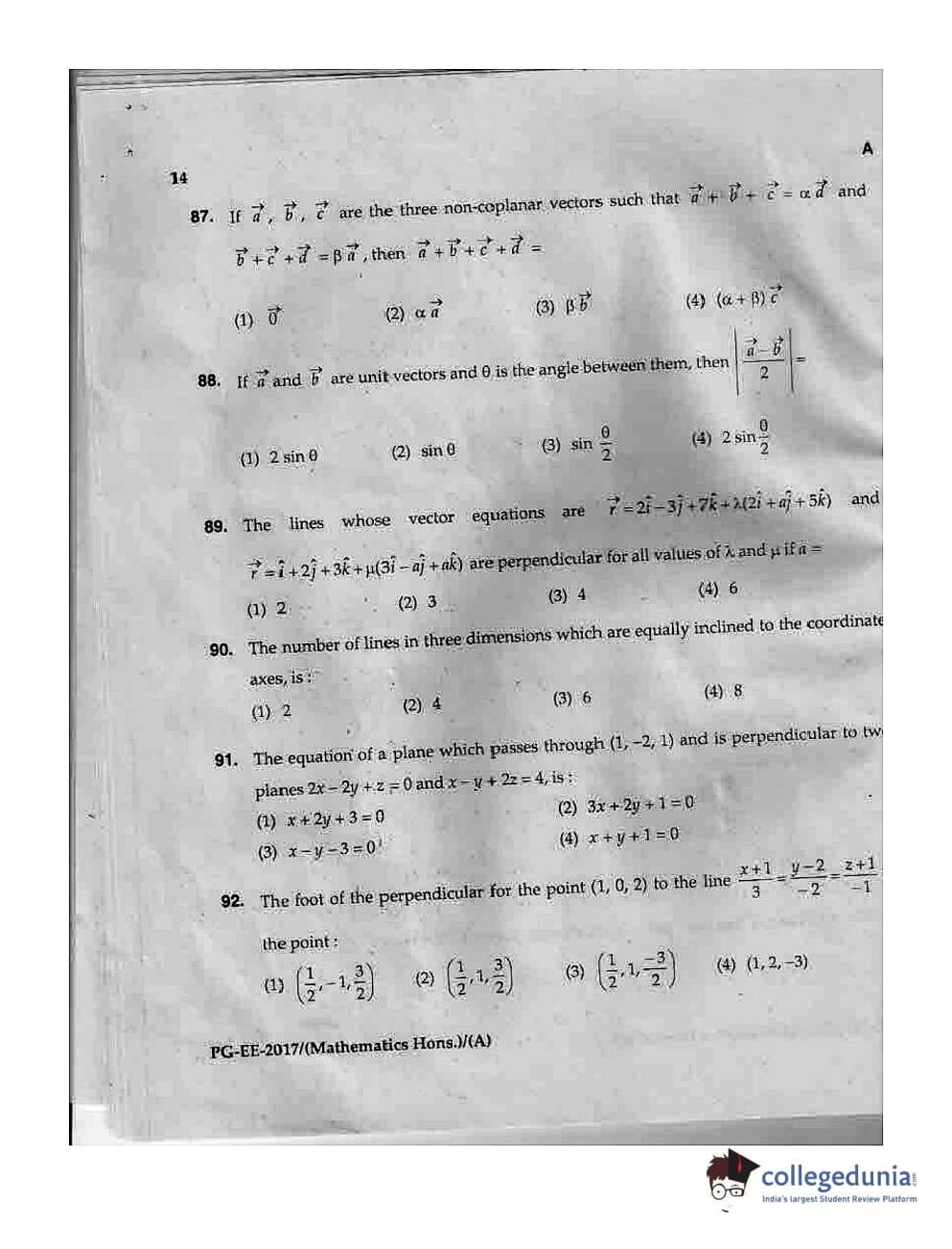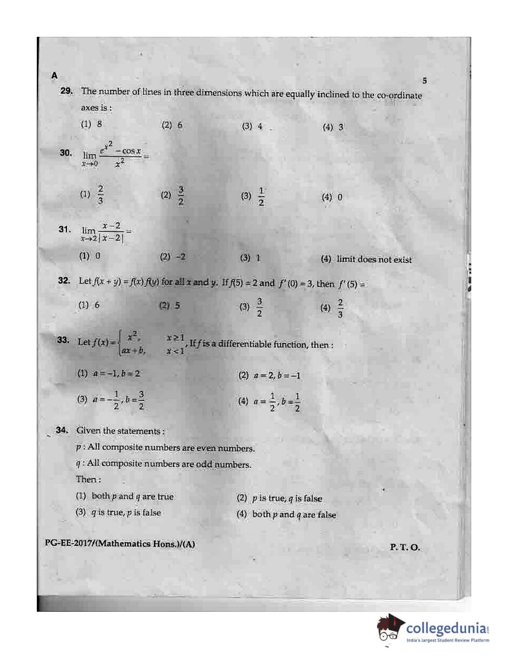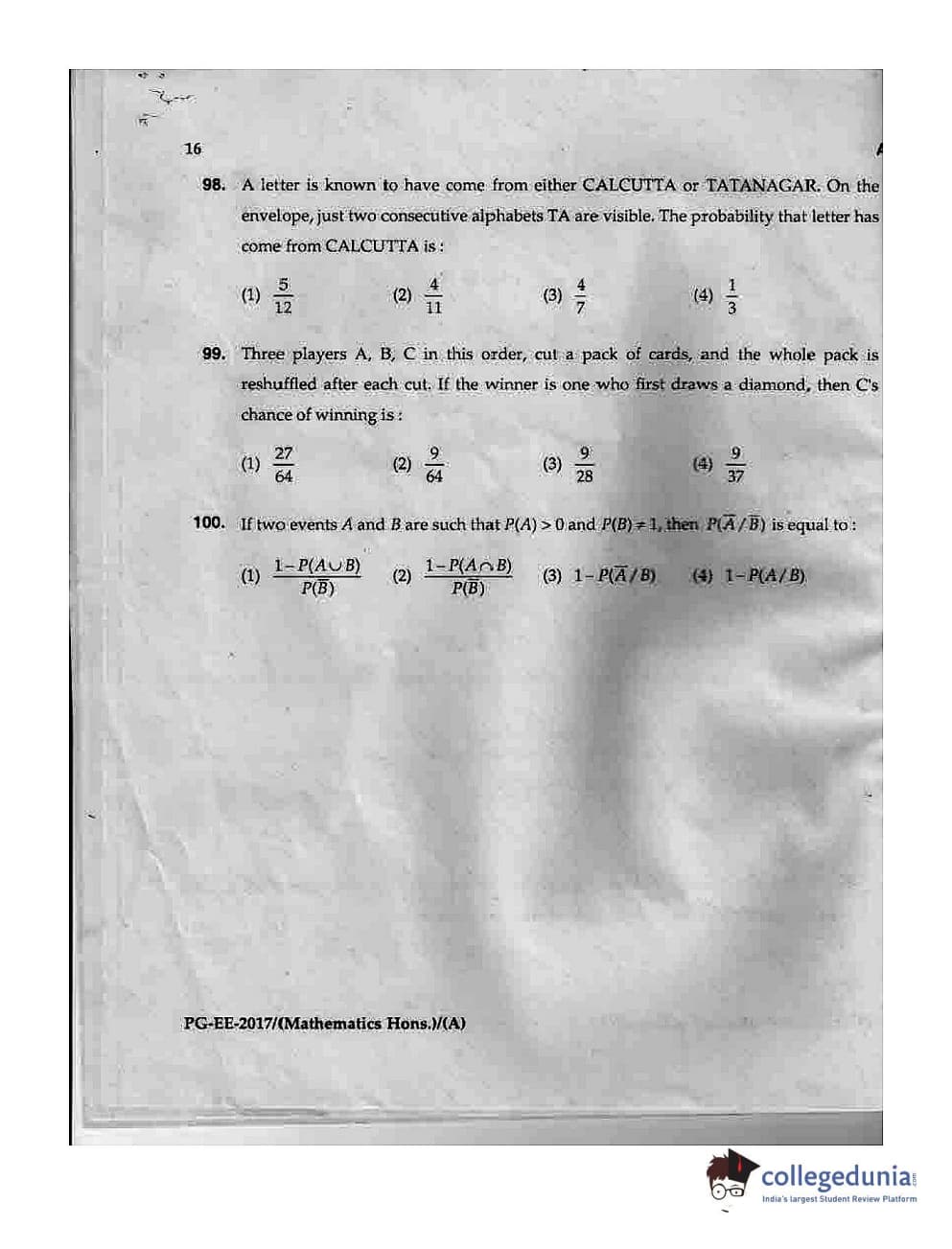 MDUCEE 2017 M.Sc. (Hons) Math 5 Year Integrated Set A Question Paper with Answer Key PDFs